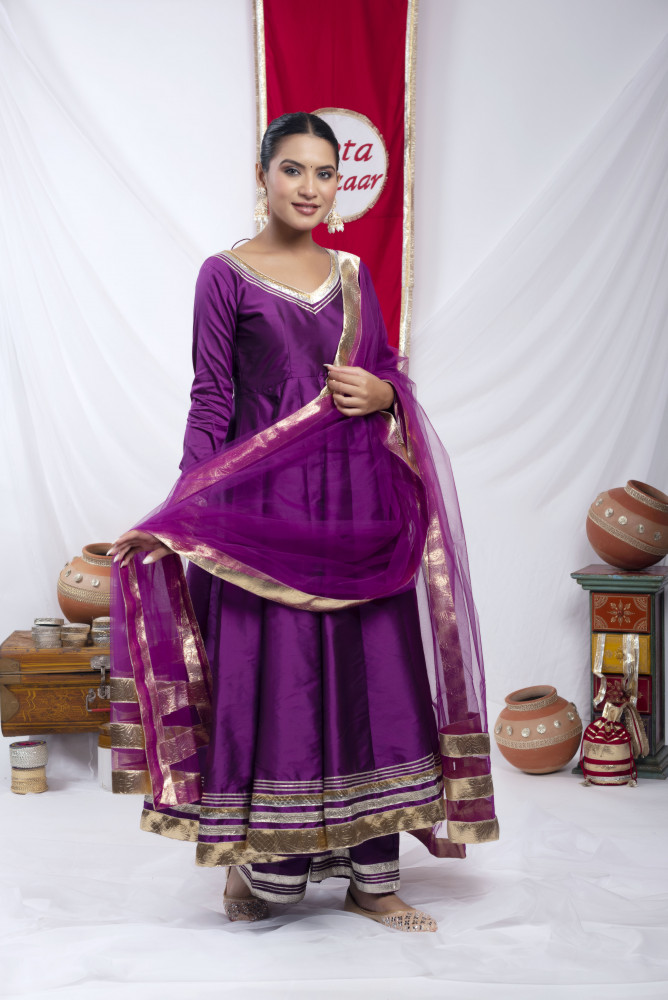 Image of Gota bazaar Purple Tafetta Silk Anarkali Set