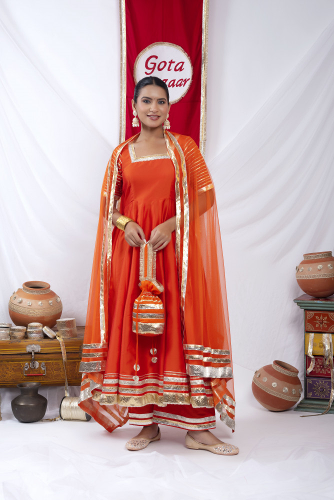 Image of Gota bazaar Orange Tafetta Silk Anarkali Set