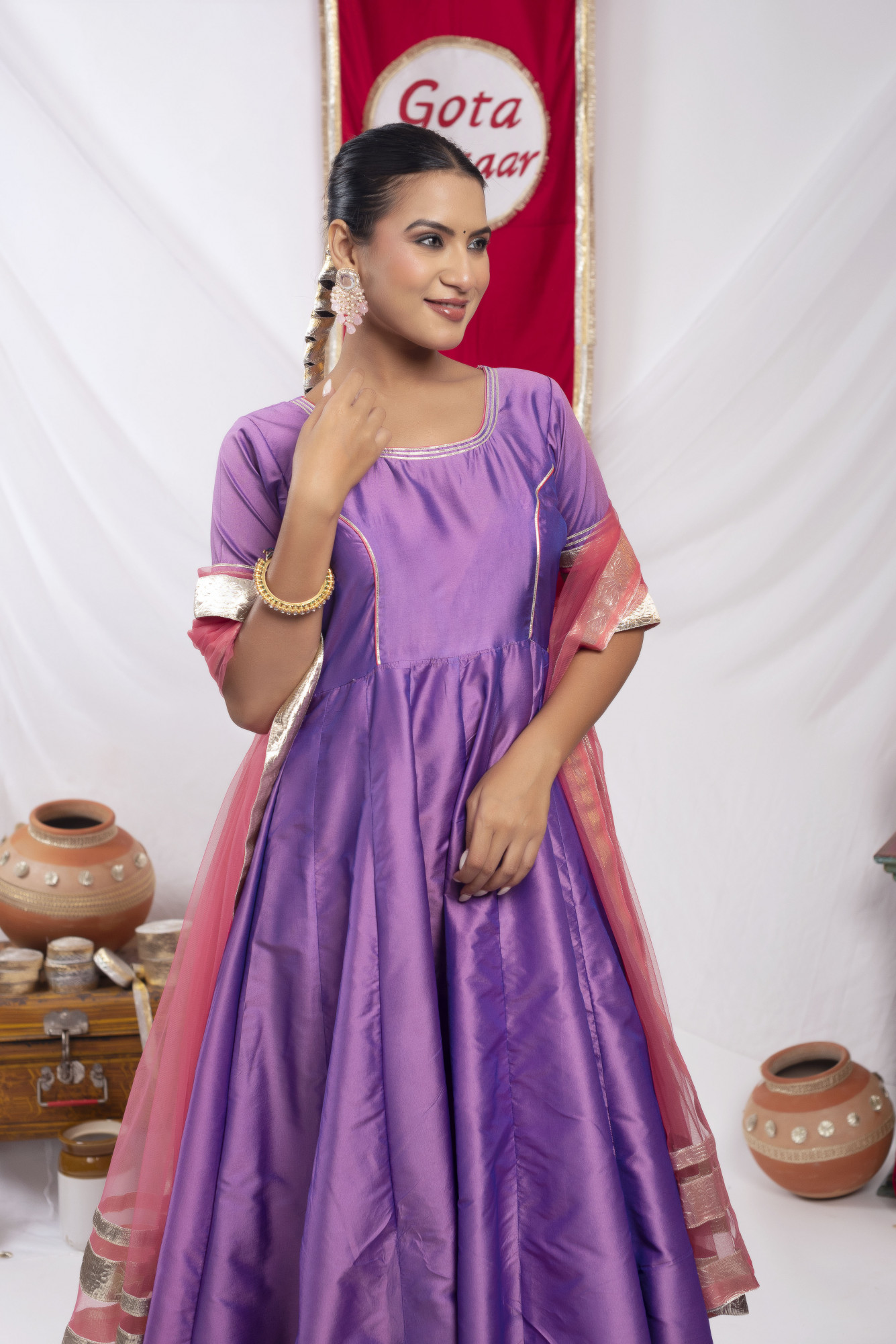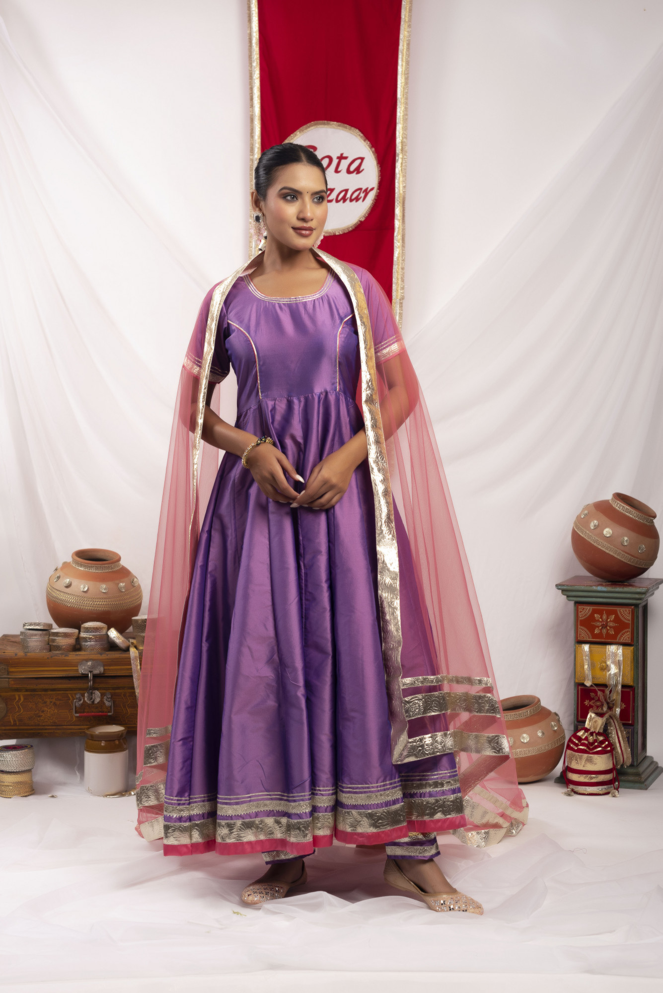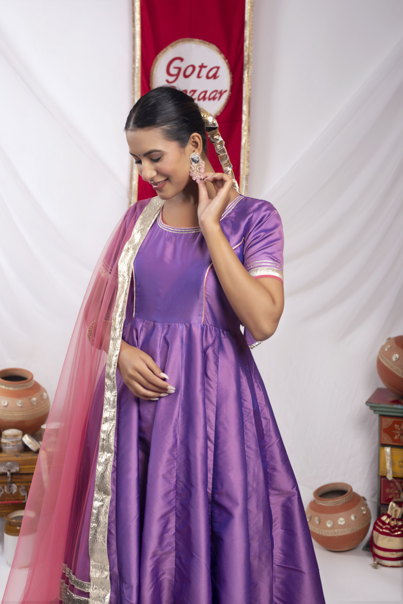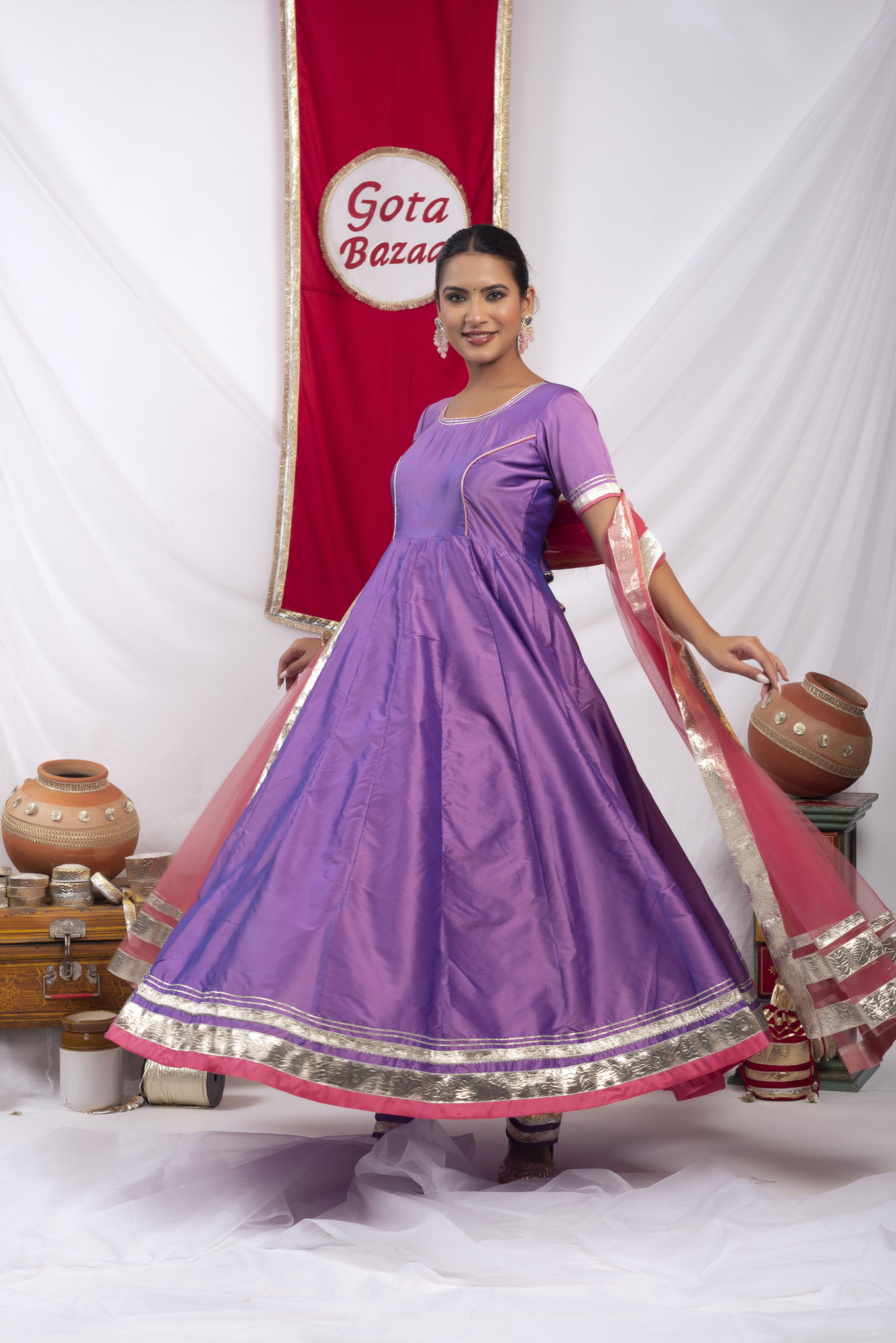 Gota bazaar Lavender Tafetta Silk Anarkali Set