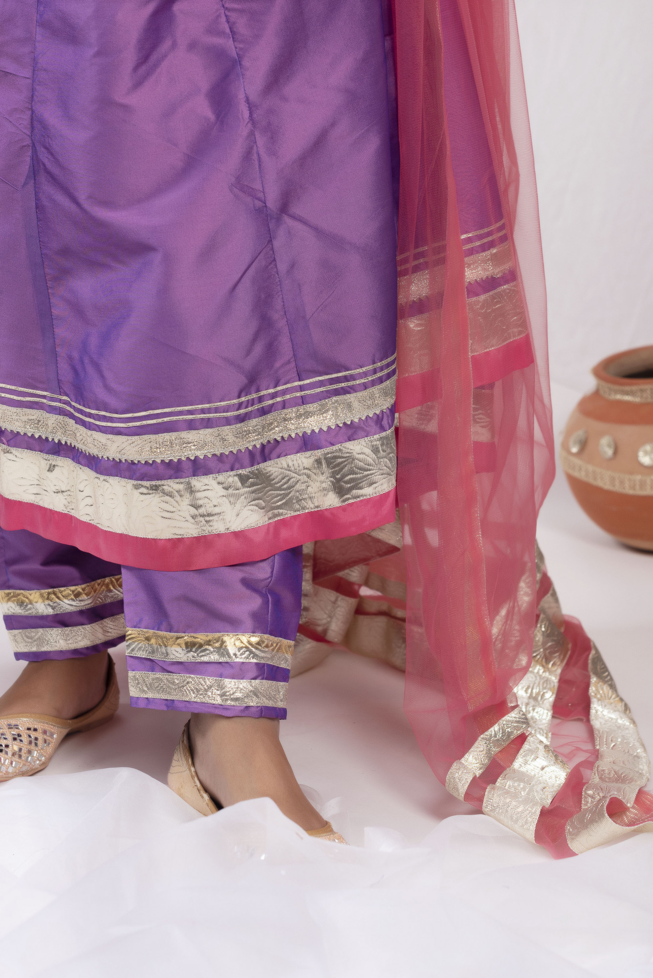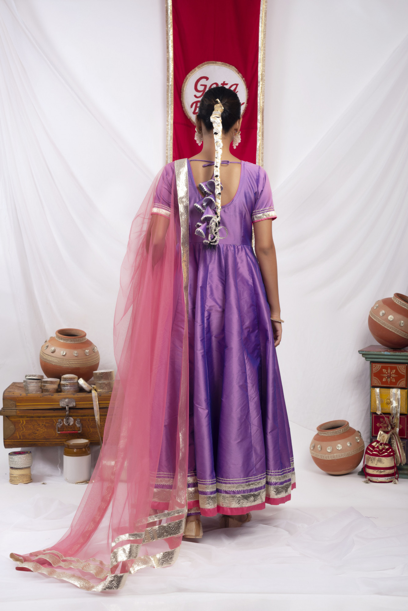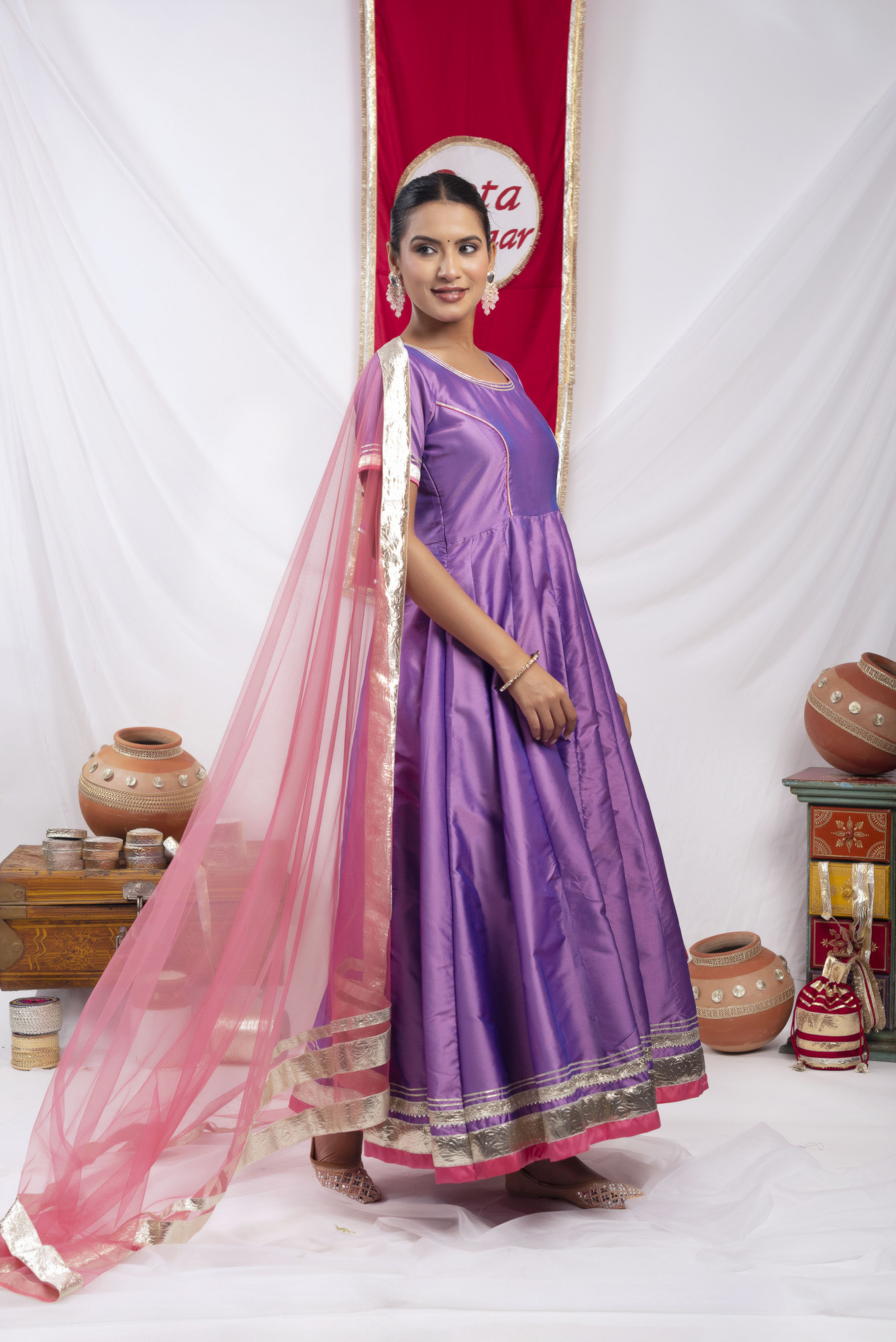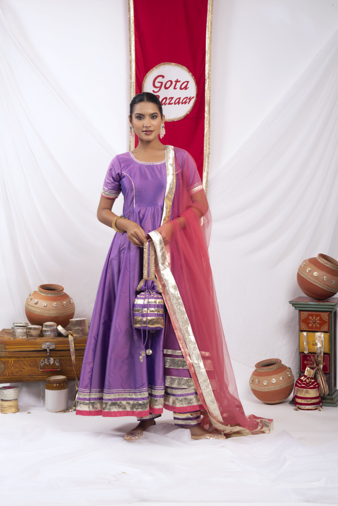 Gota bazaar Lavender Tafetta Silk Anarkali Set