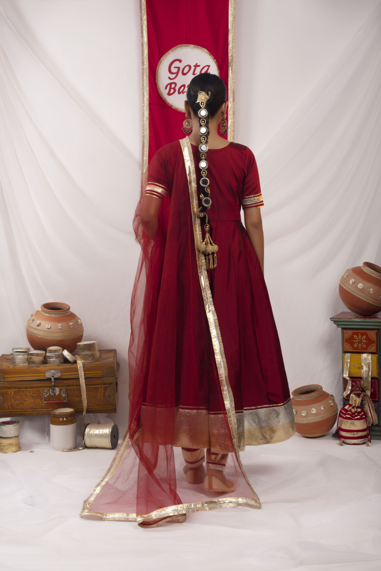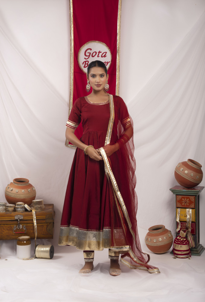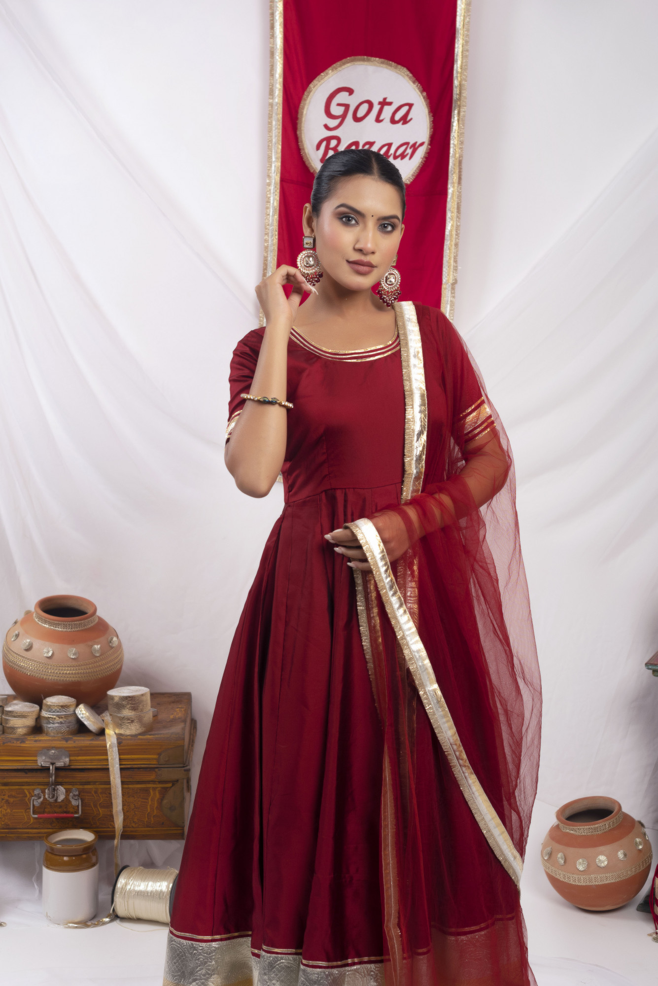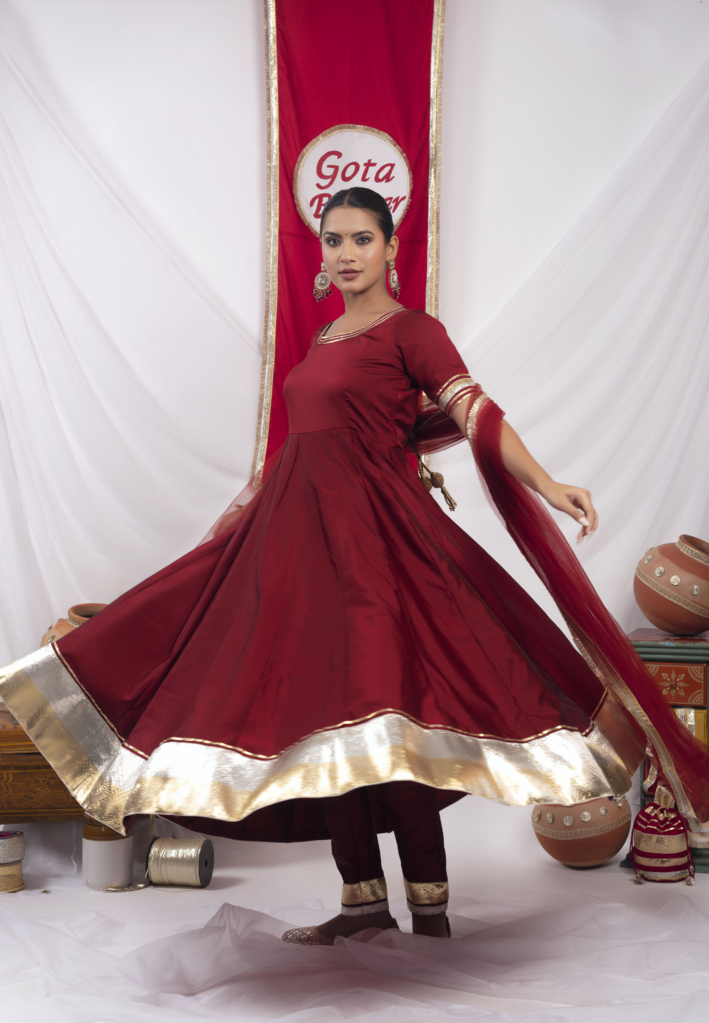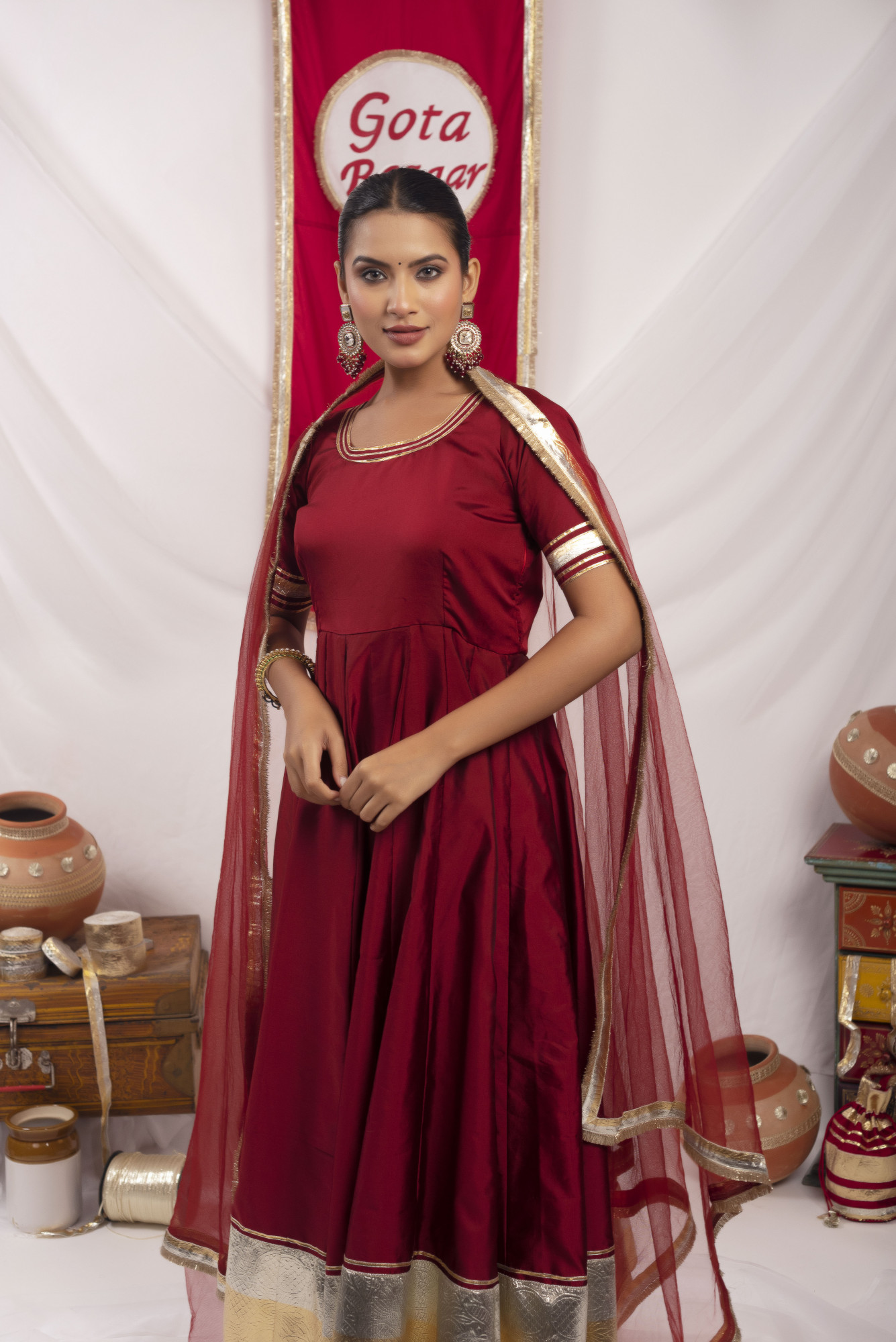 Gota bazaar Maroon Tafetta silk Anarkali Set