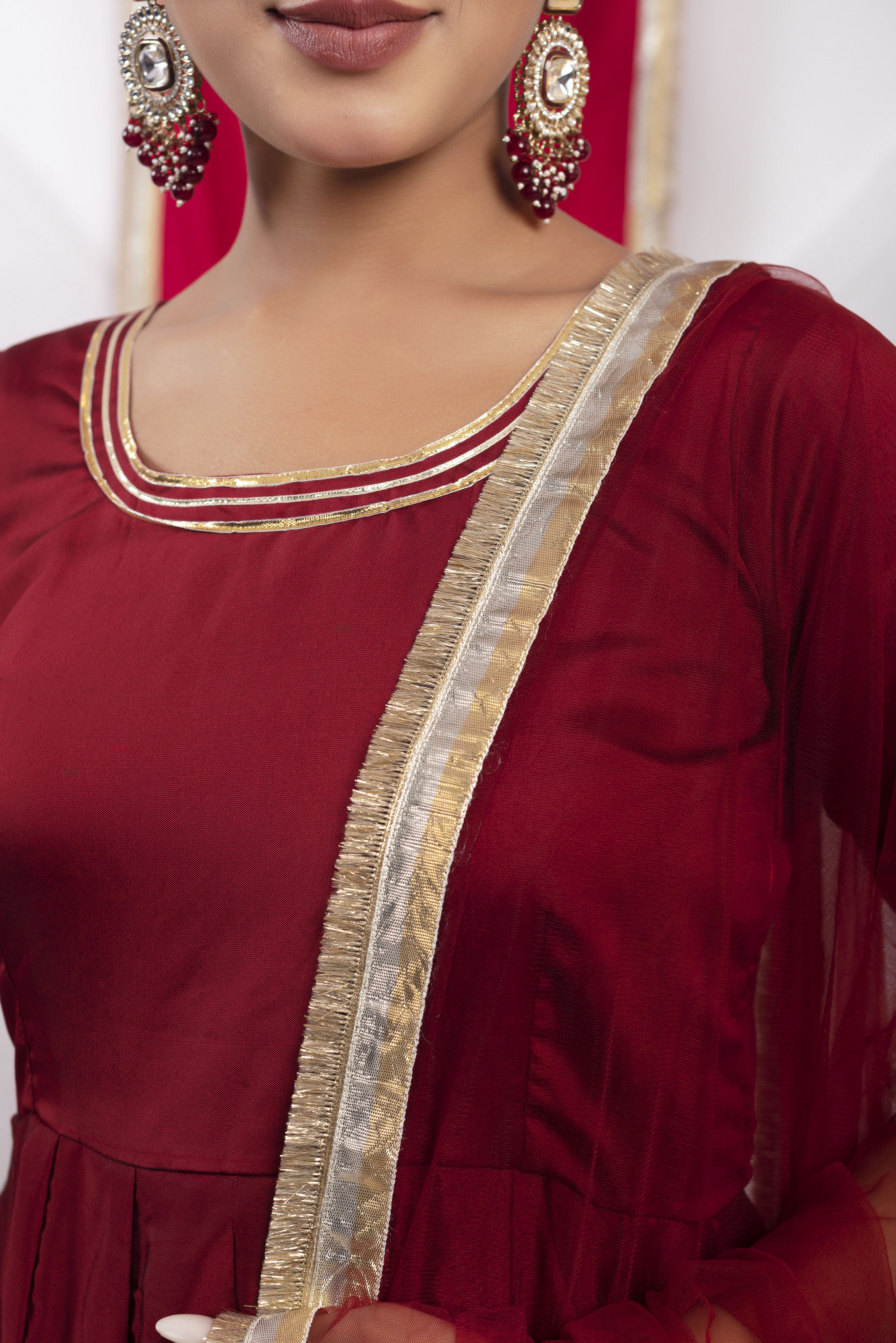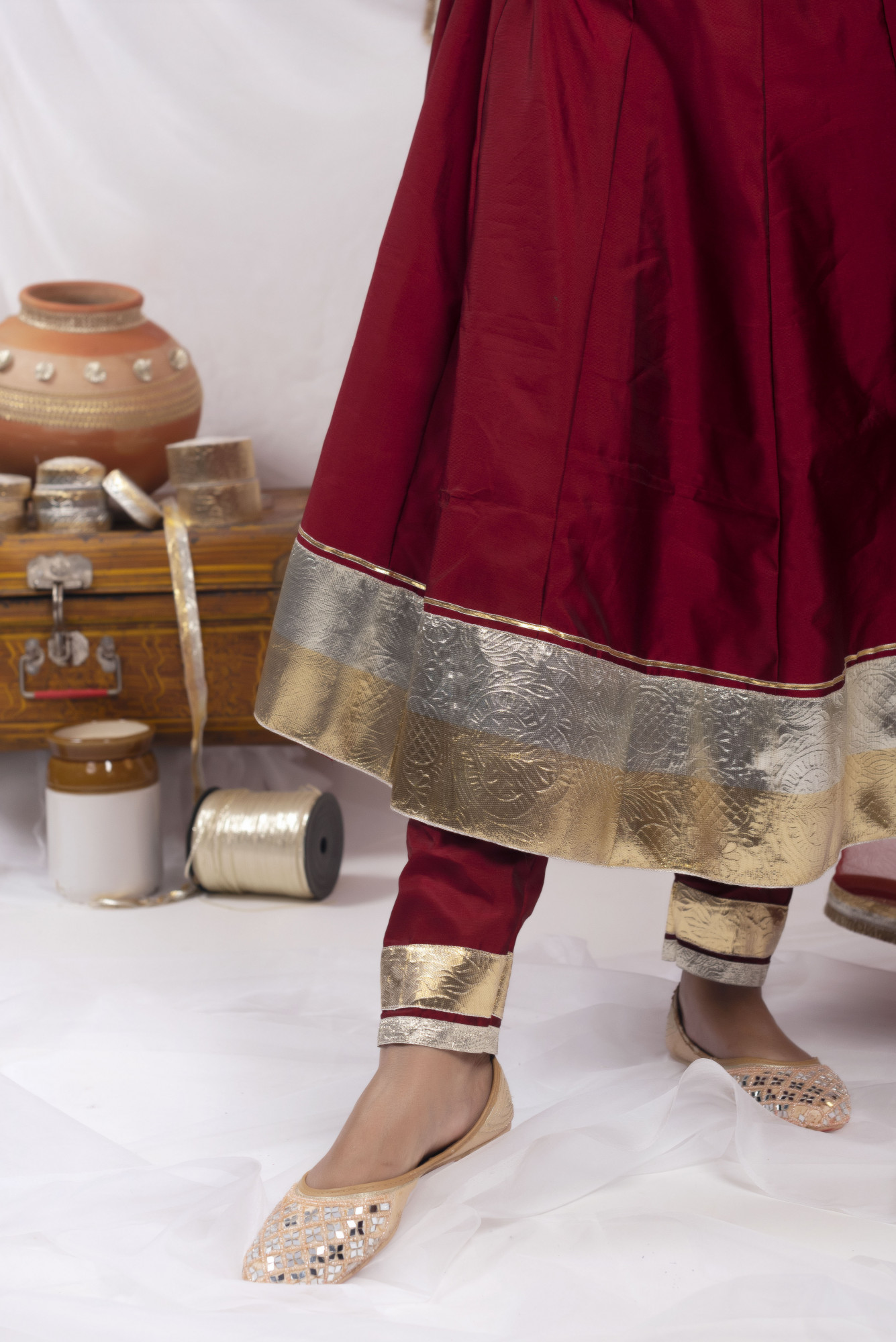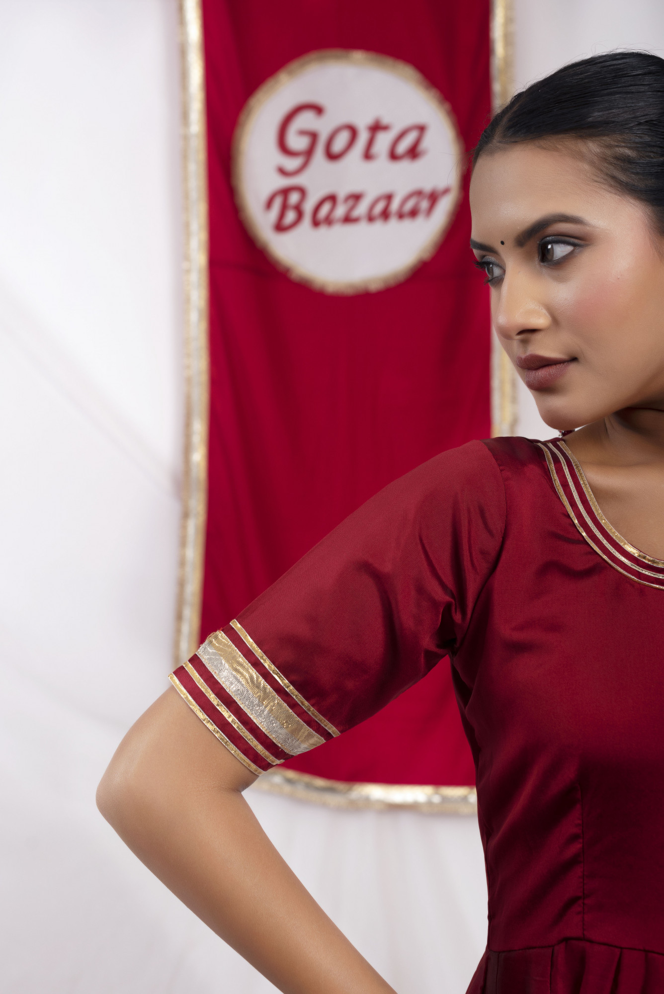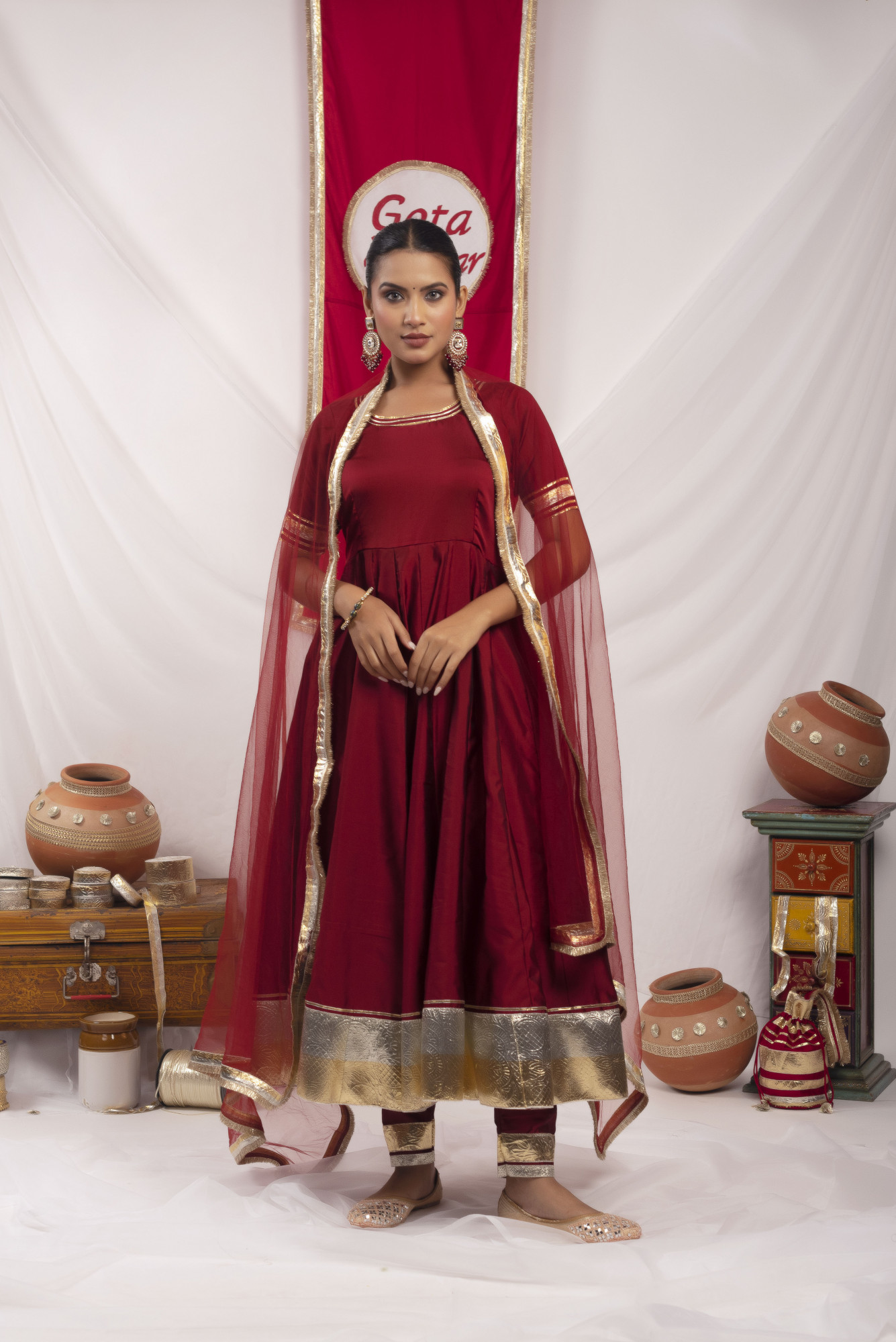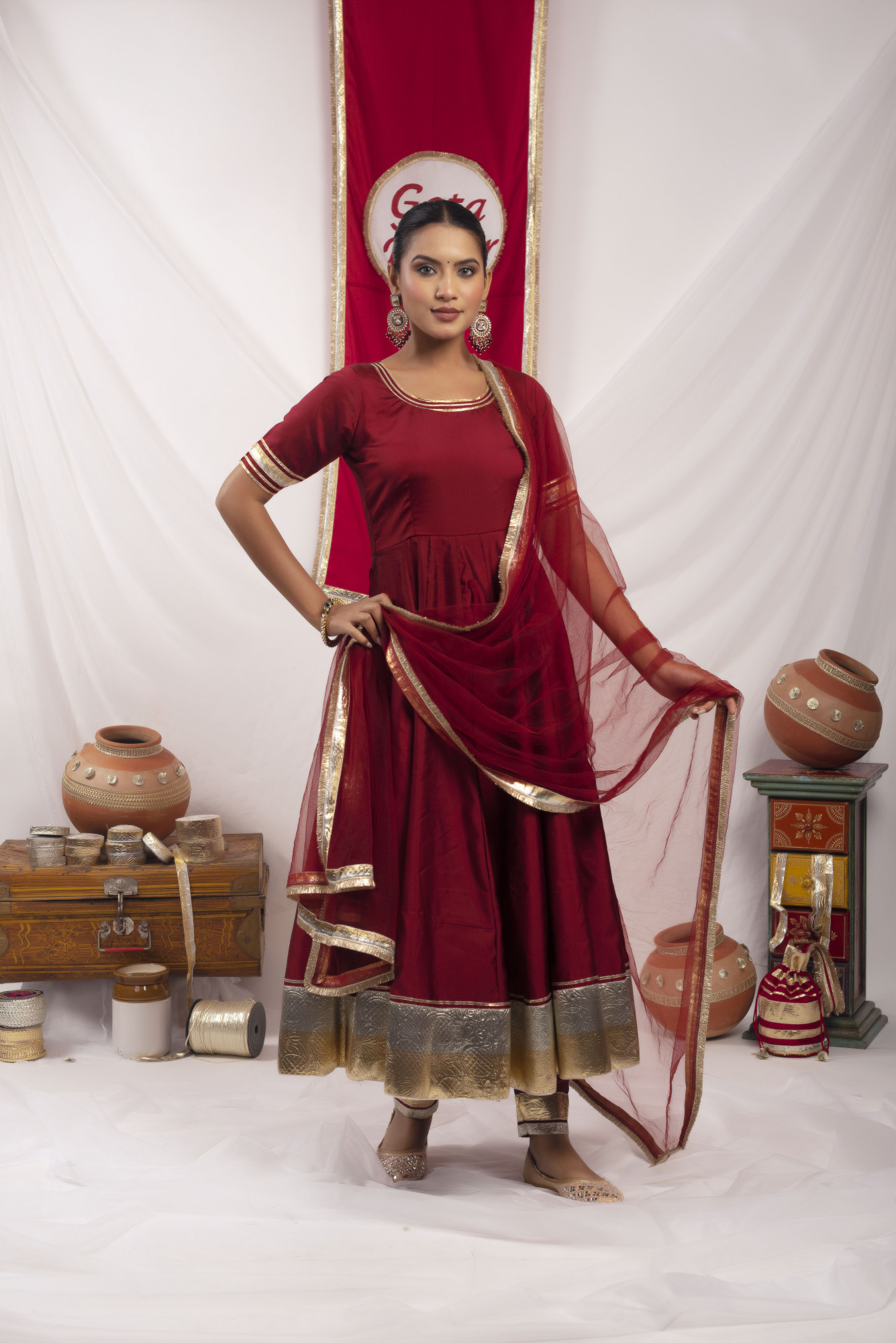 Gota bazaar Maroon Tafetta silk Anarkali Set