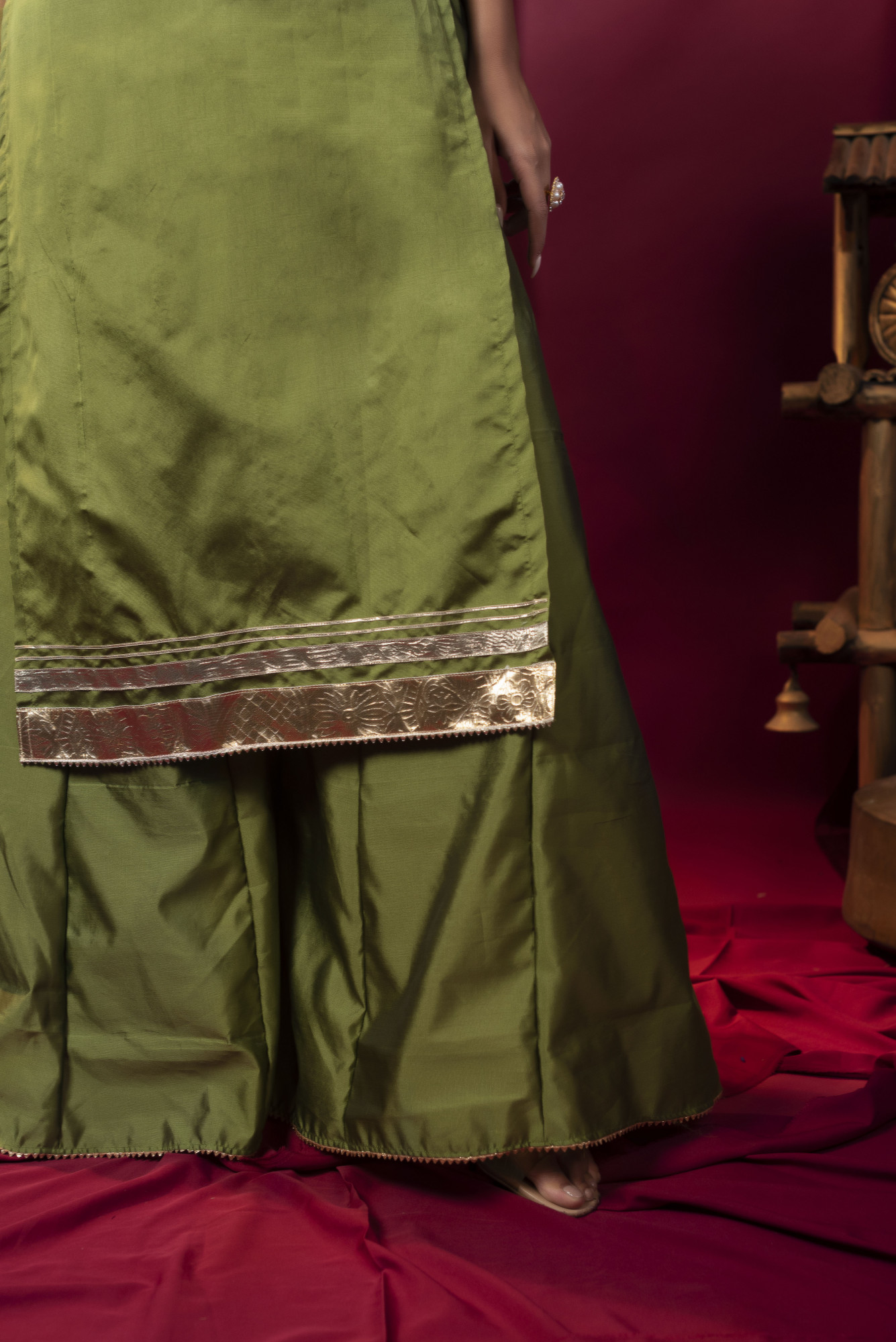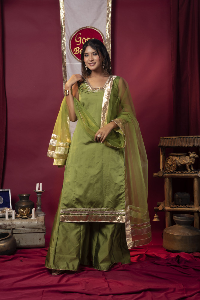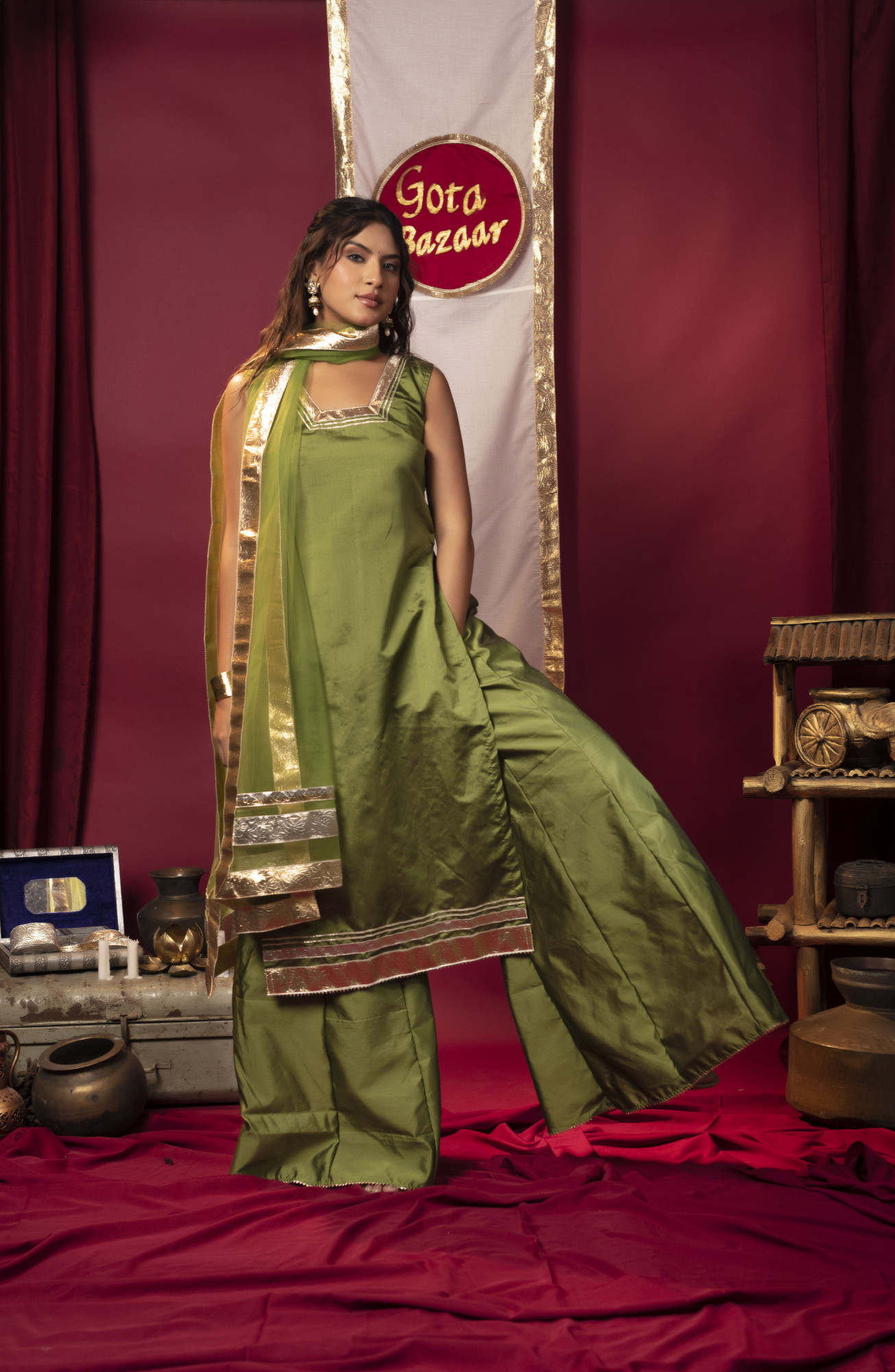 Gota bazaar Mehendi Green Tafetta Silk Kurta Set
