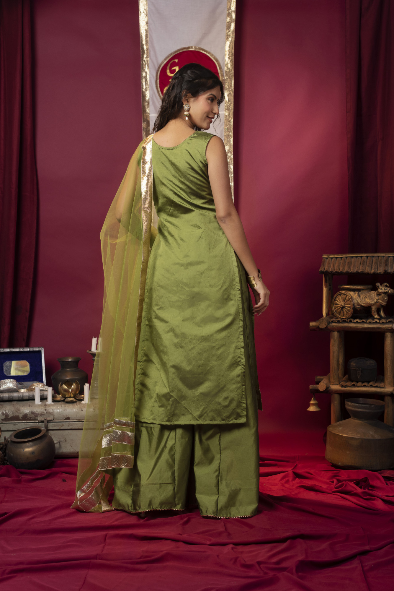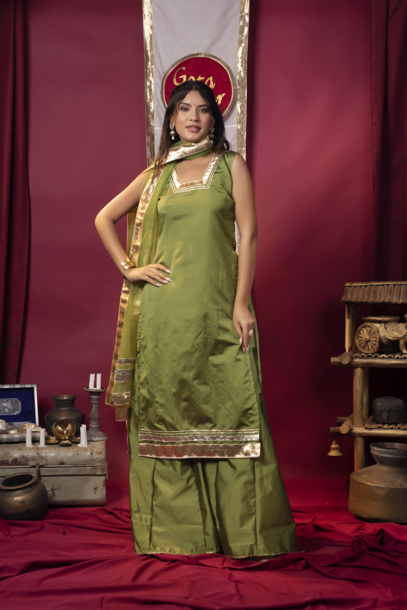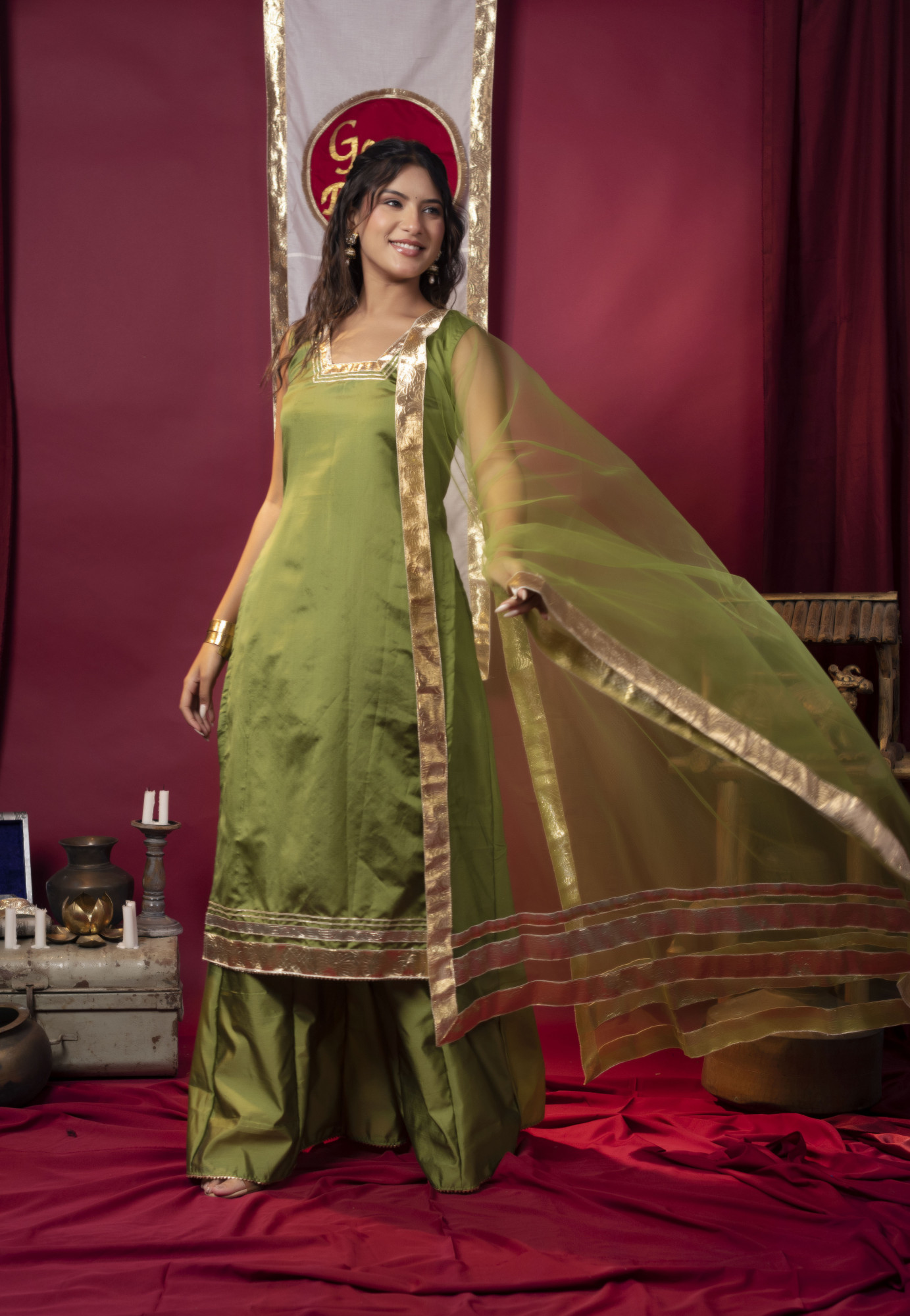 Gota bazaar Mehendi Green Tafetta Silk Kurta Set
