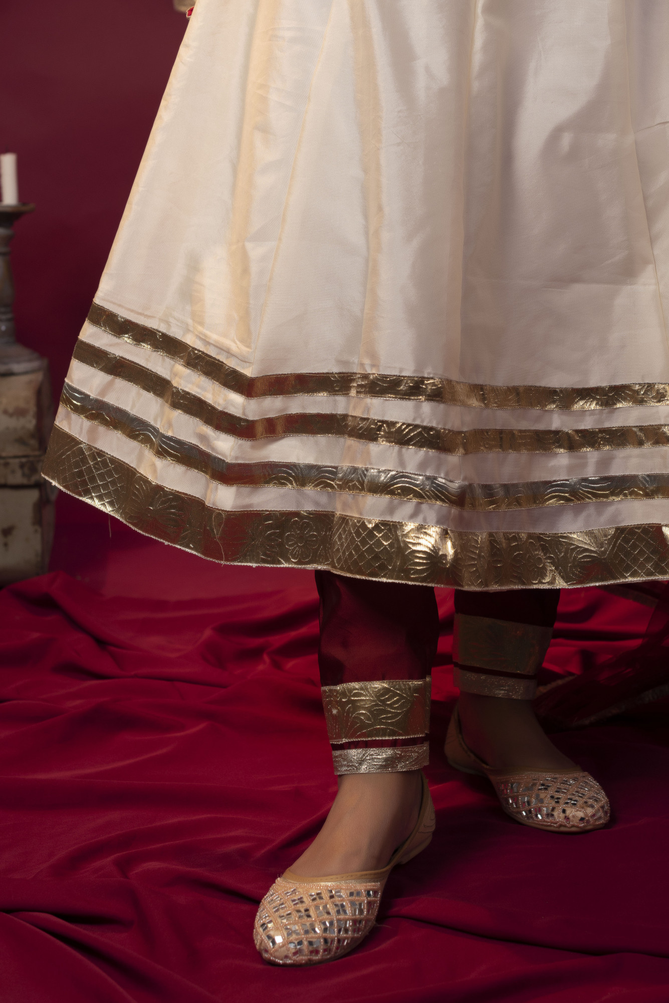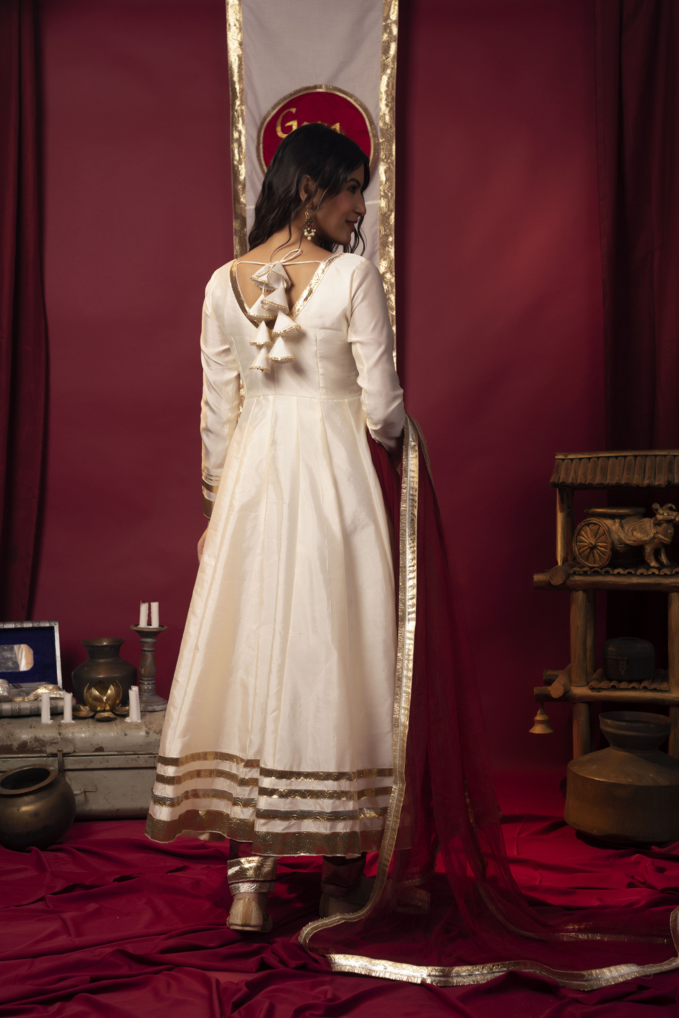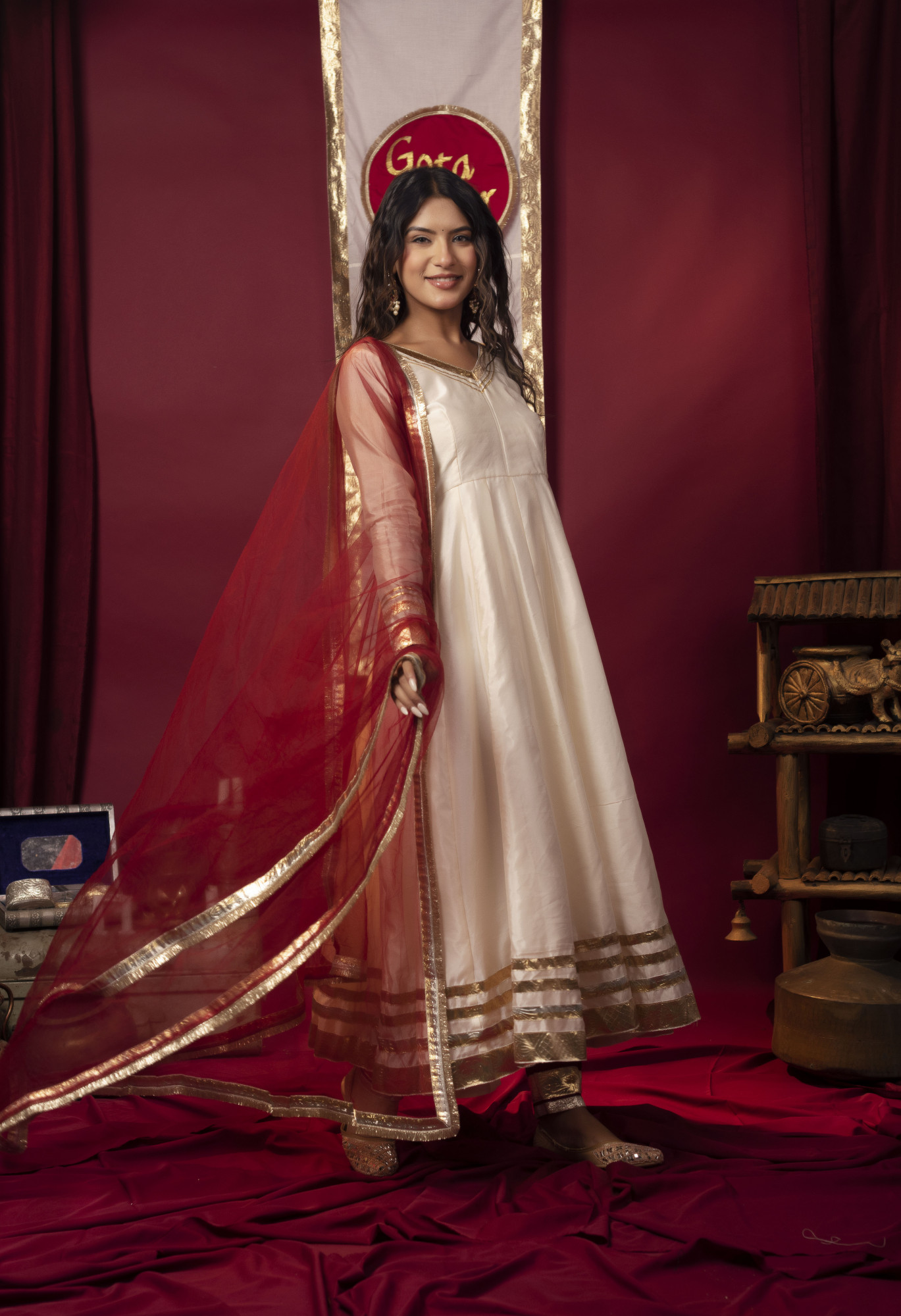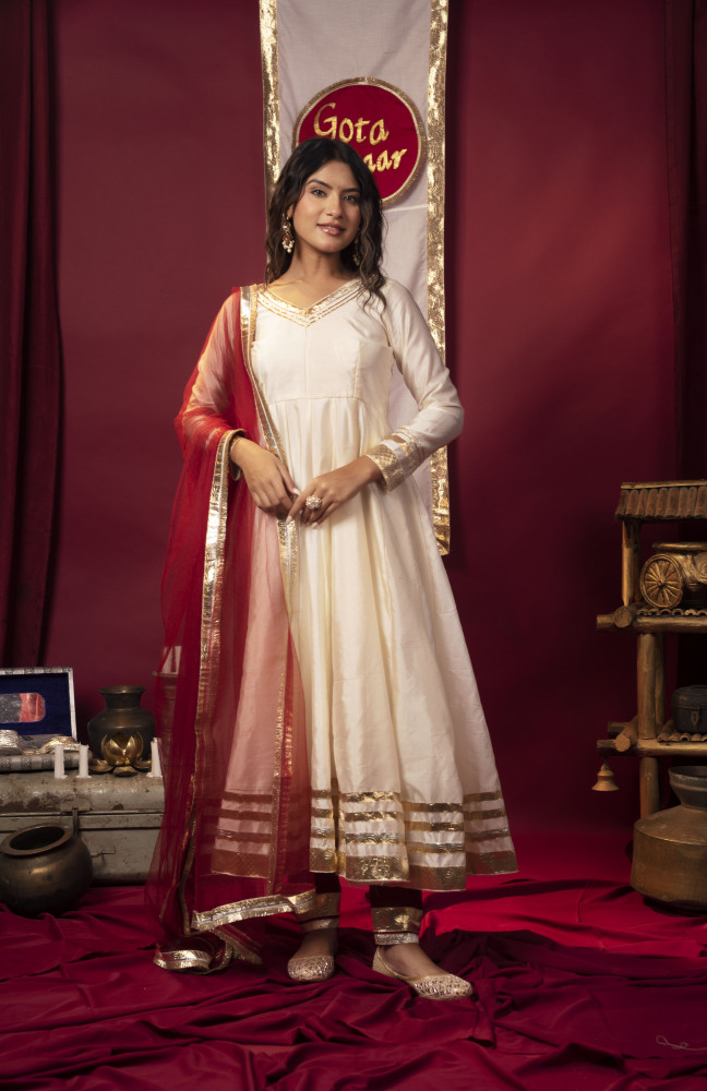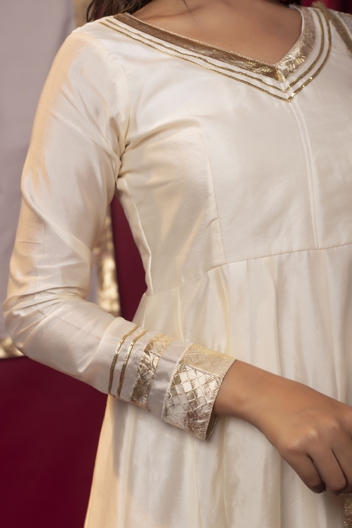 Gota bazaar Off white Tafetta Silk Anarkali Set