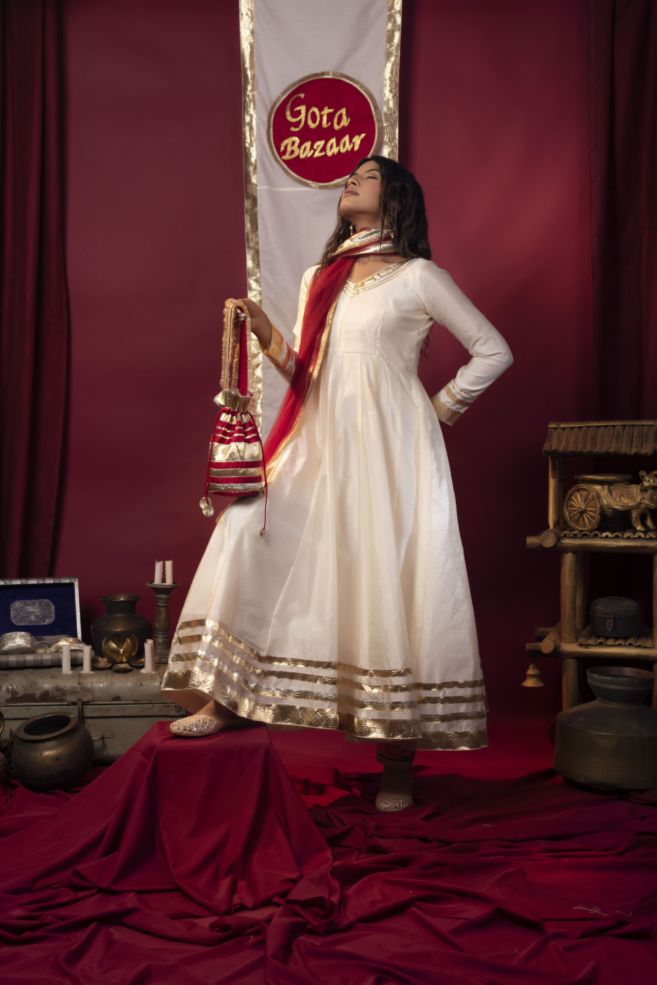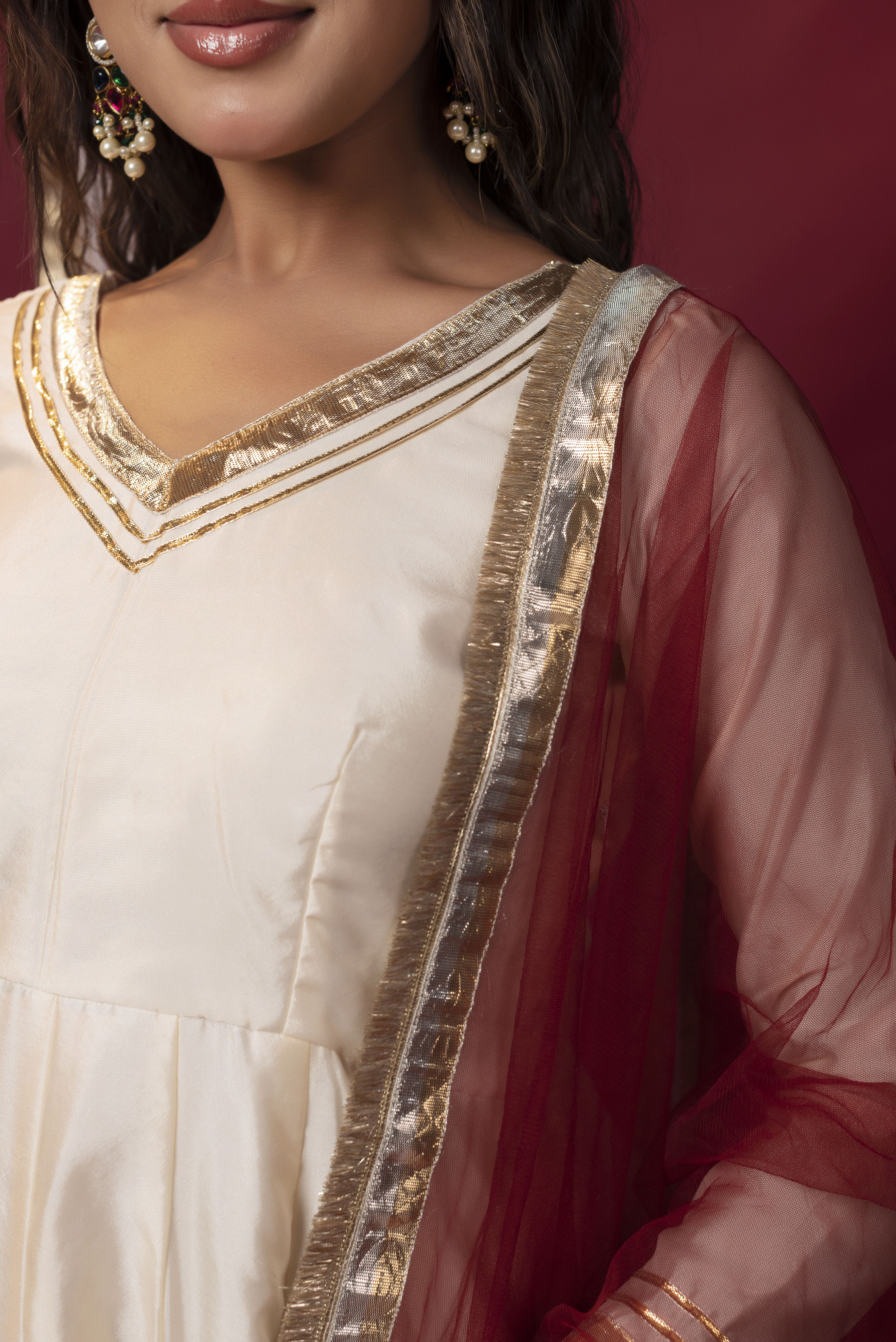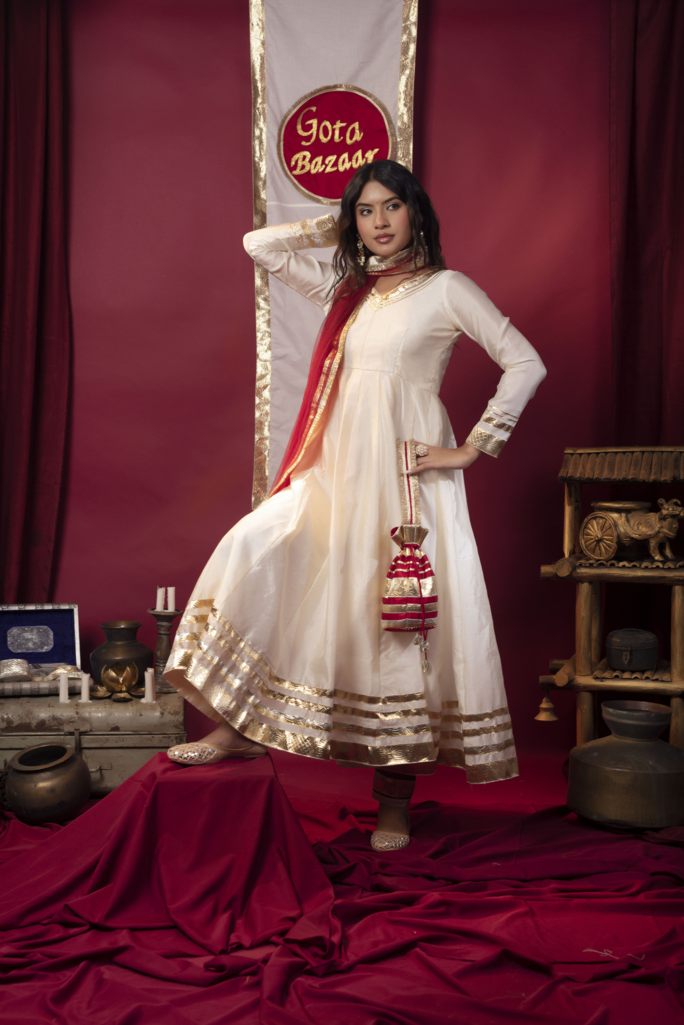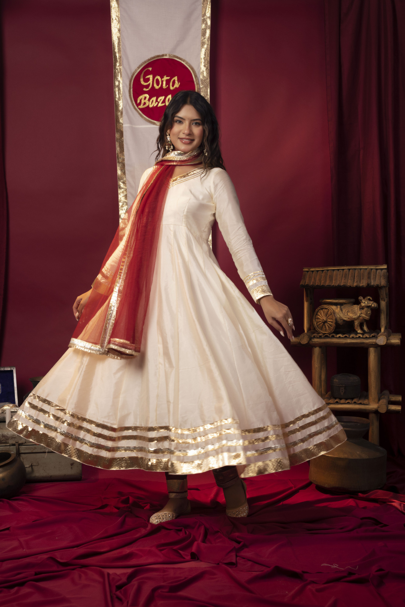 Gota bazaar Off white Tafetta Silk Anarkali Set