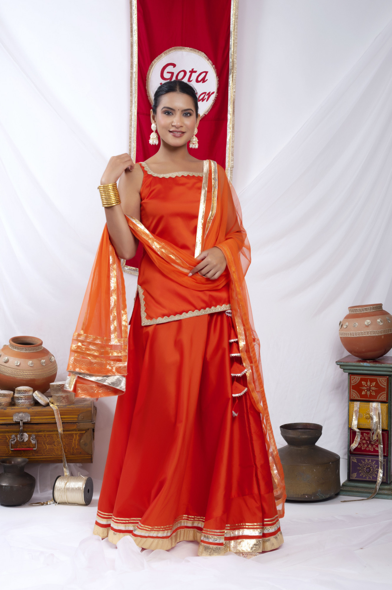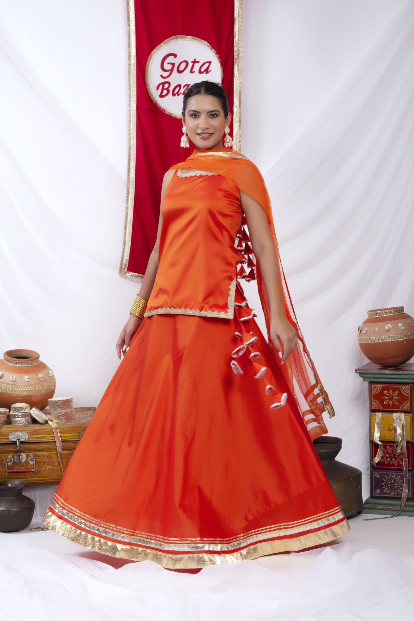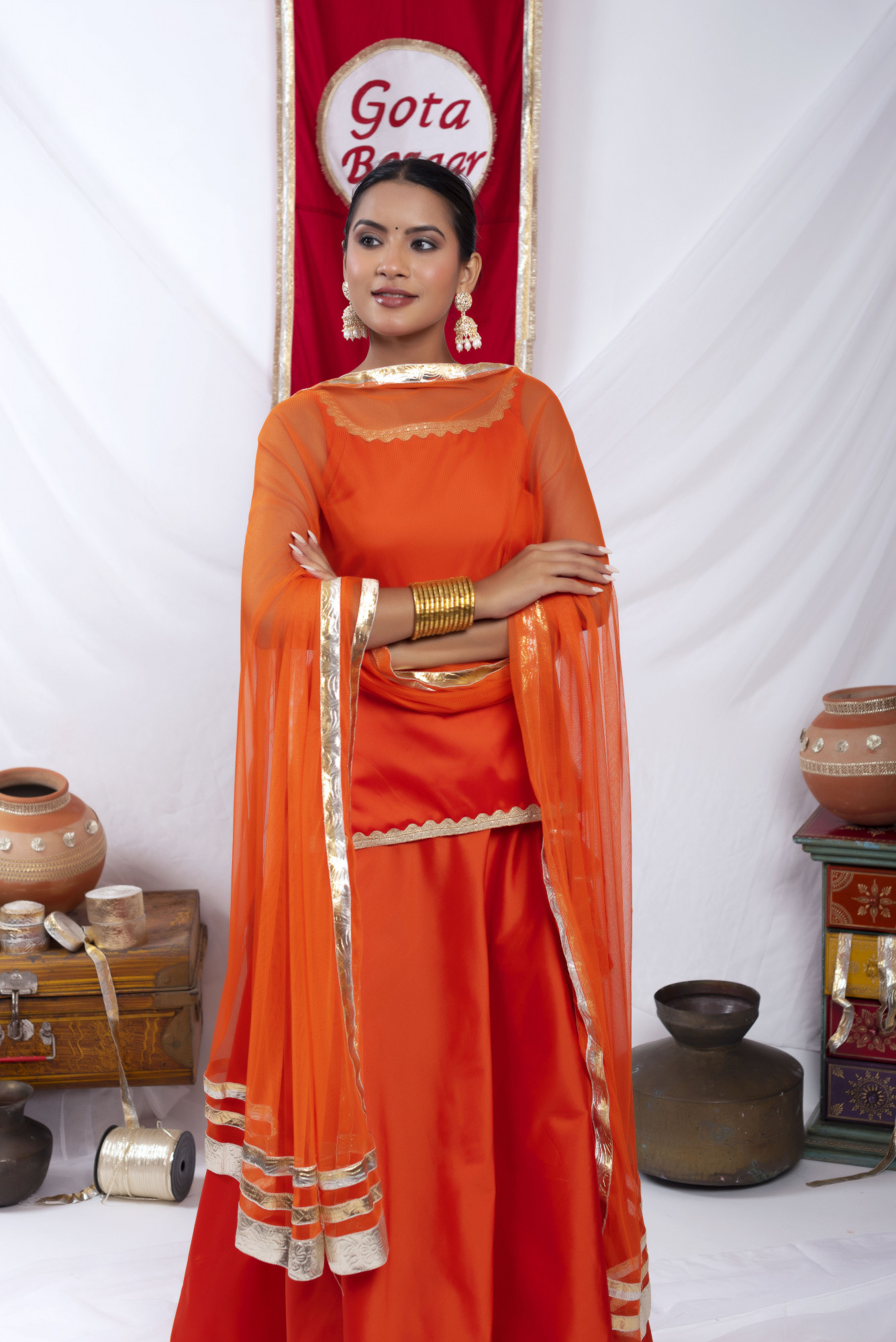 Gota bazaar Orange Tafetta Silk Short kurta & Skirt Set
