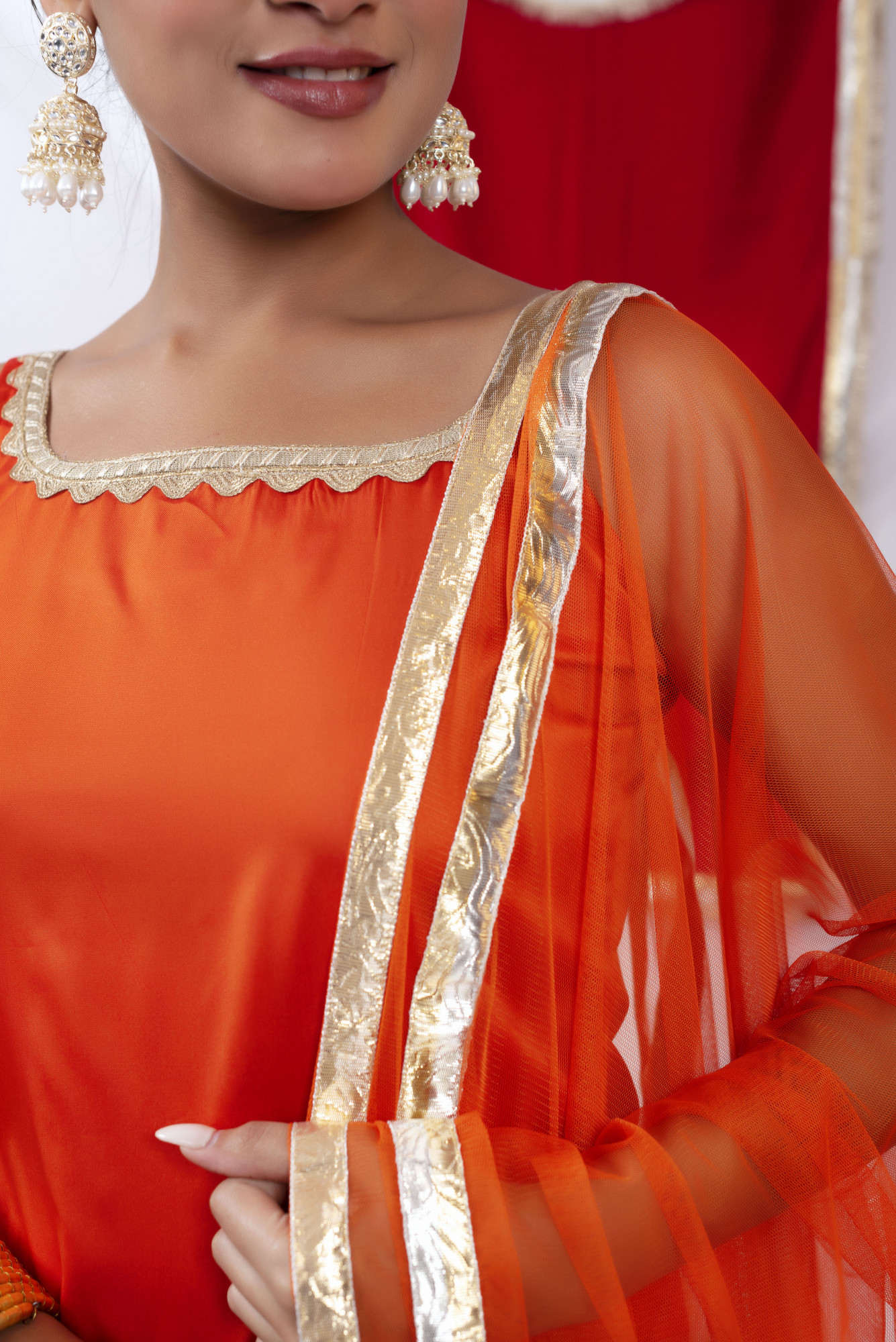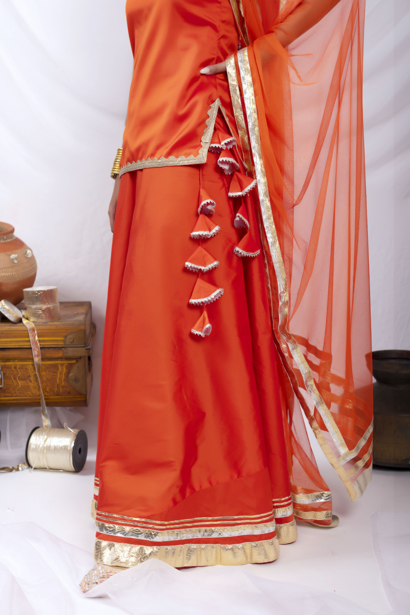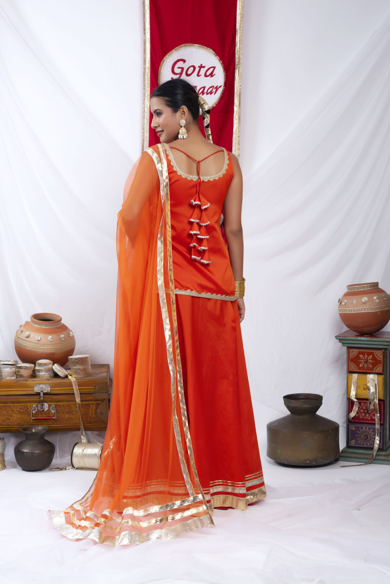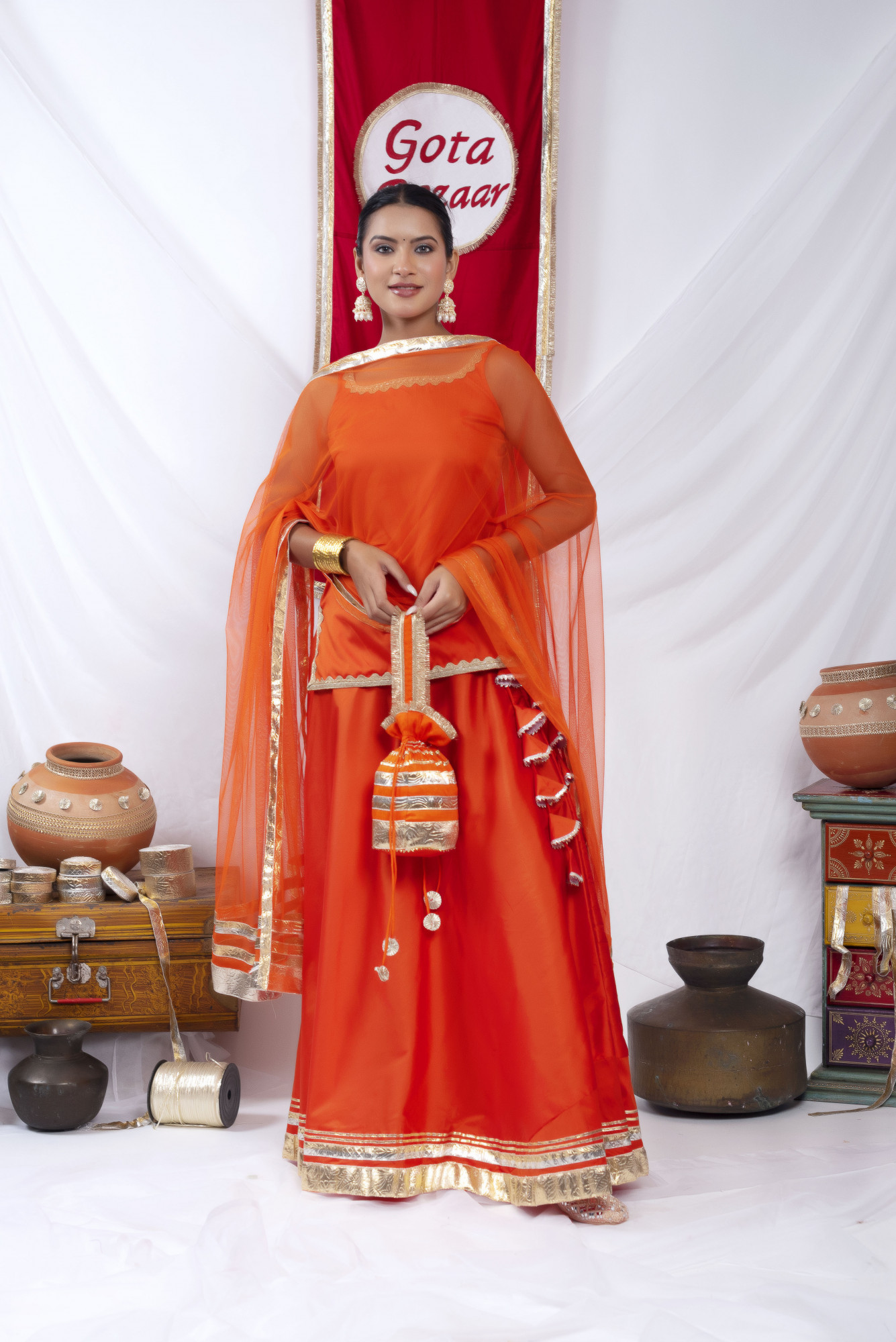 Gota bazaar Orange Tafetta Silk Short kurta & Skirt Set