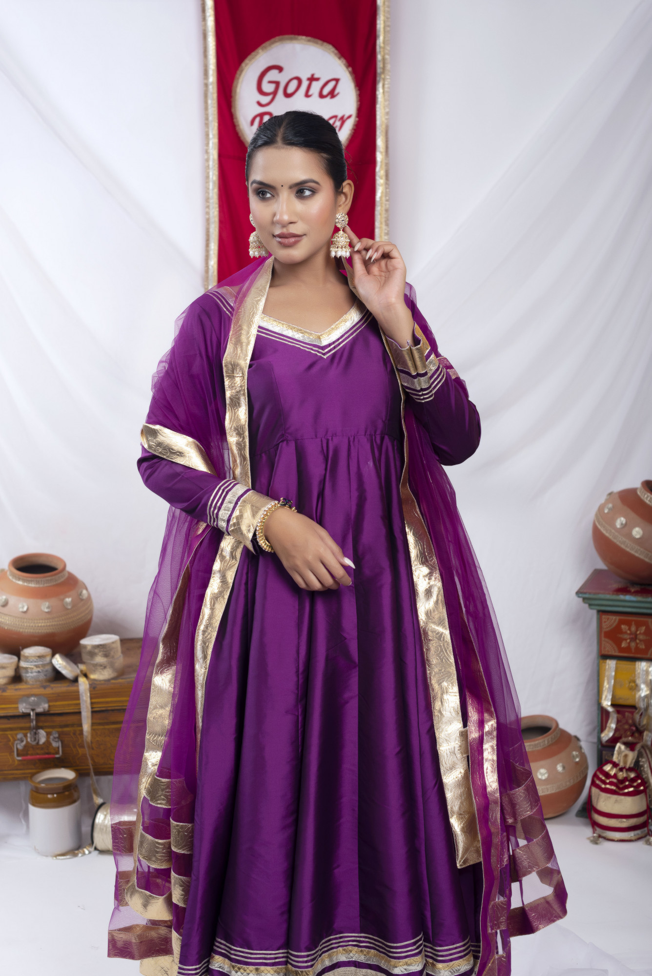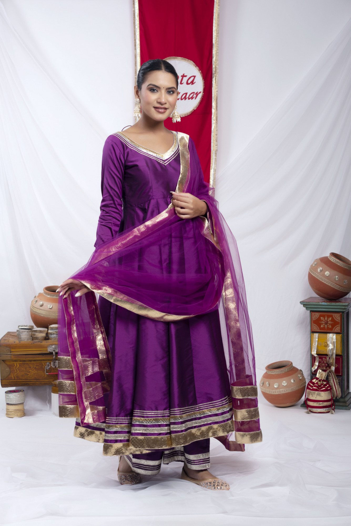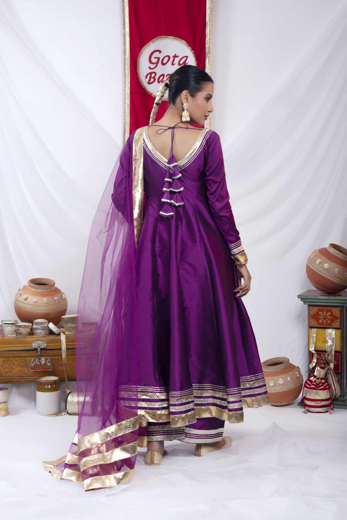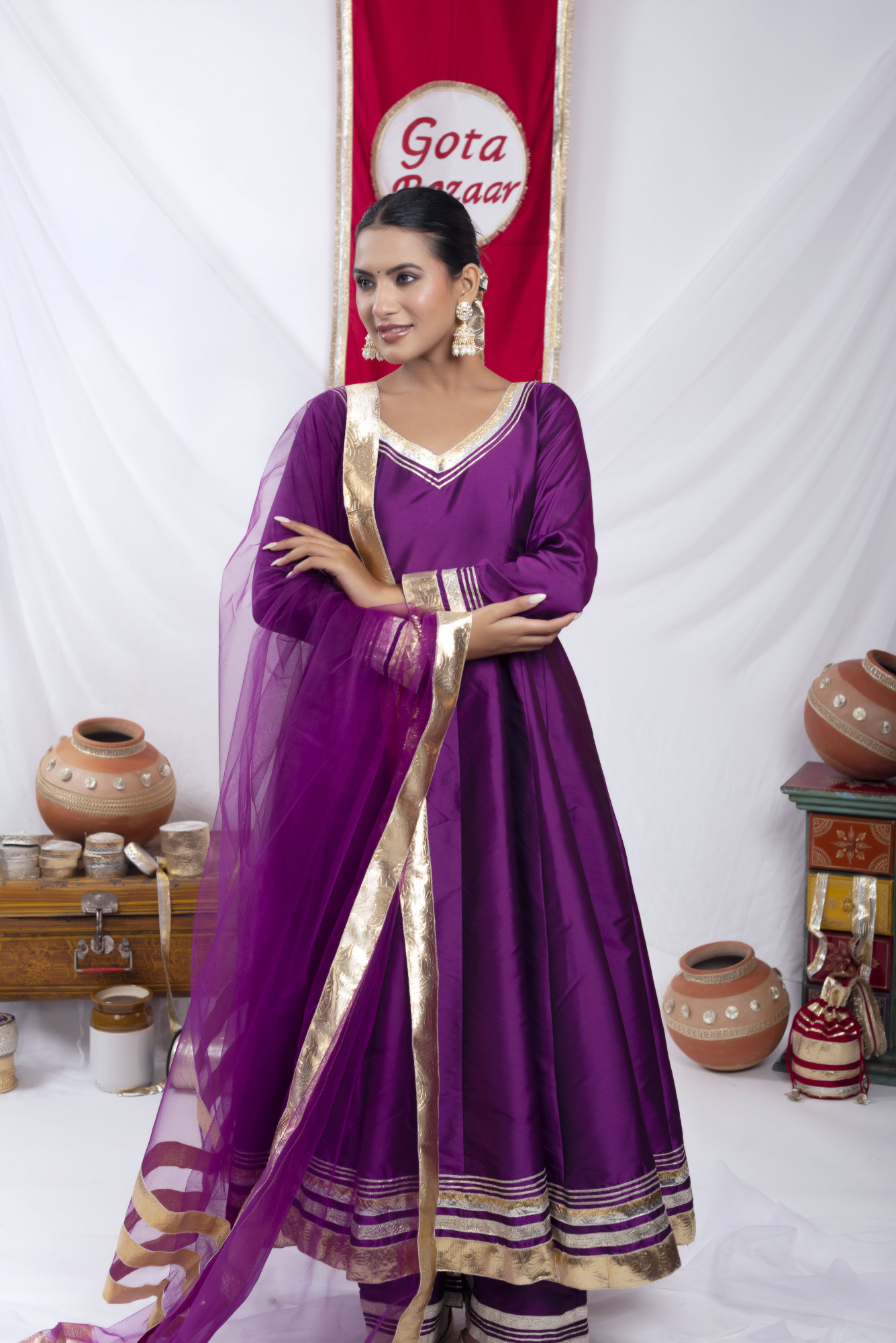 Gota bazaar Purple Tafetta Silk Anarkali Set