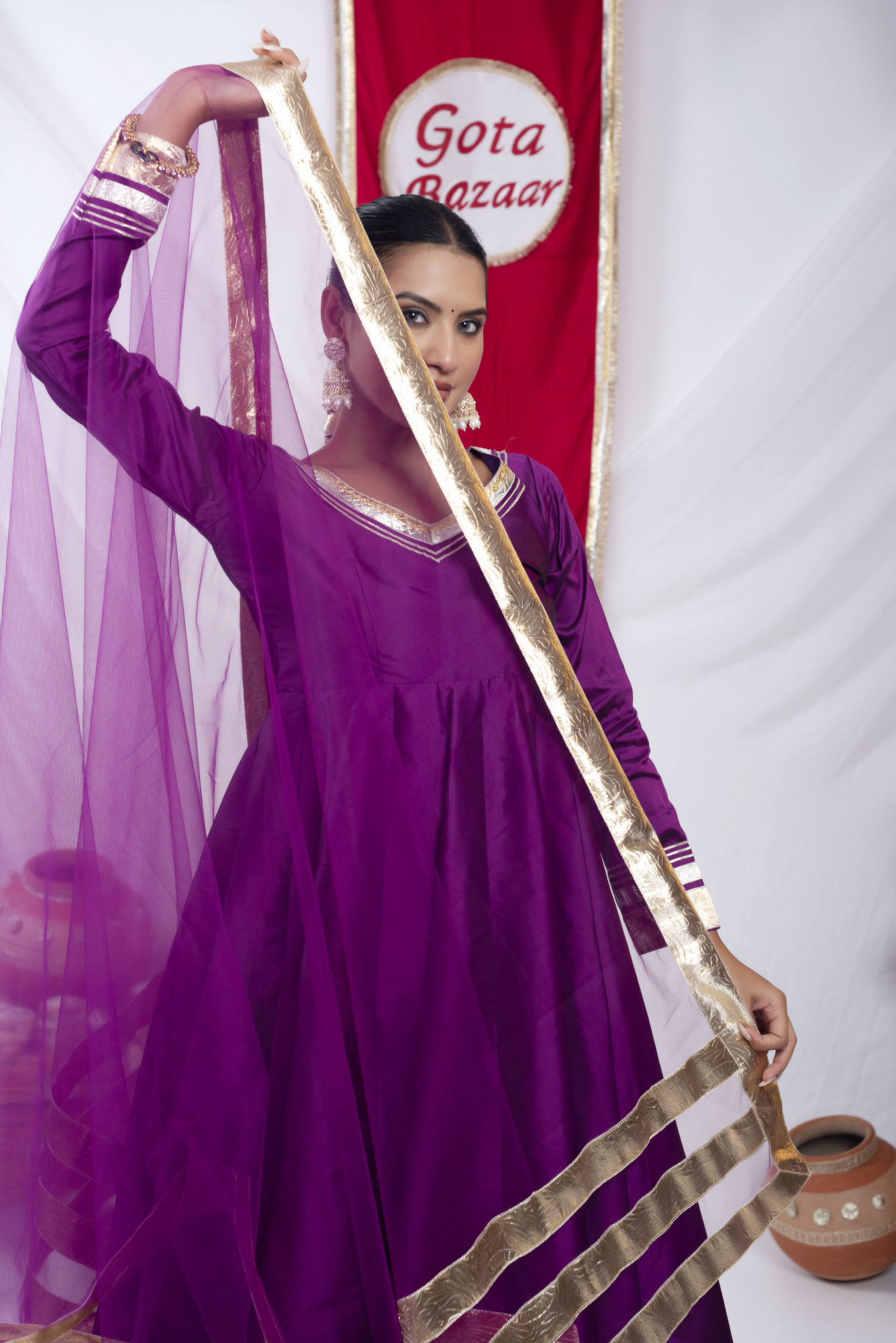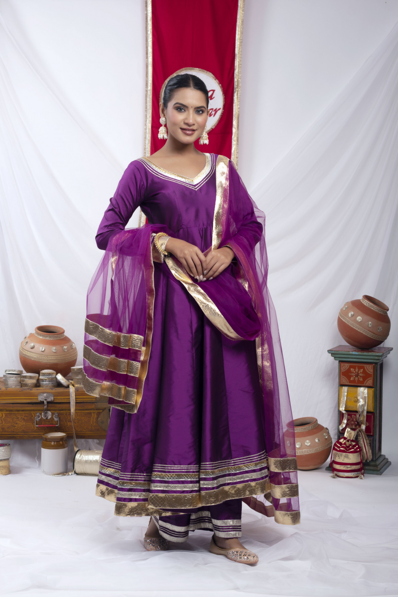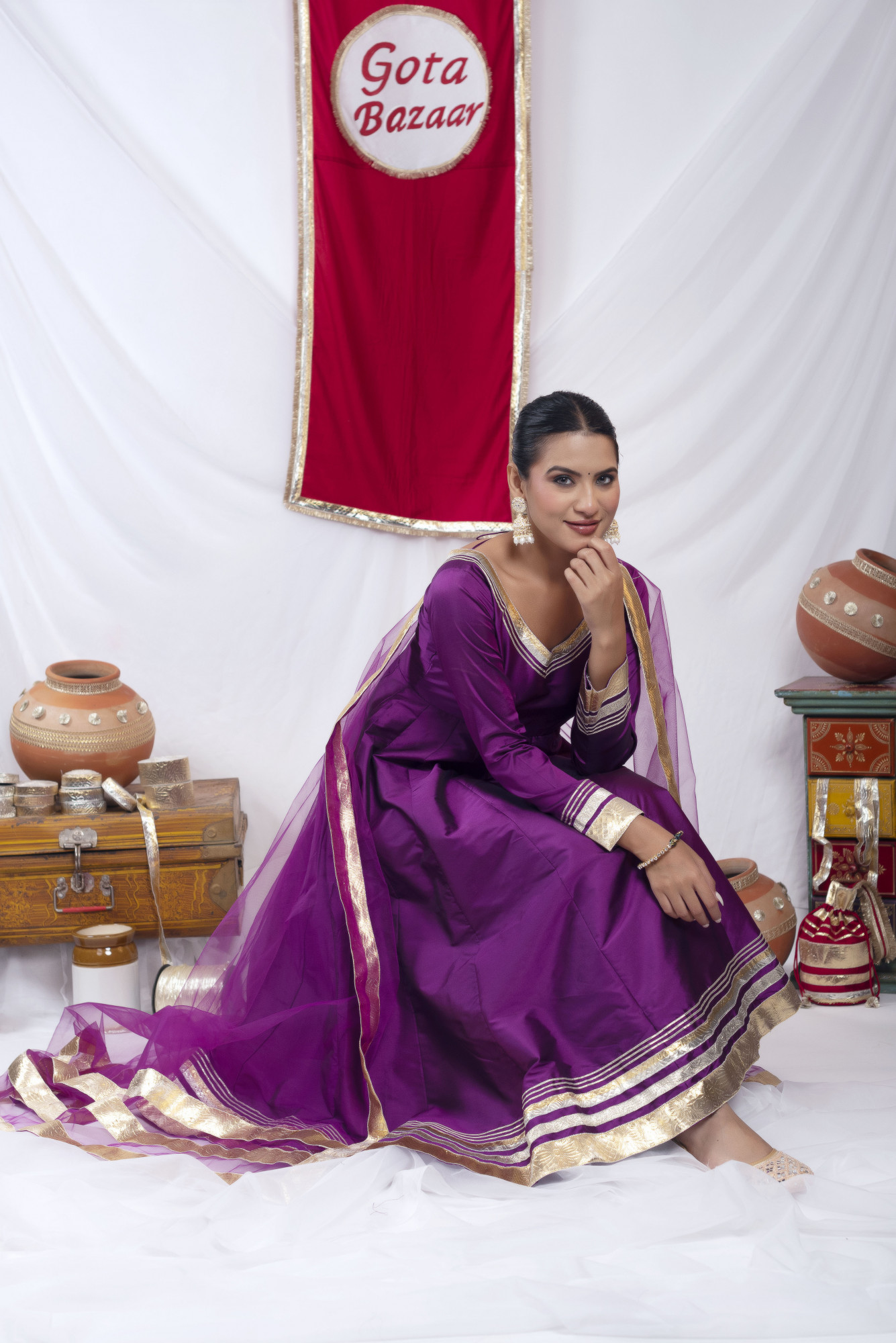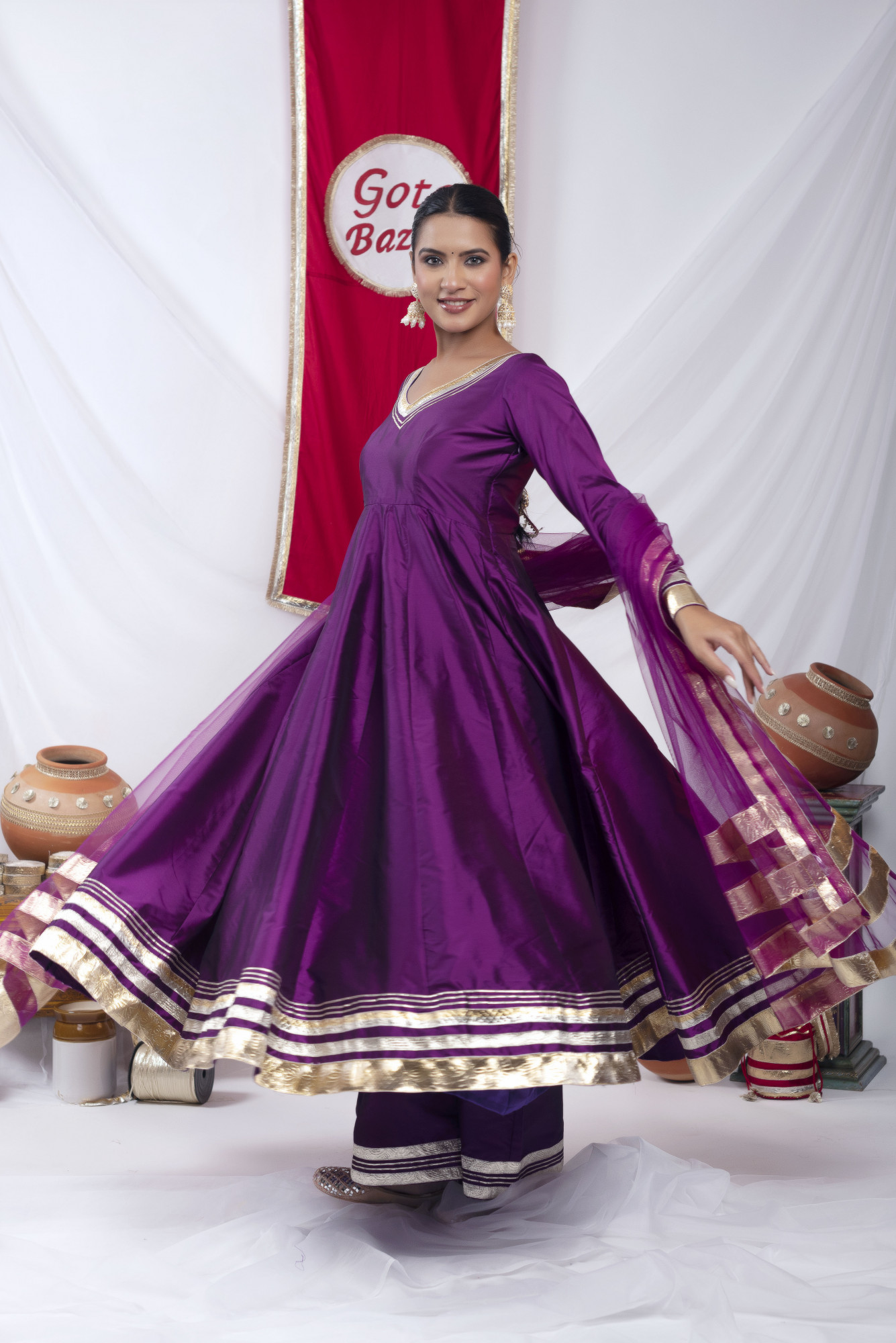 Gota bazaar Purple Tafetta Silk Anarkali Set