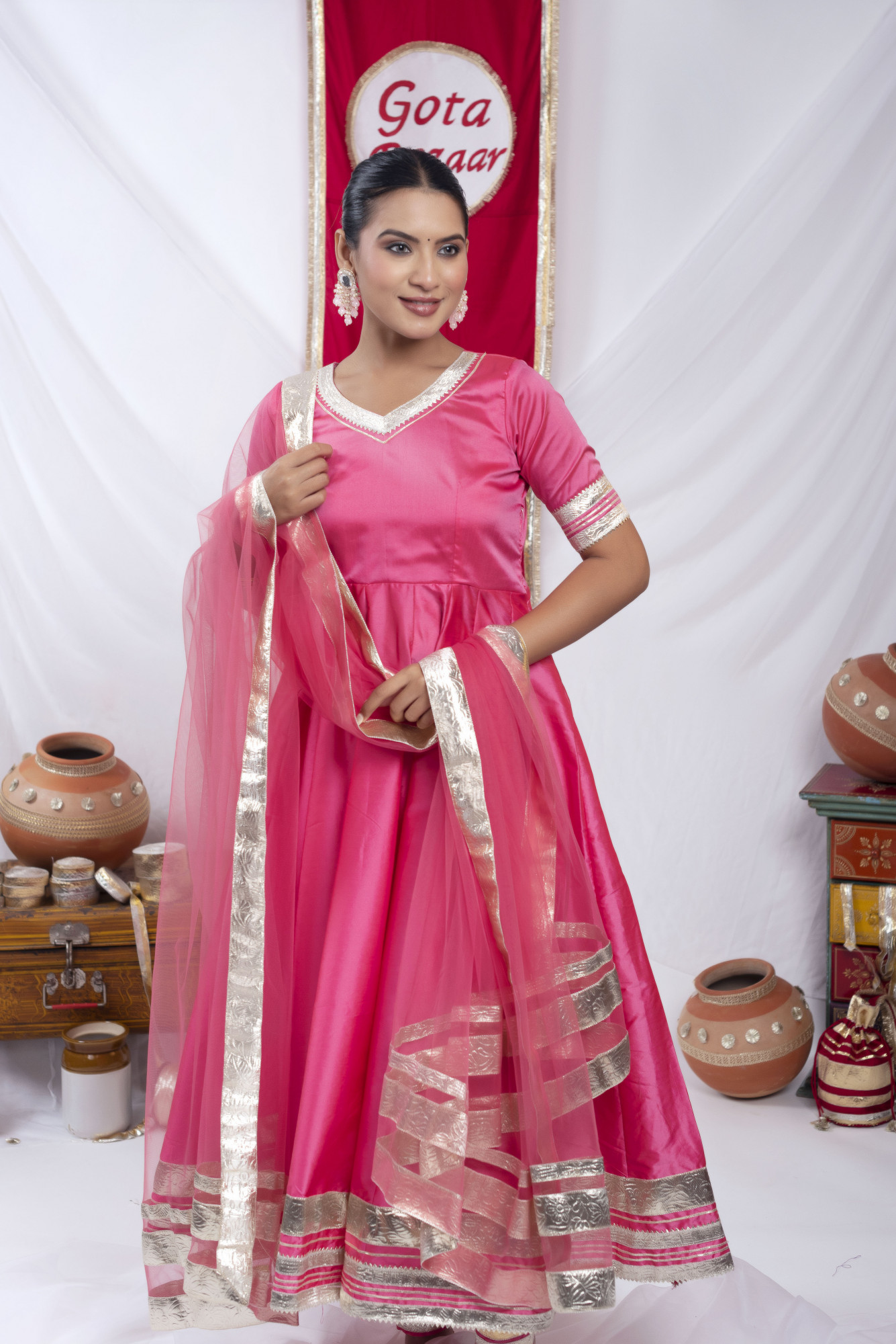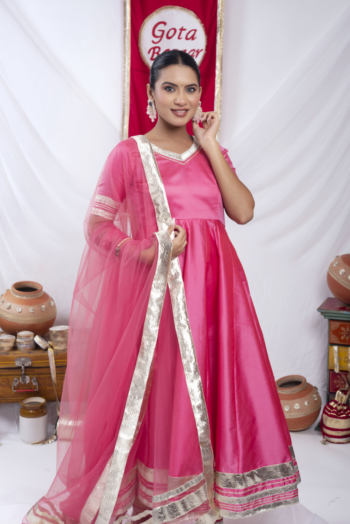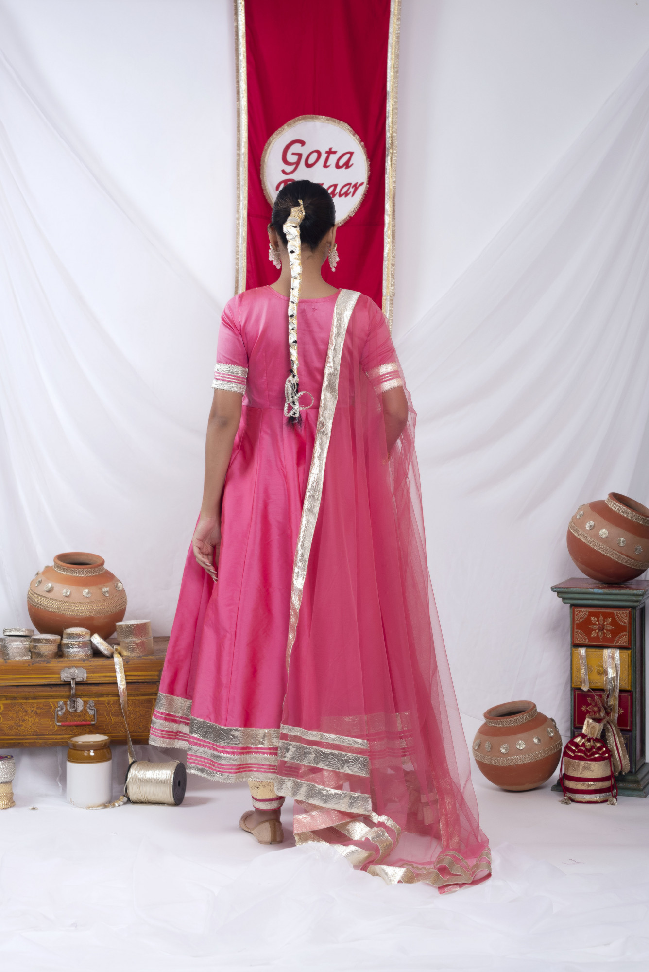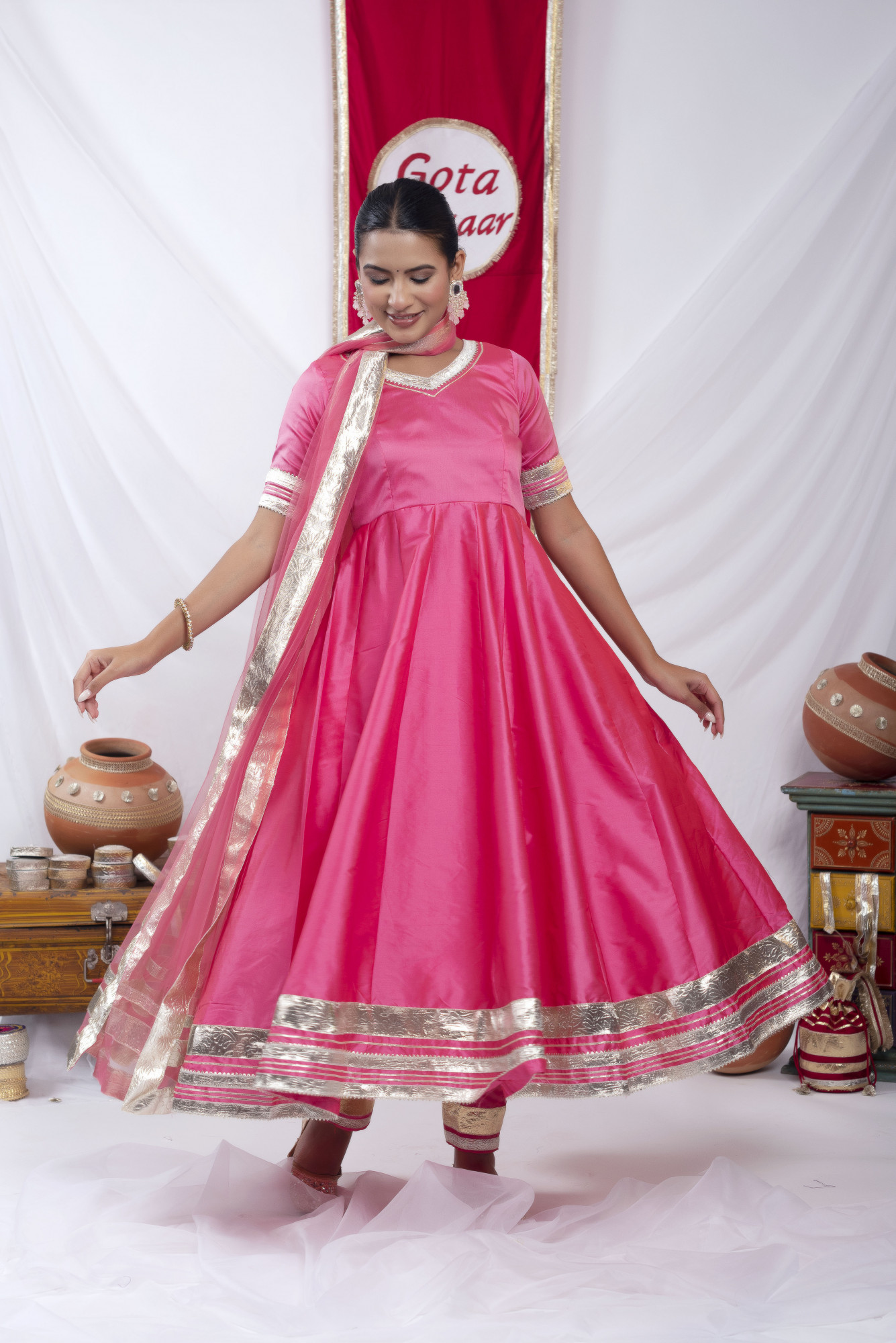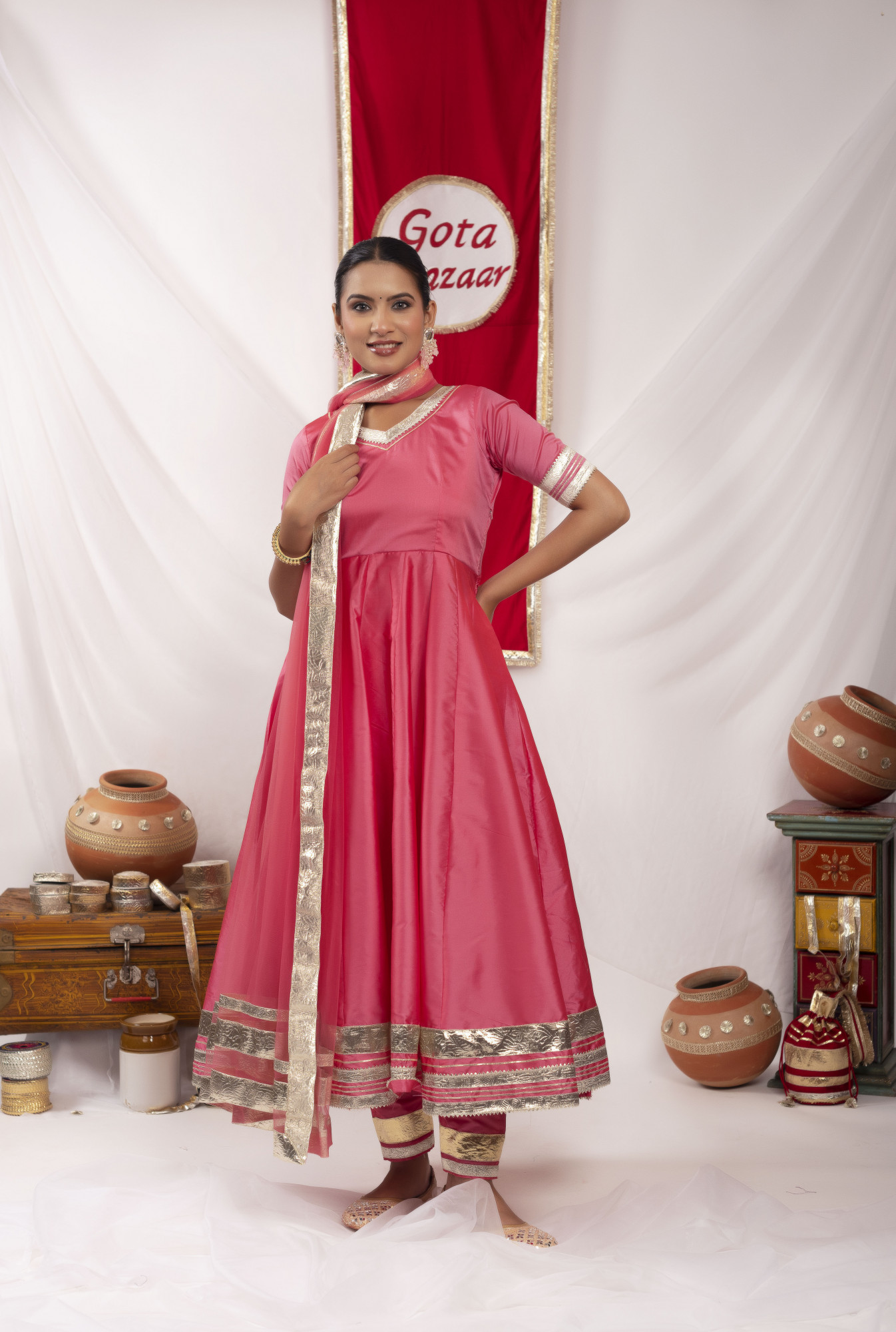 Gota bazaar Pyazi Pink Tafetta Silk Anarkali Set
