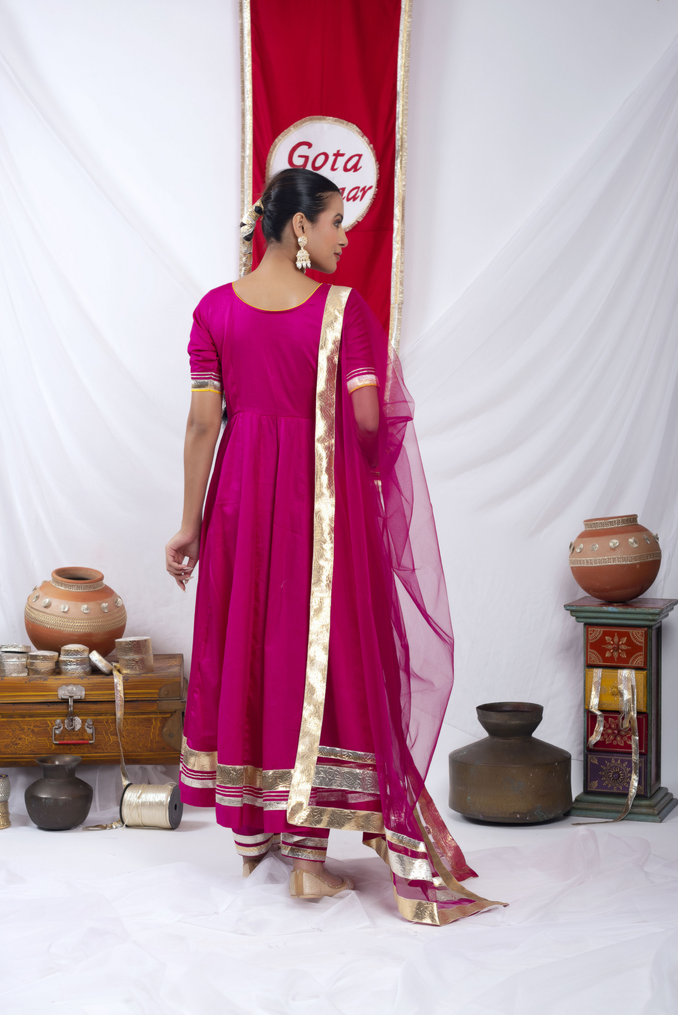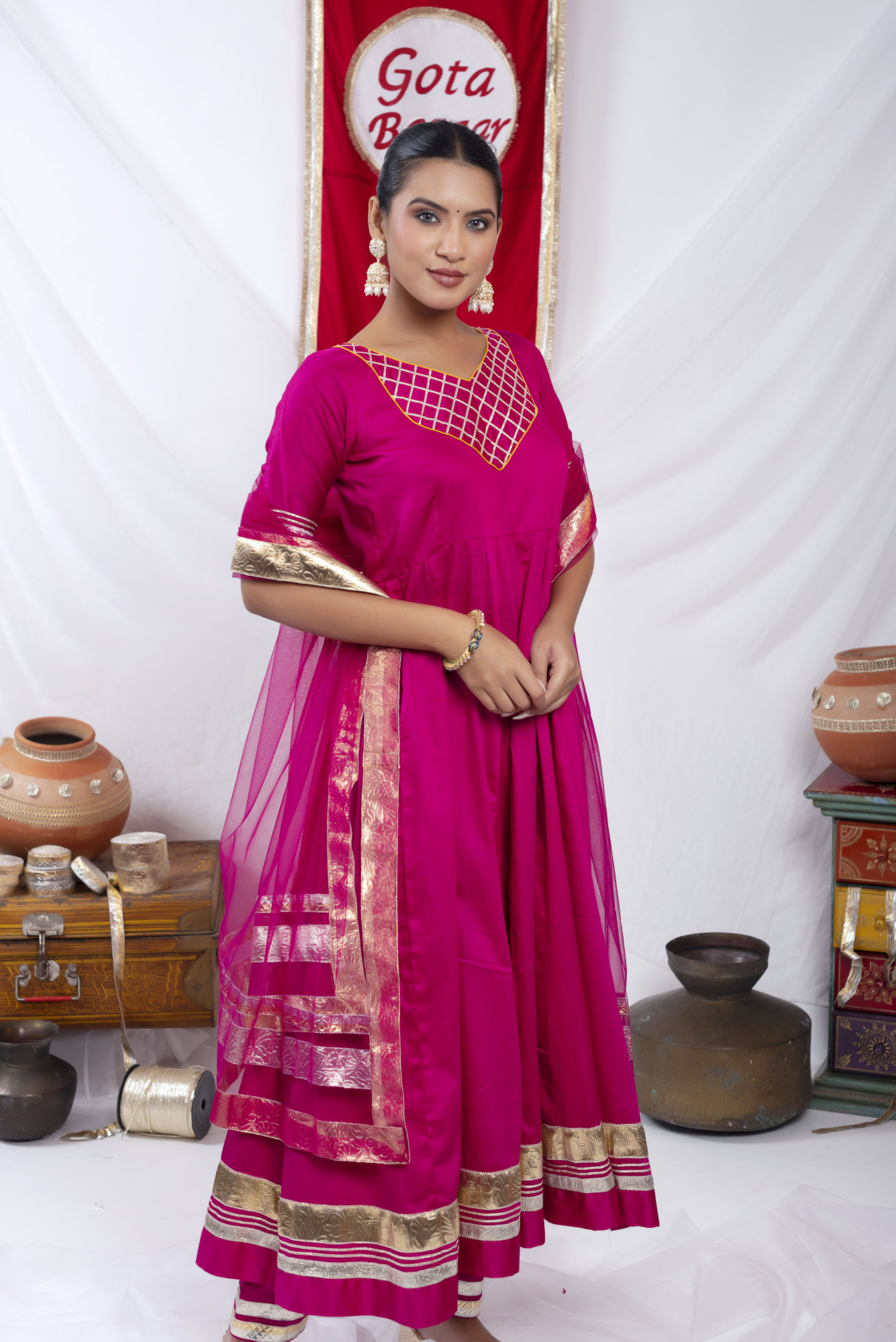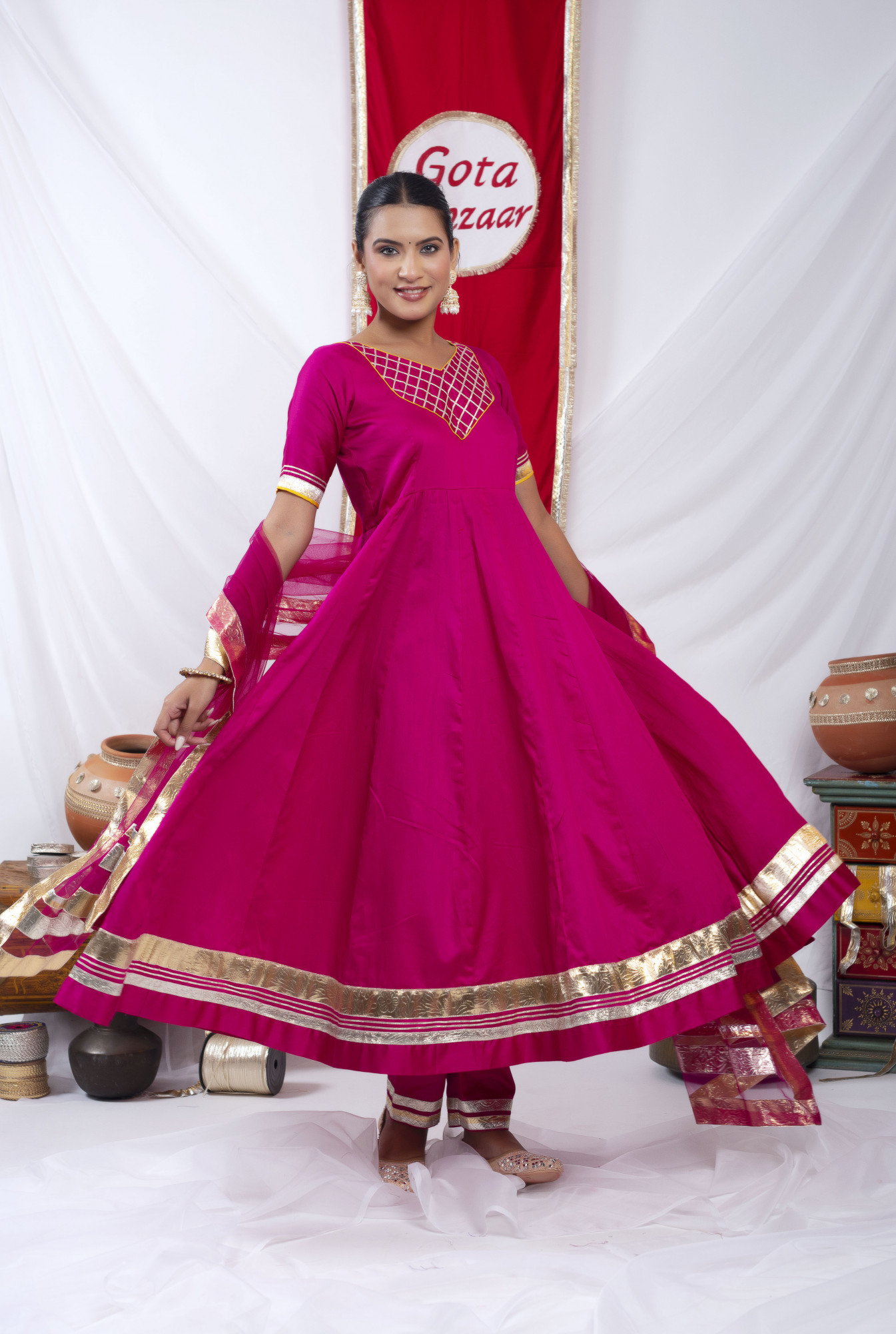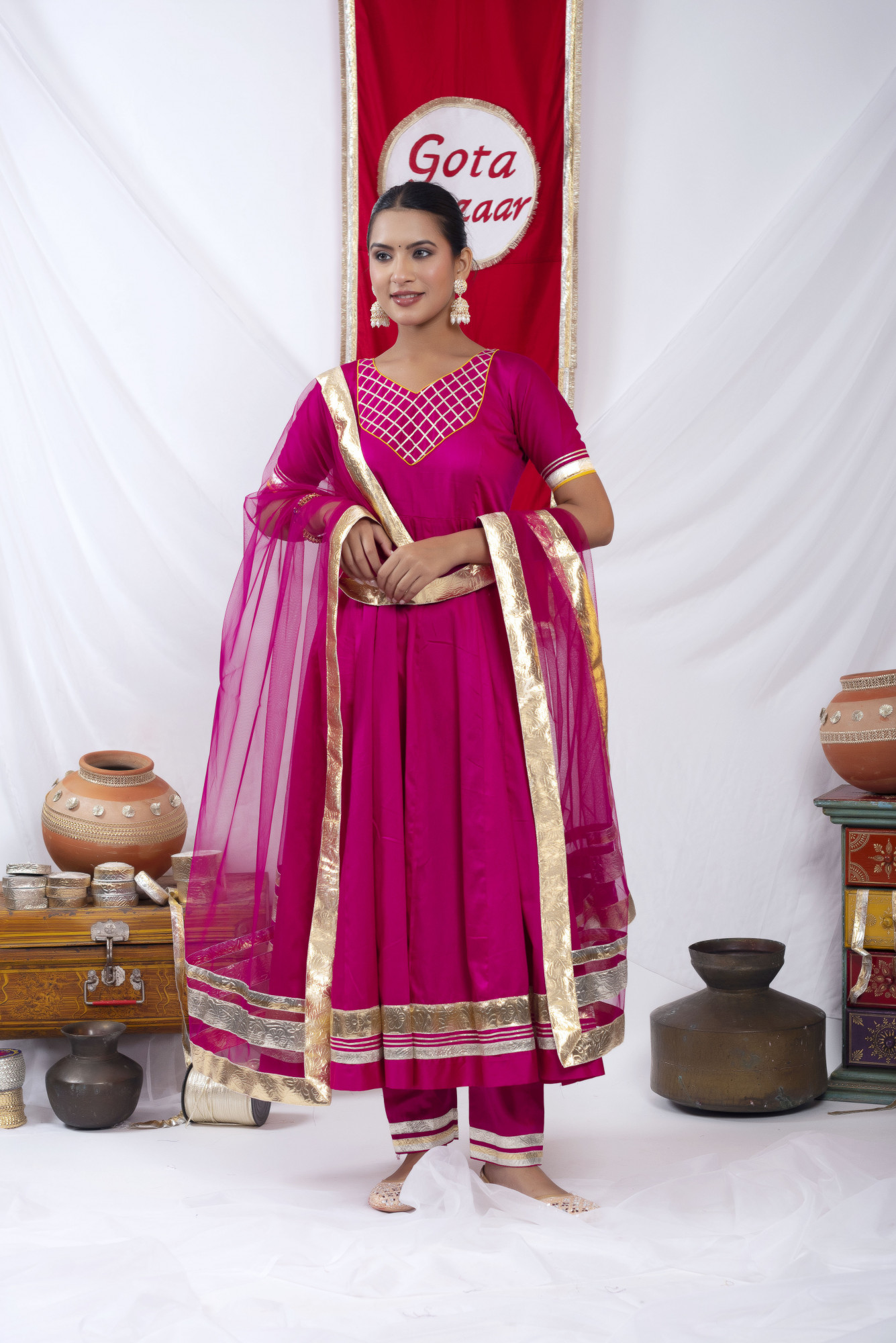 Gota bazaar Rani Pink Tafetta Silk Anarkali Set