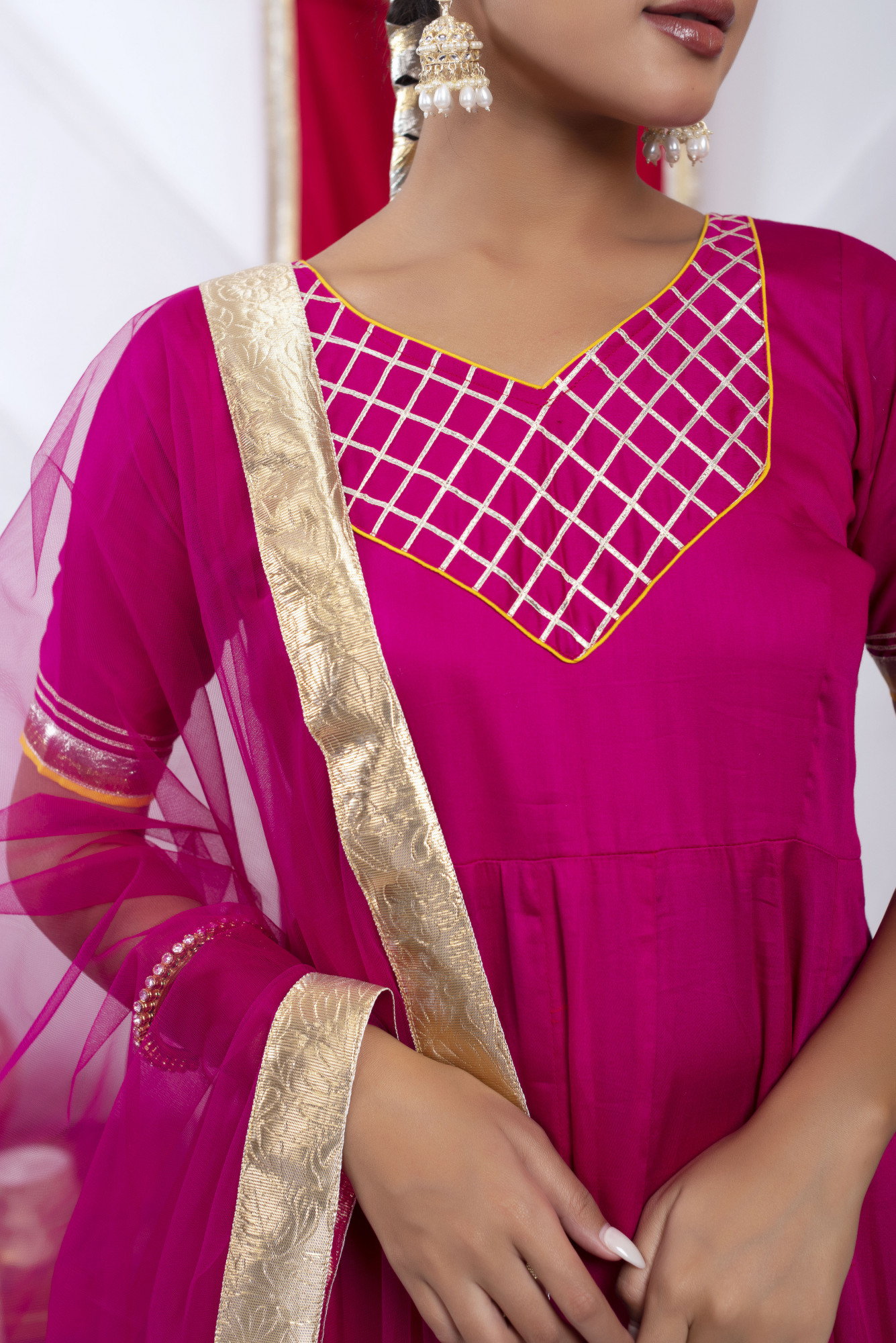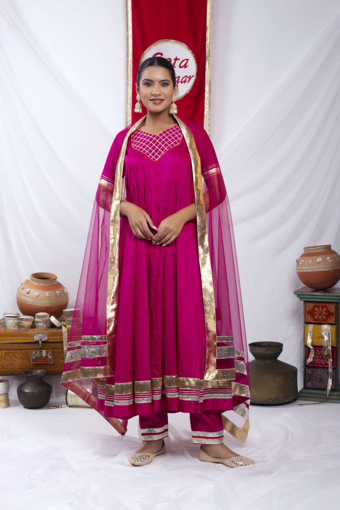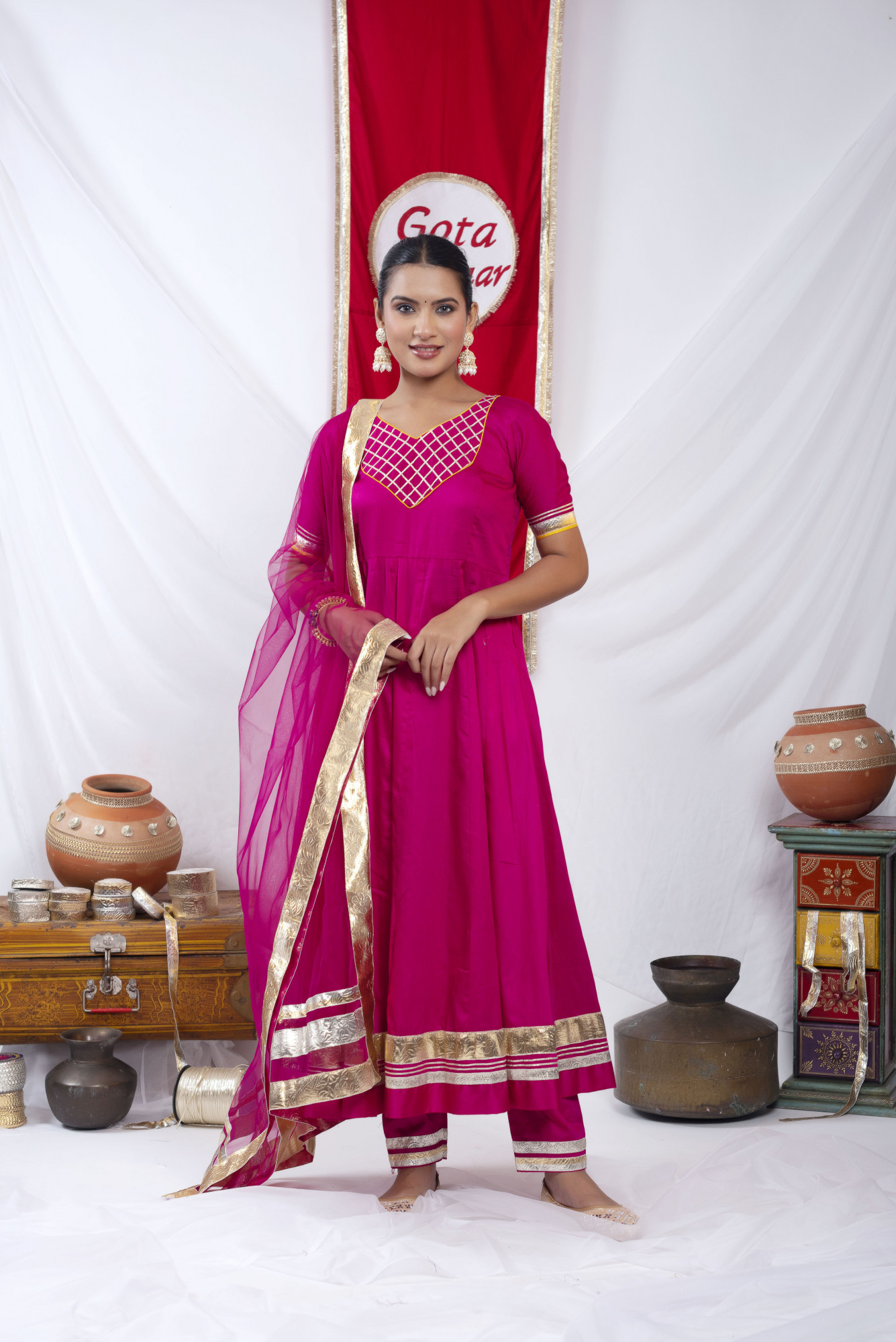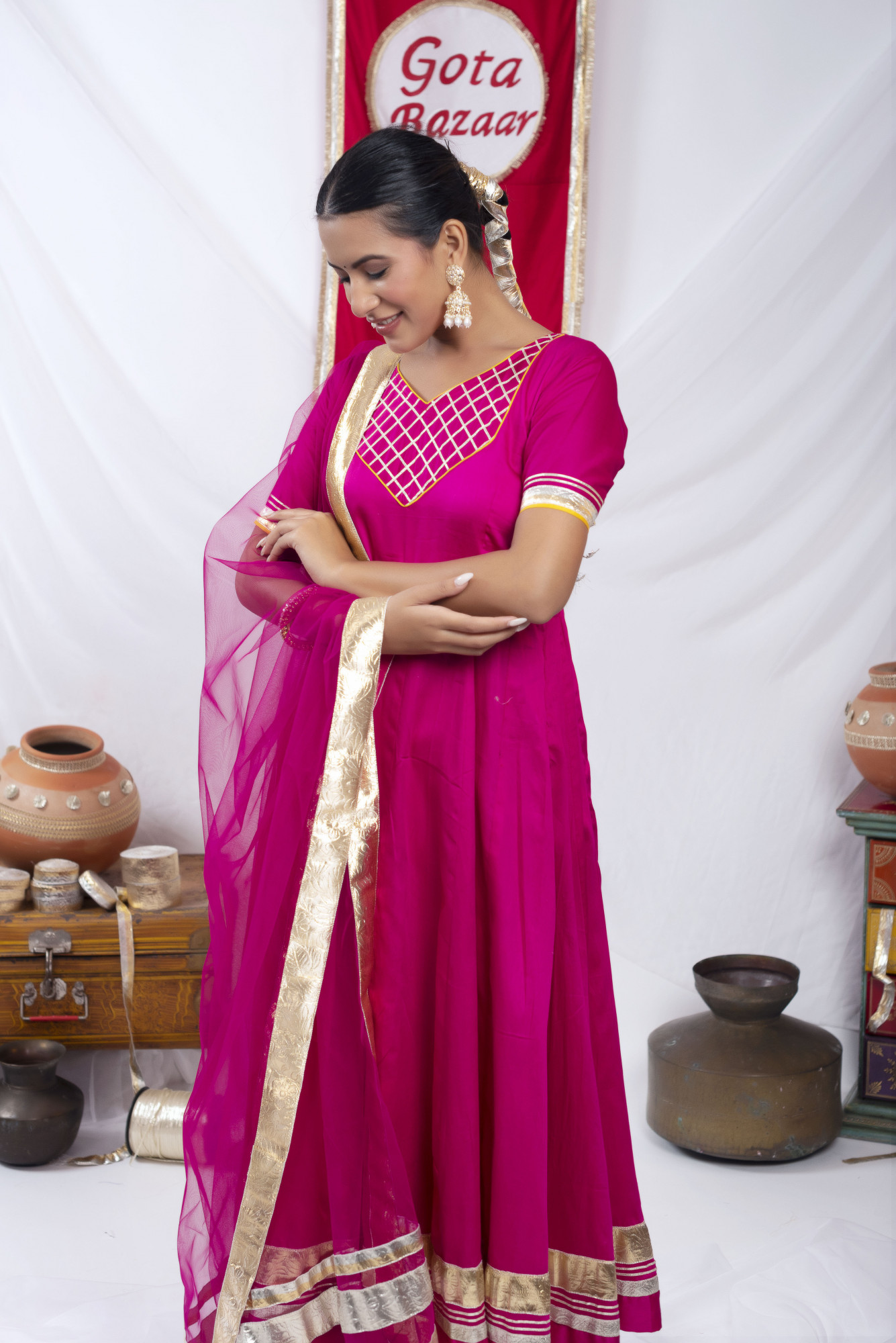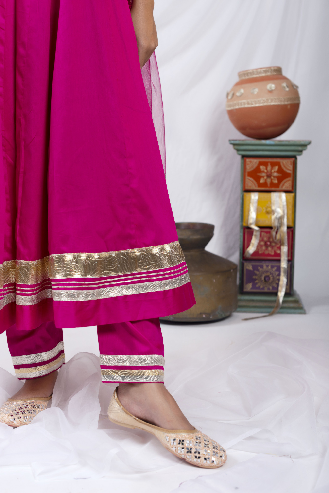 Gota bazaar Rani Pink Tafetta Silk Anarkali Set
