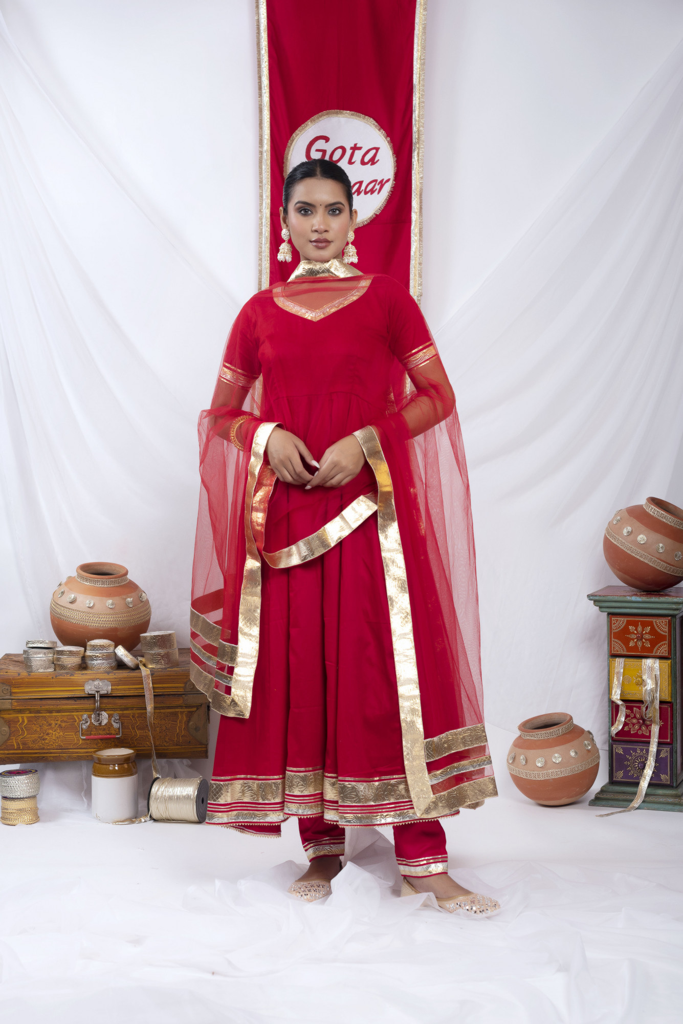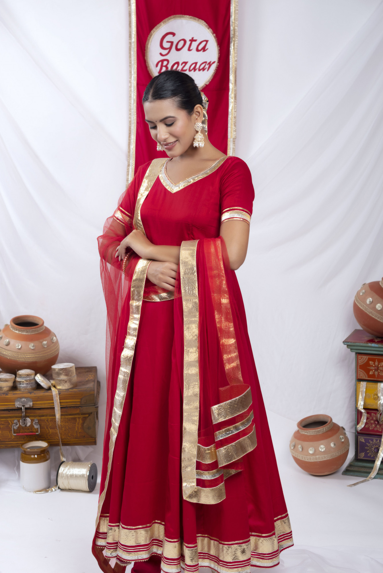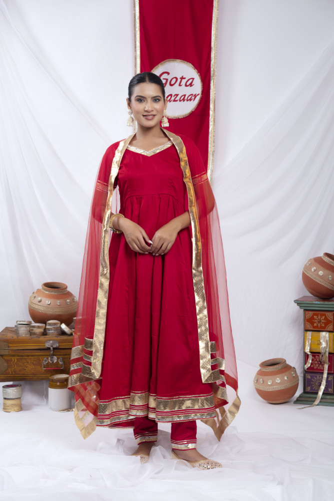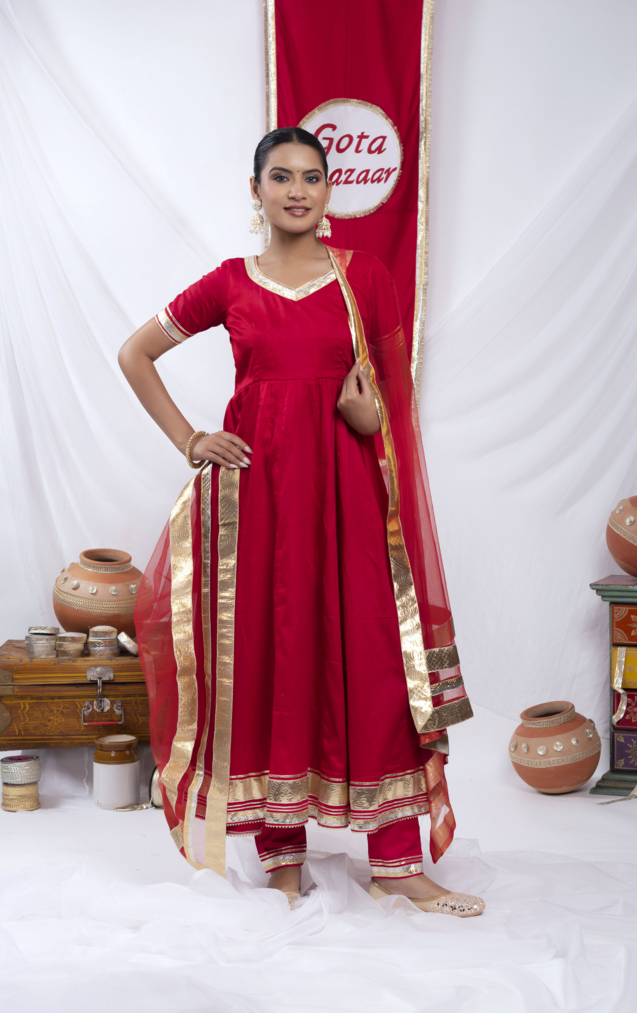 Gota bazaar Red Tafetta Silk Anarkali Set