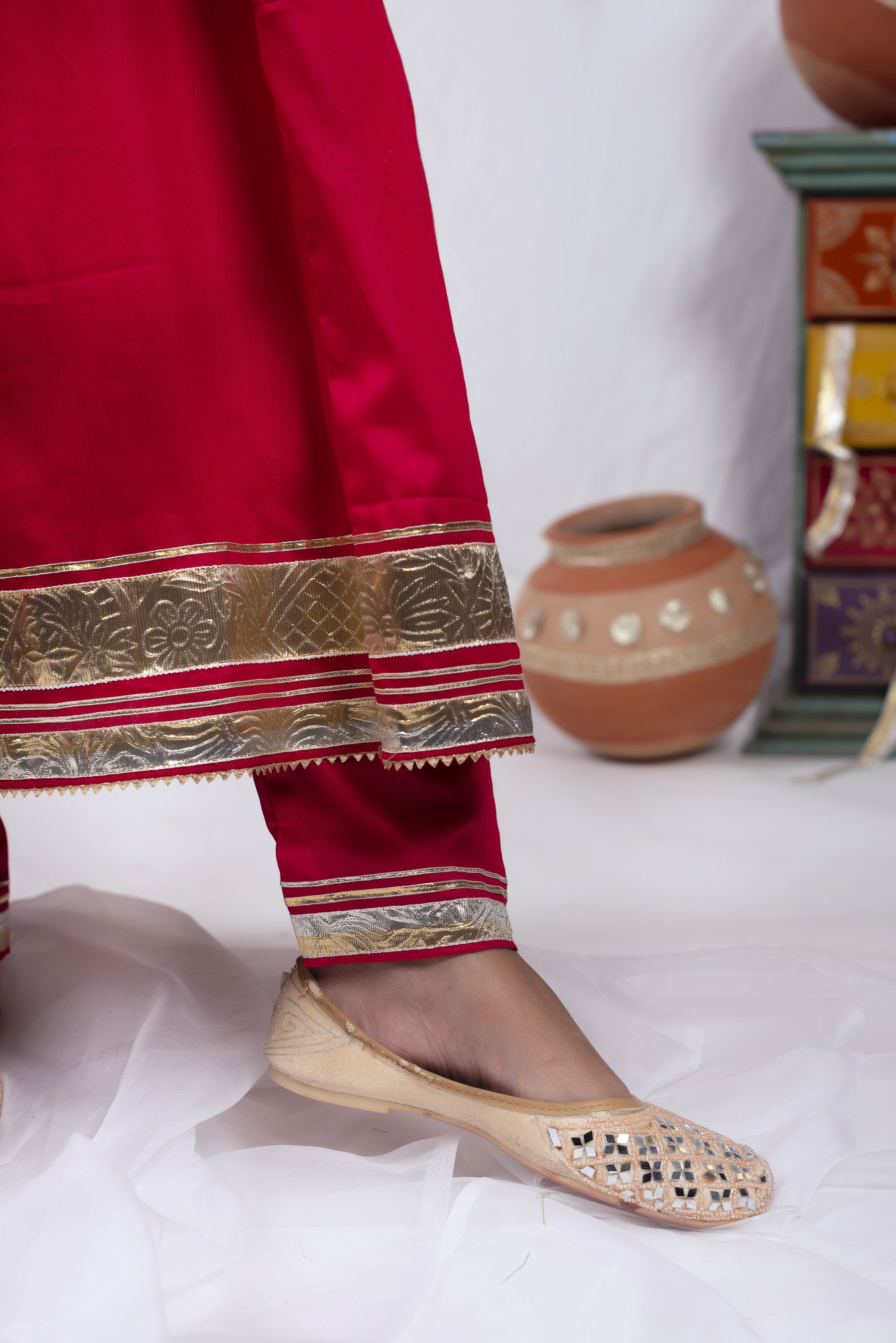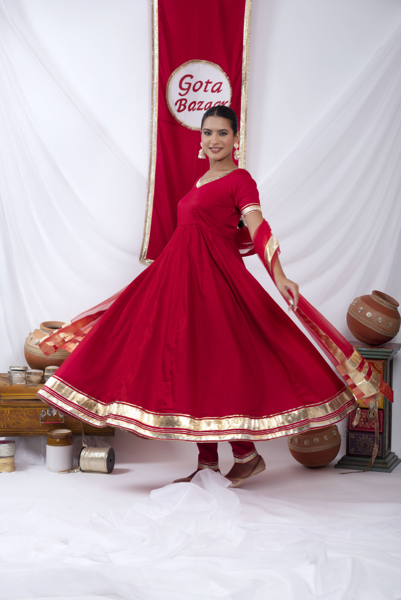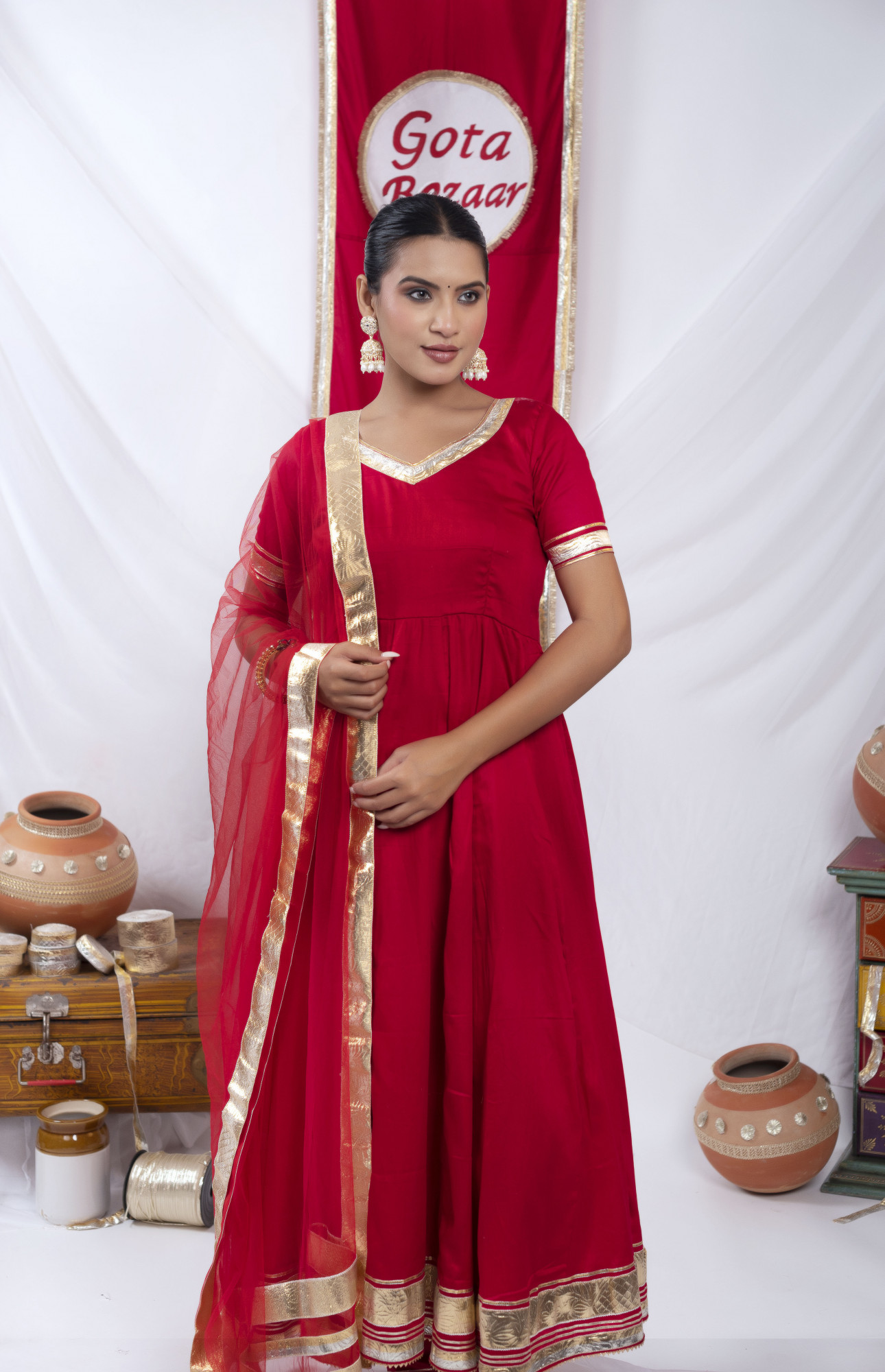 Gota bazaar Red Tafetta Silk Anarkali Set