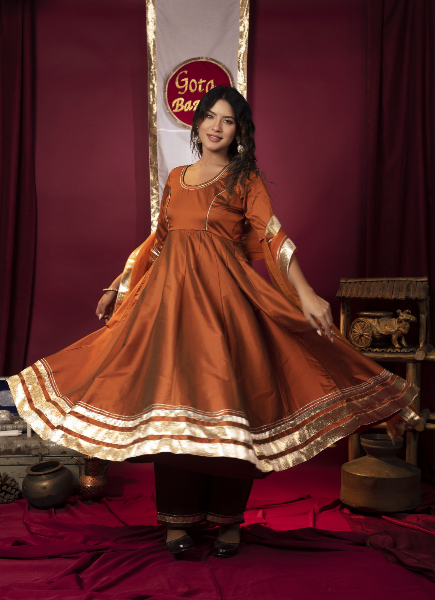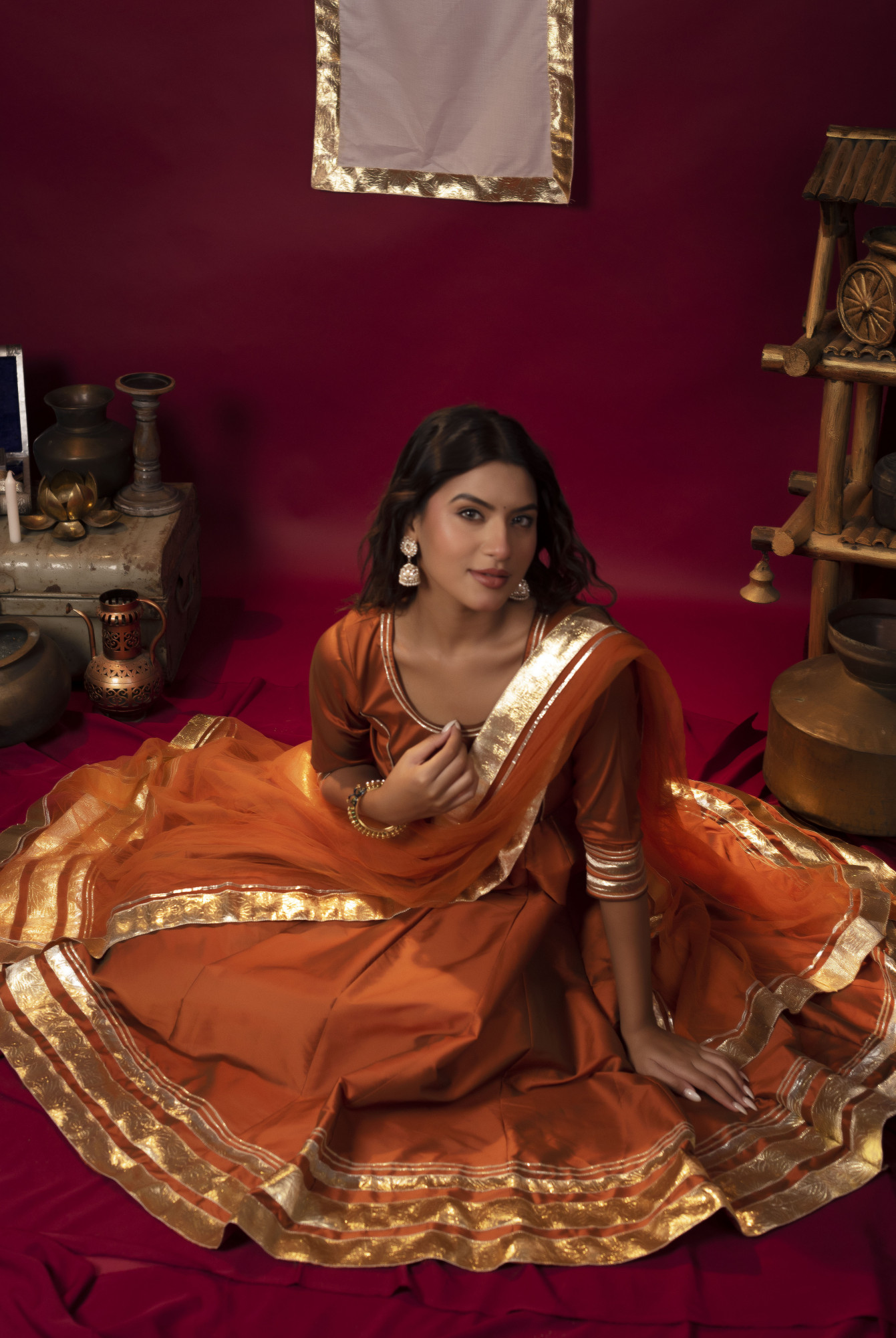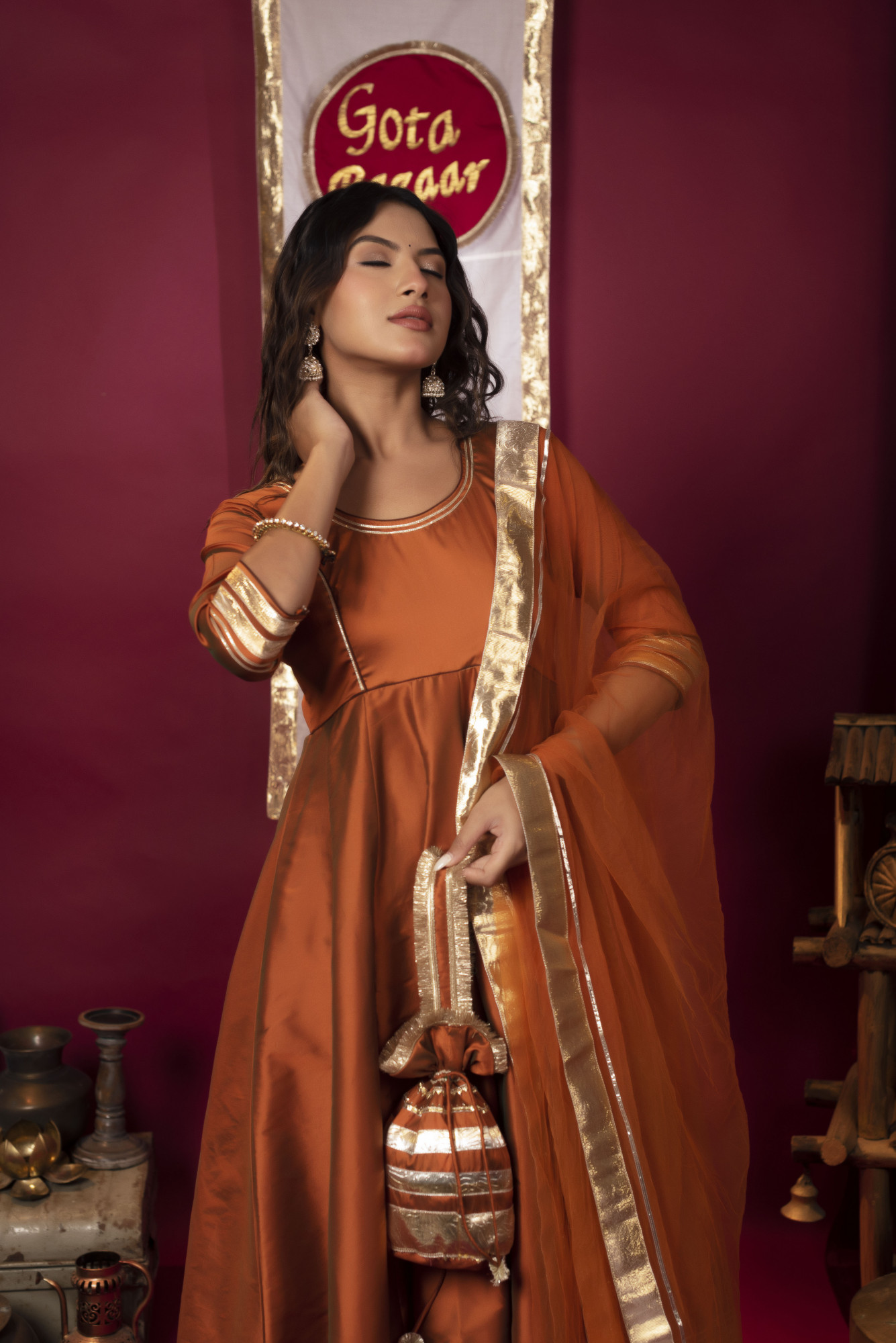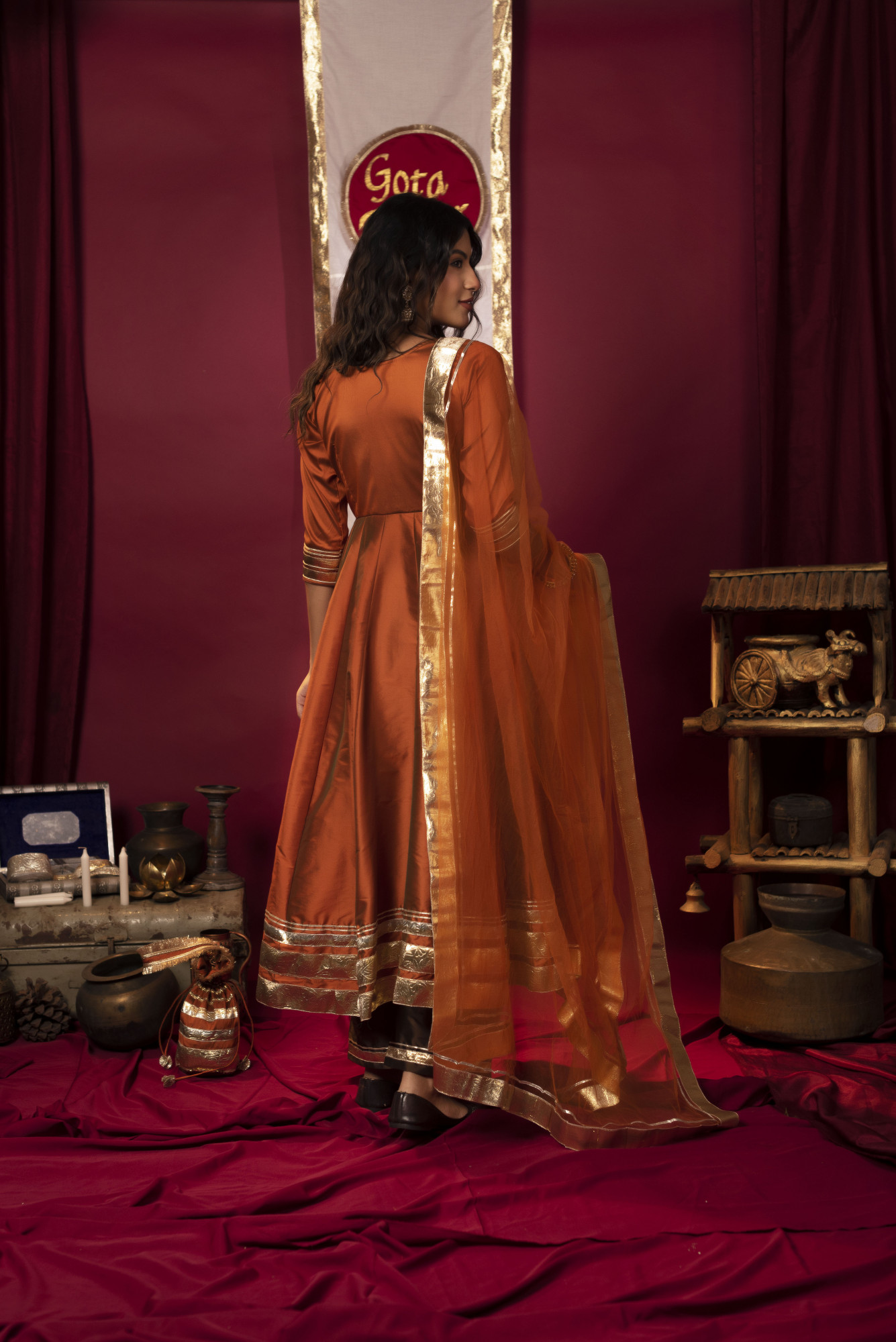 Gota bazaar Rust Orange Tafetta Silk Anarkali Set