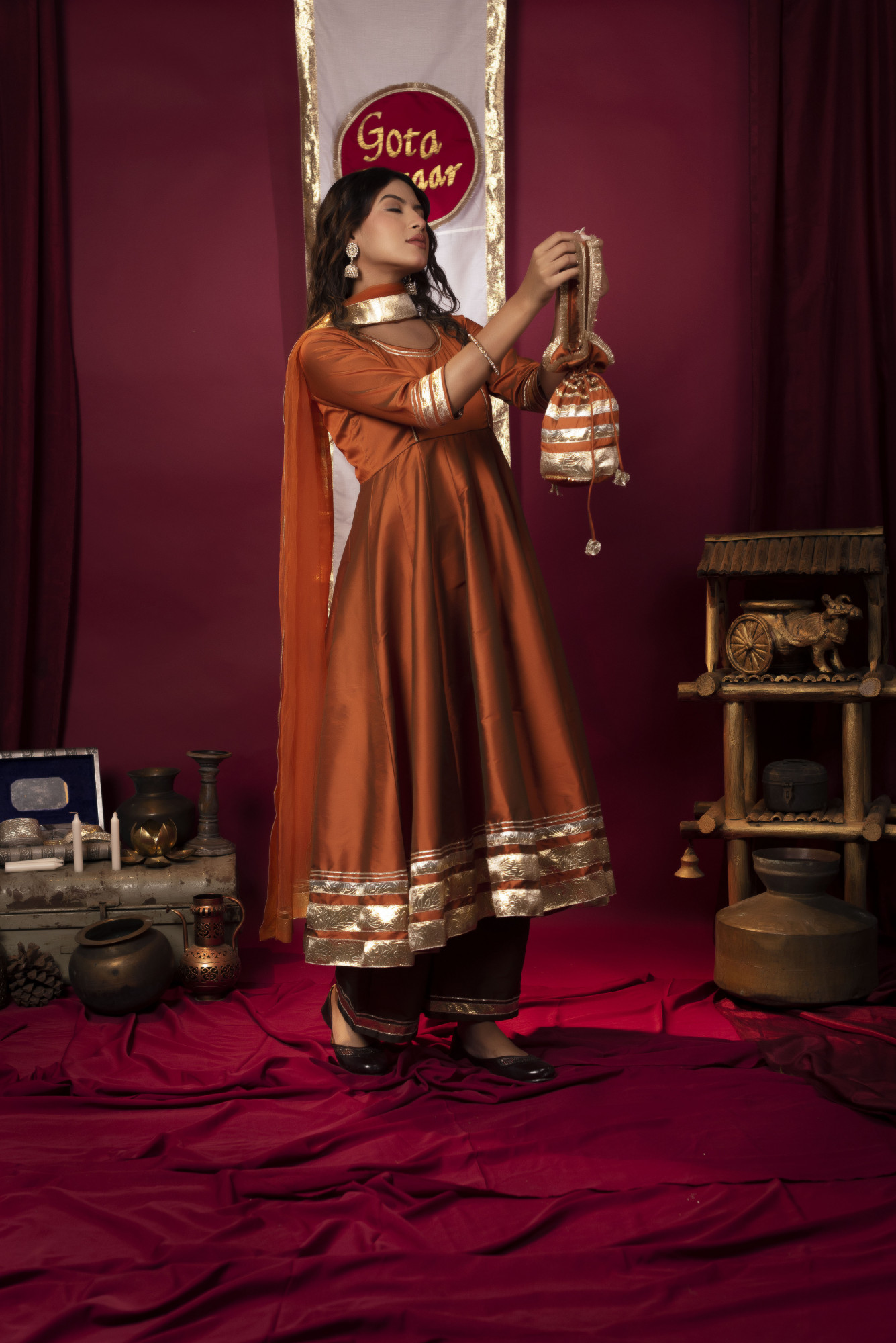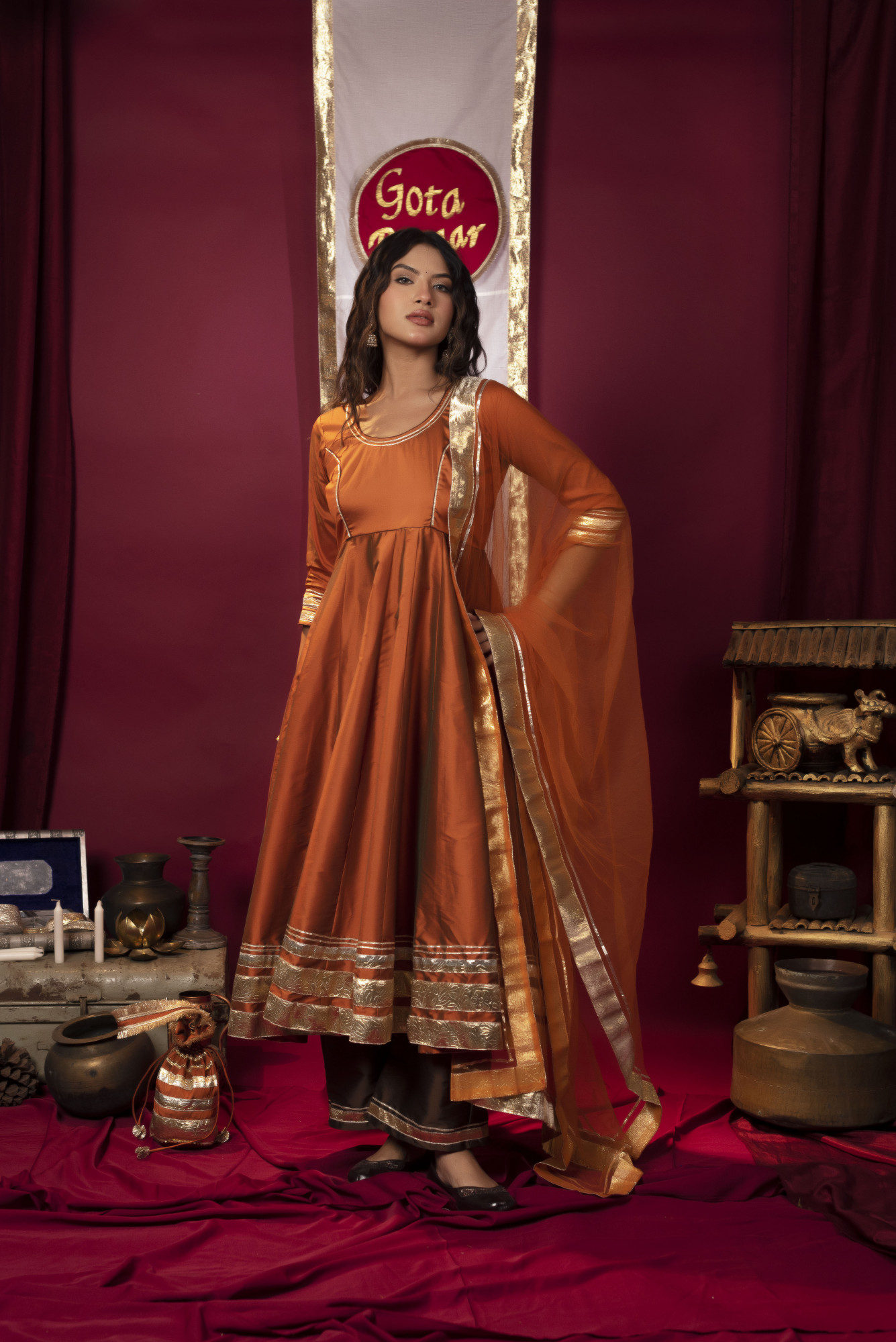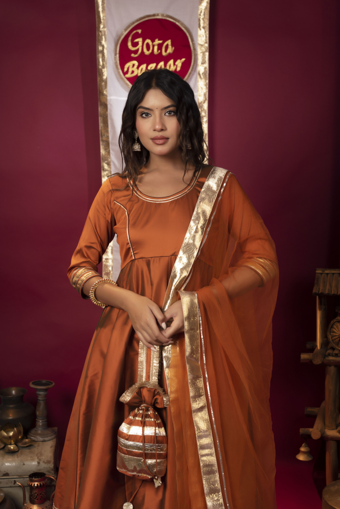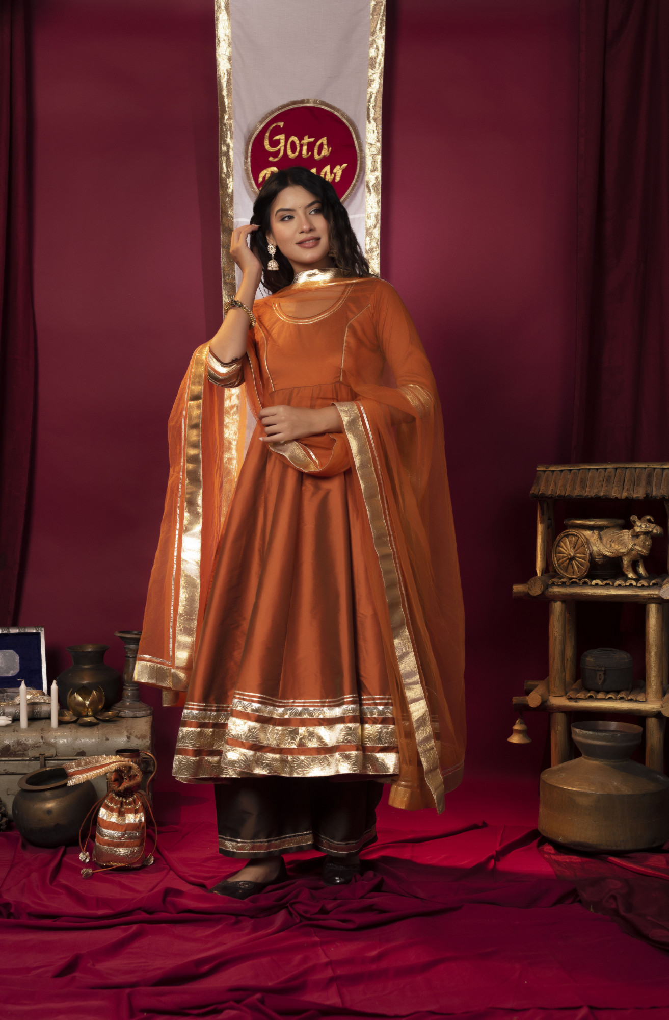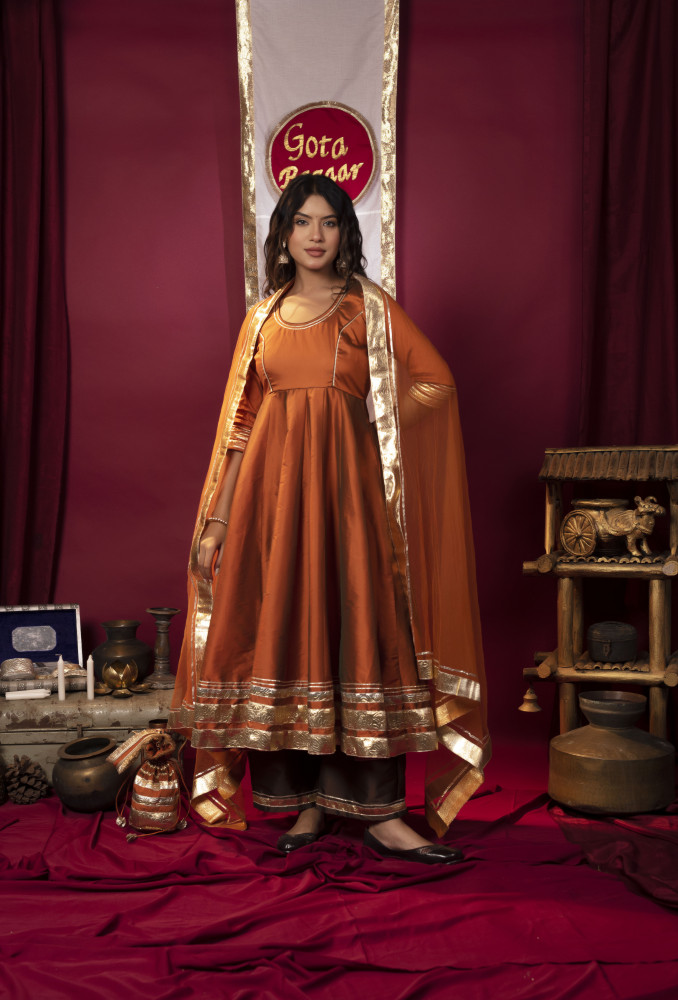 Gota bazaar Rust Orange Tafetta Silk Anarkali Set