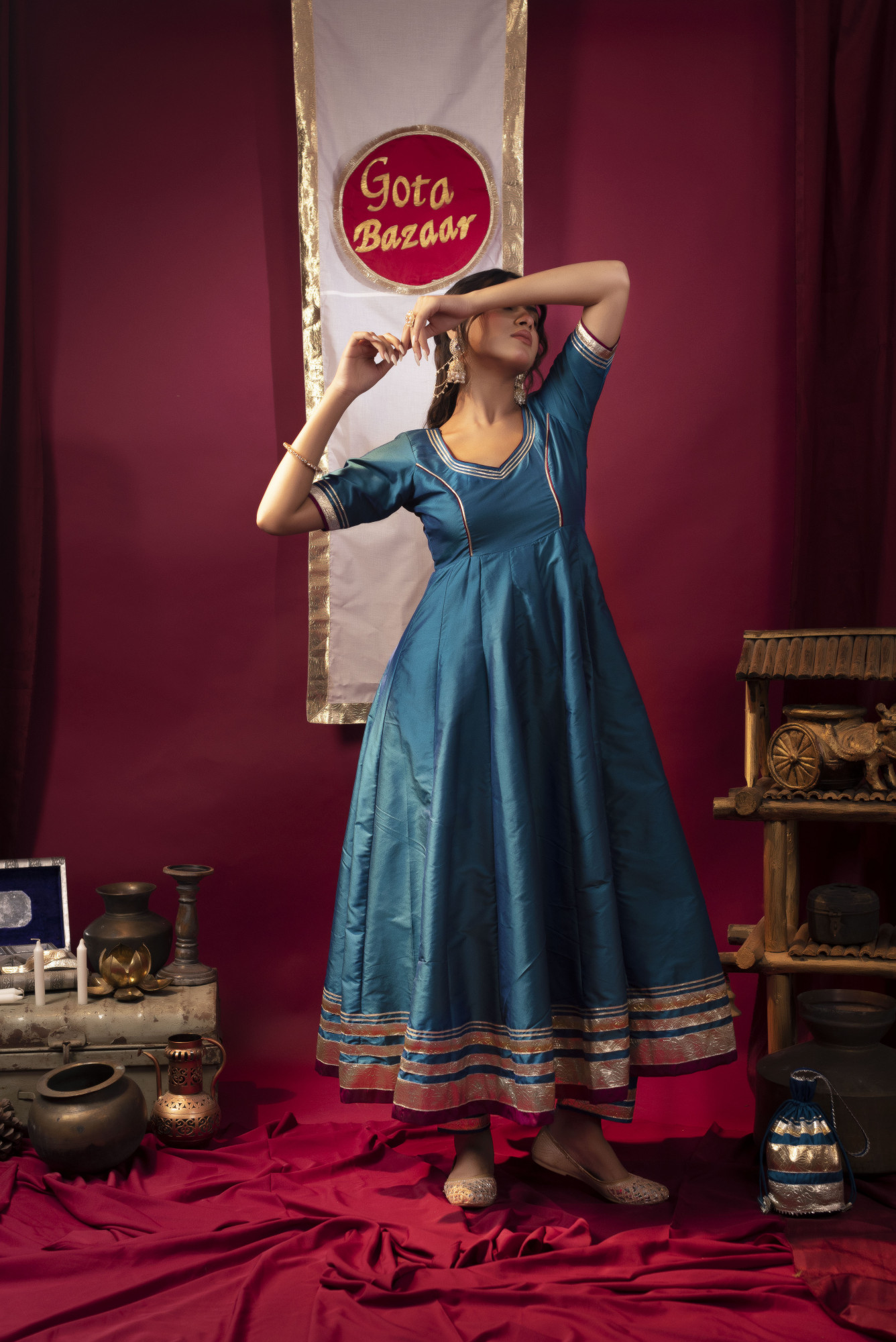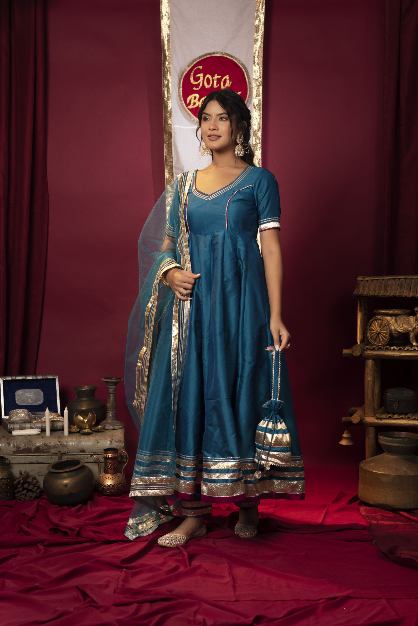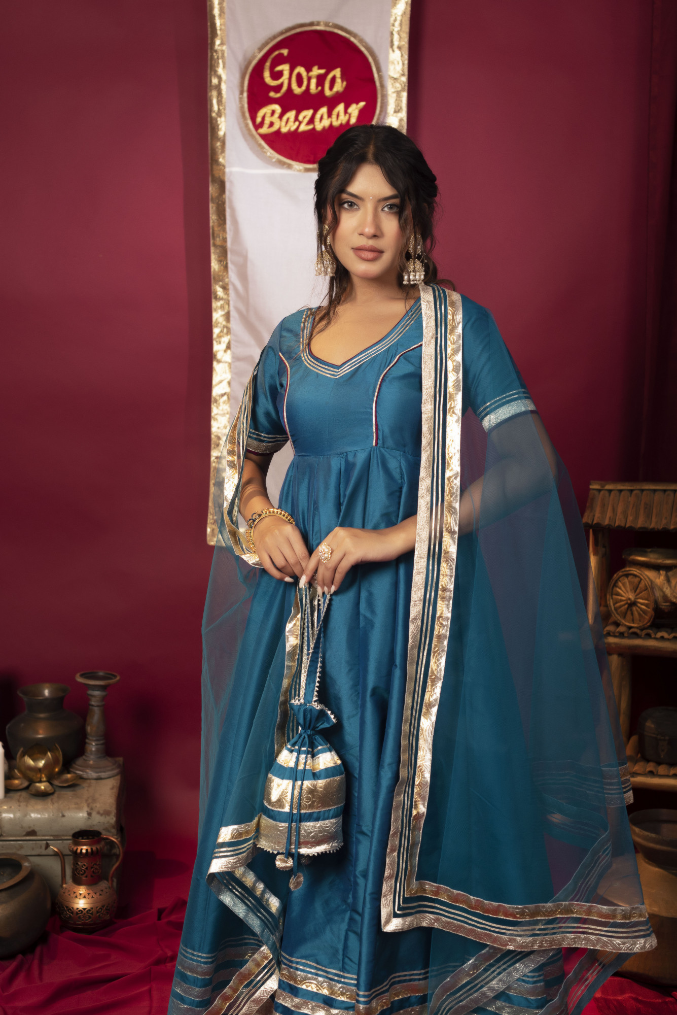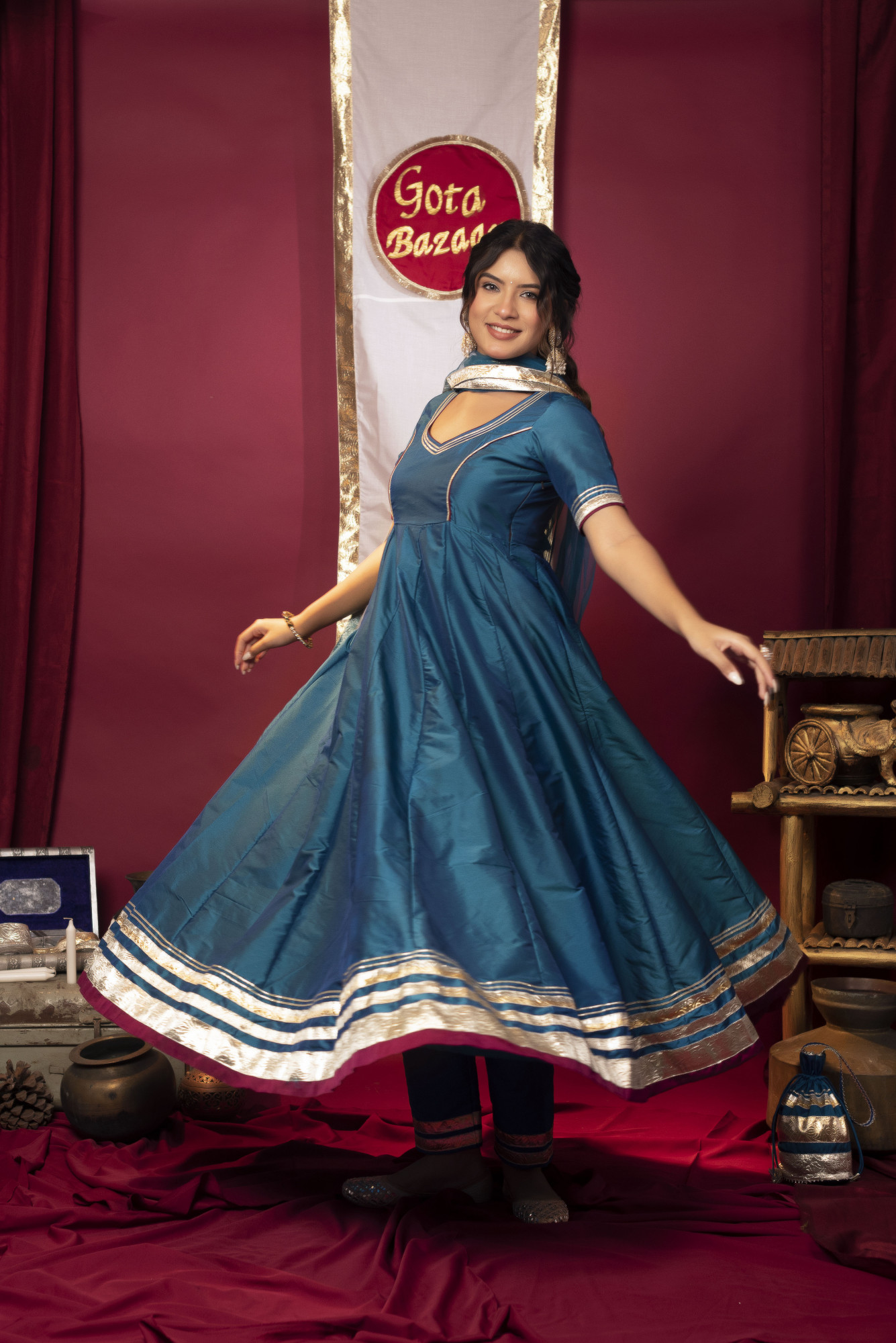 Gota bazaar Teal Blue Tafetta Silk Anarkali Set