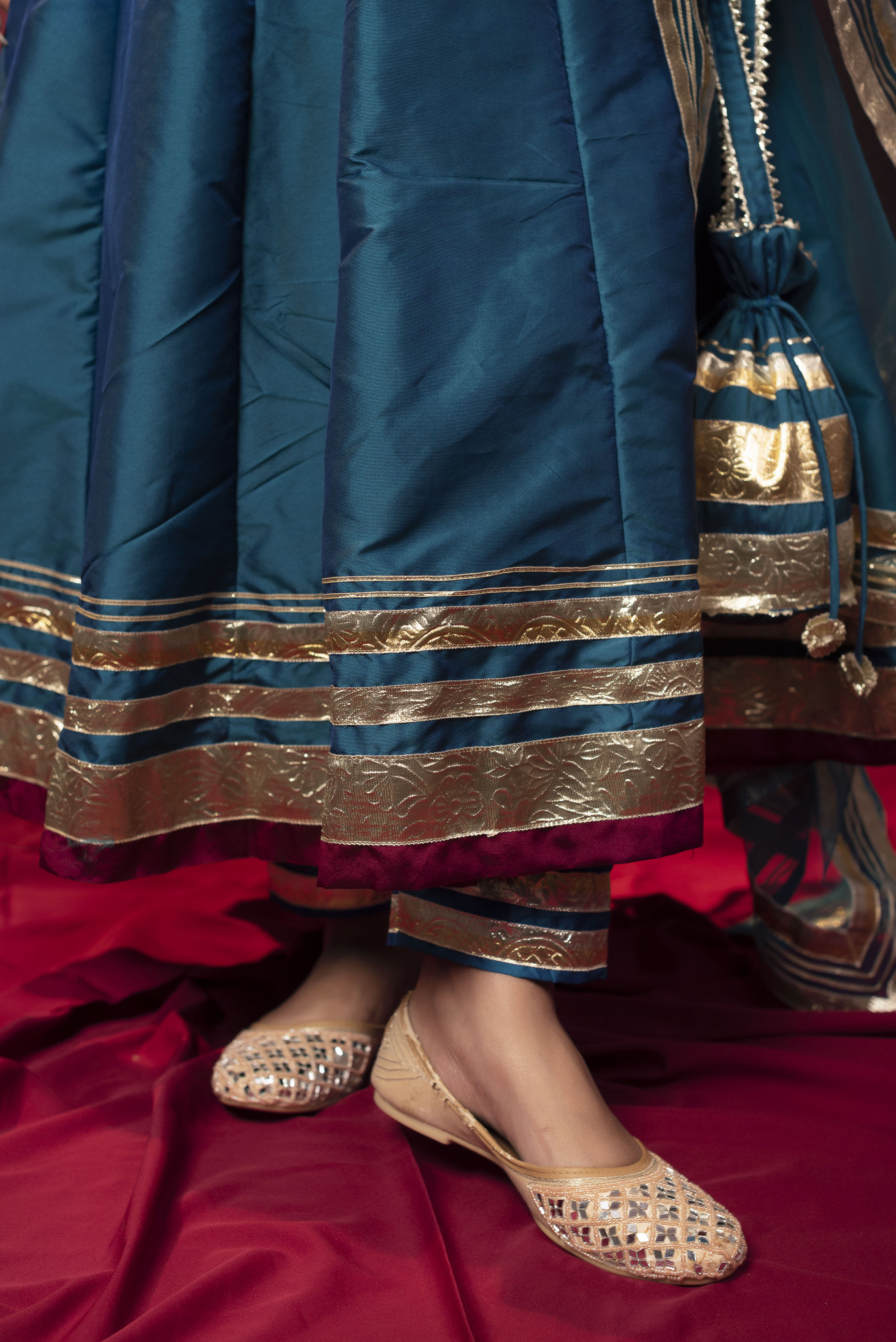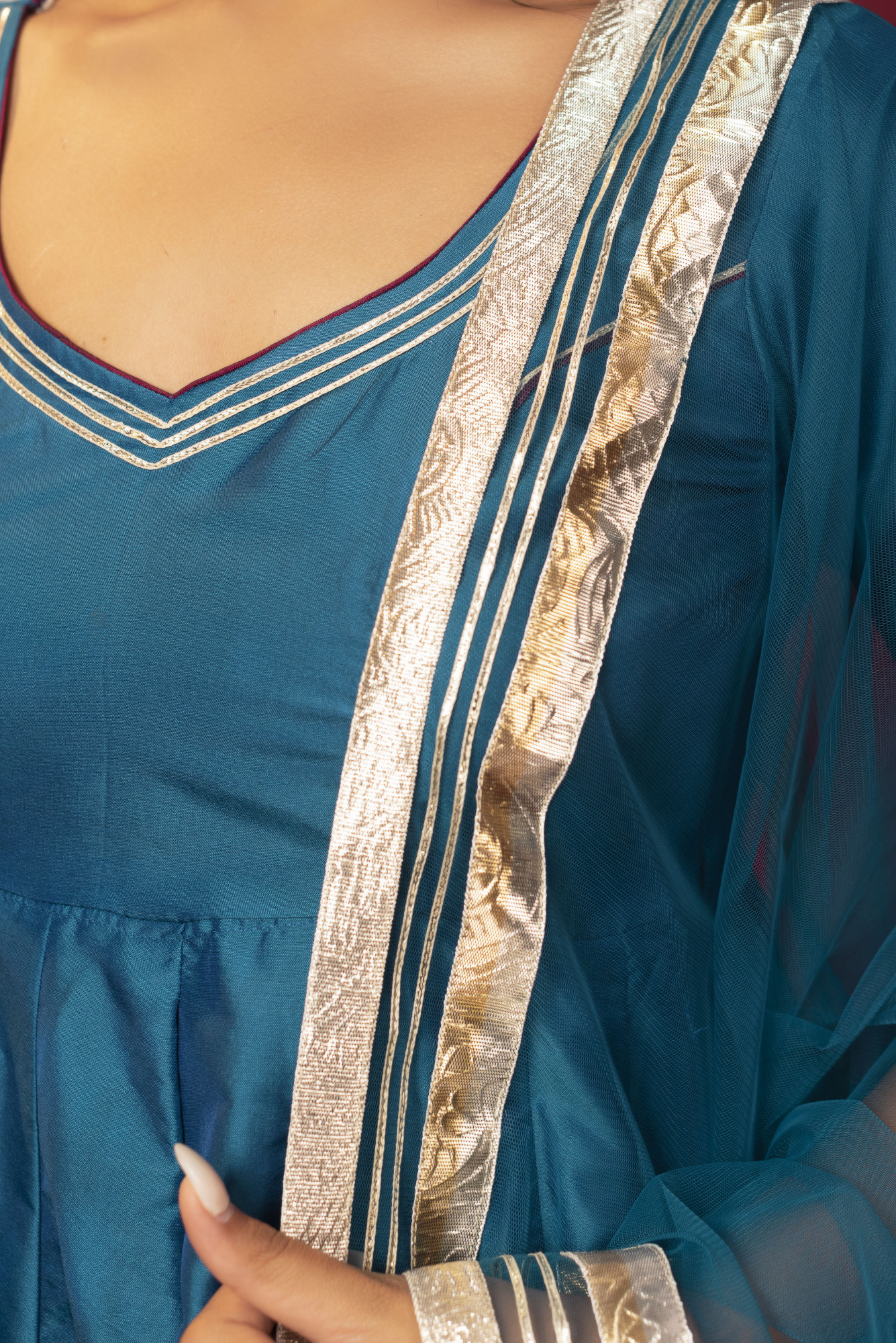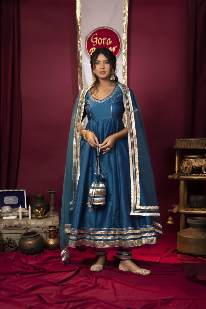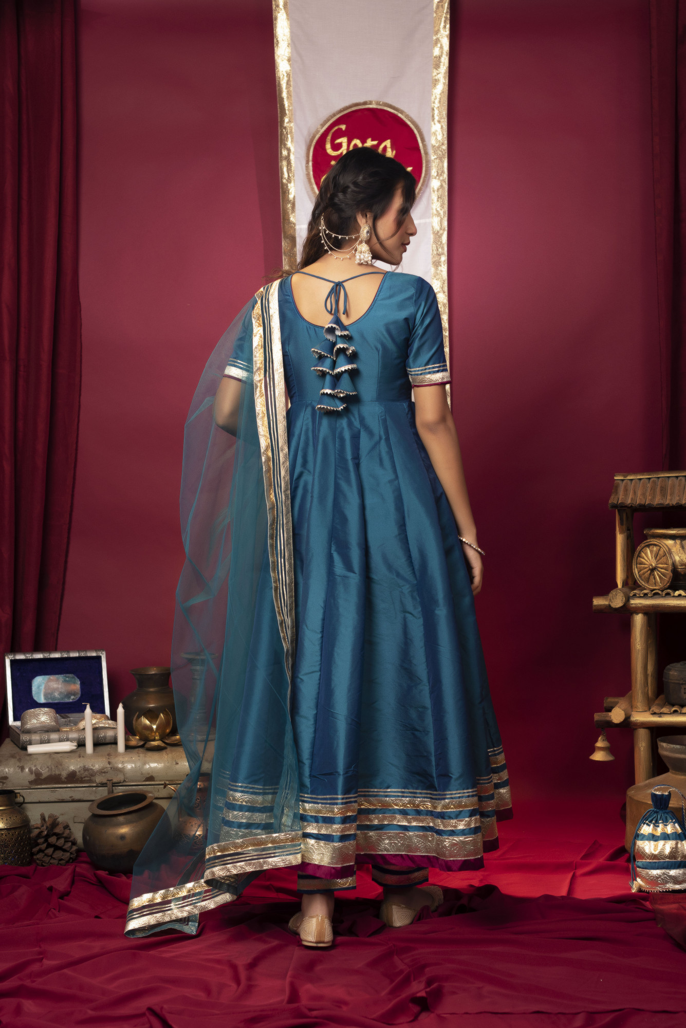 Gota bazaar Teal Blue Tafetta Silk Anarkali Set