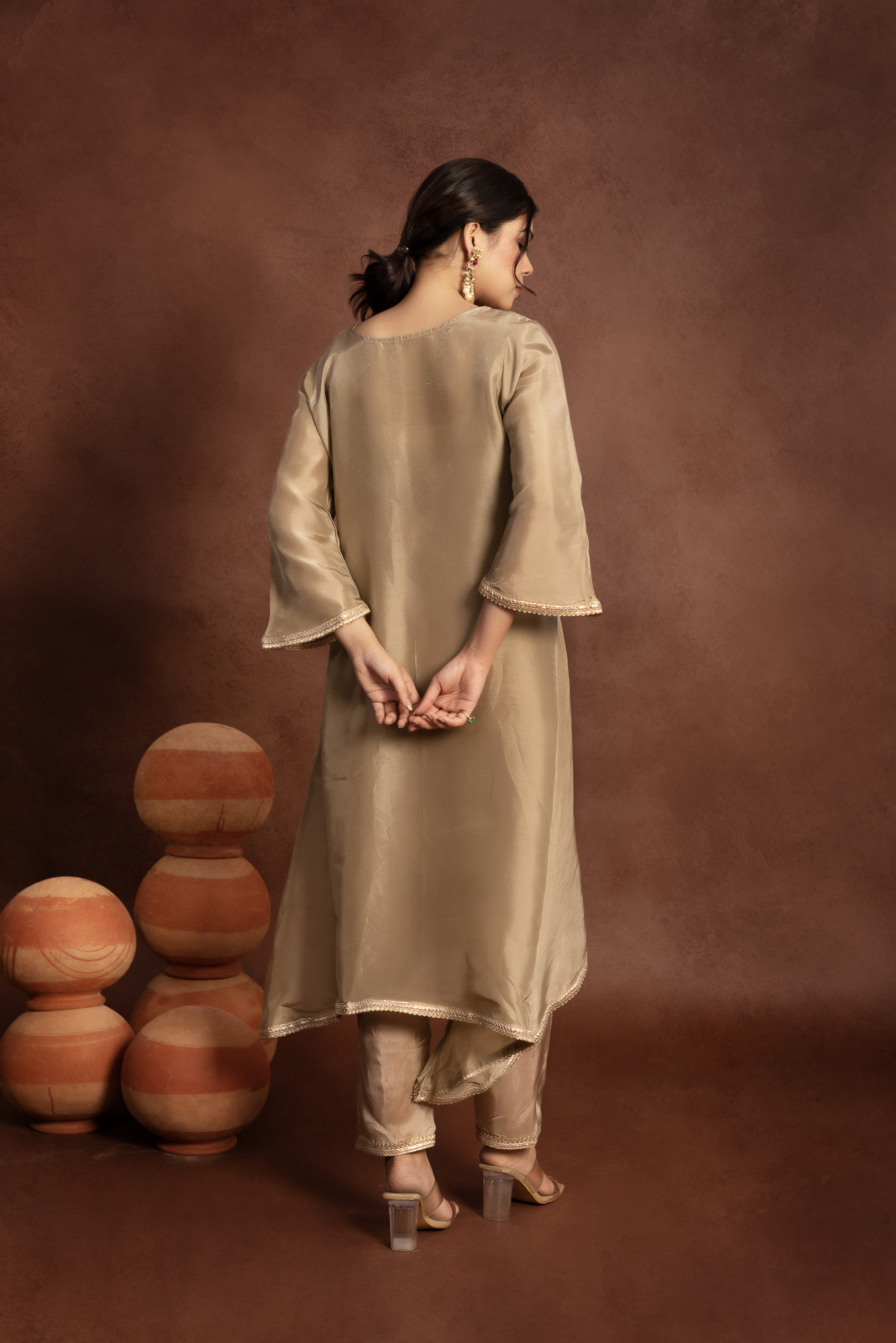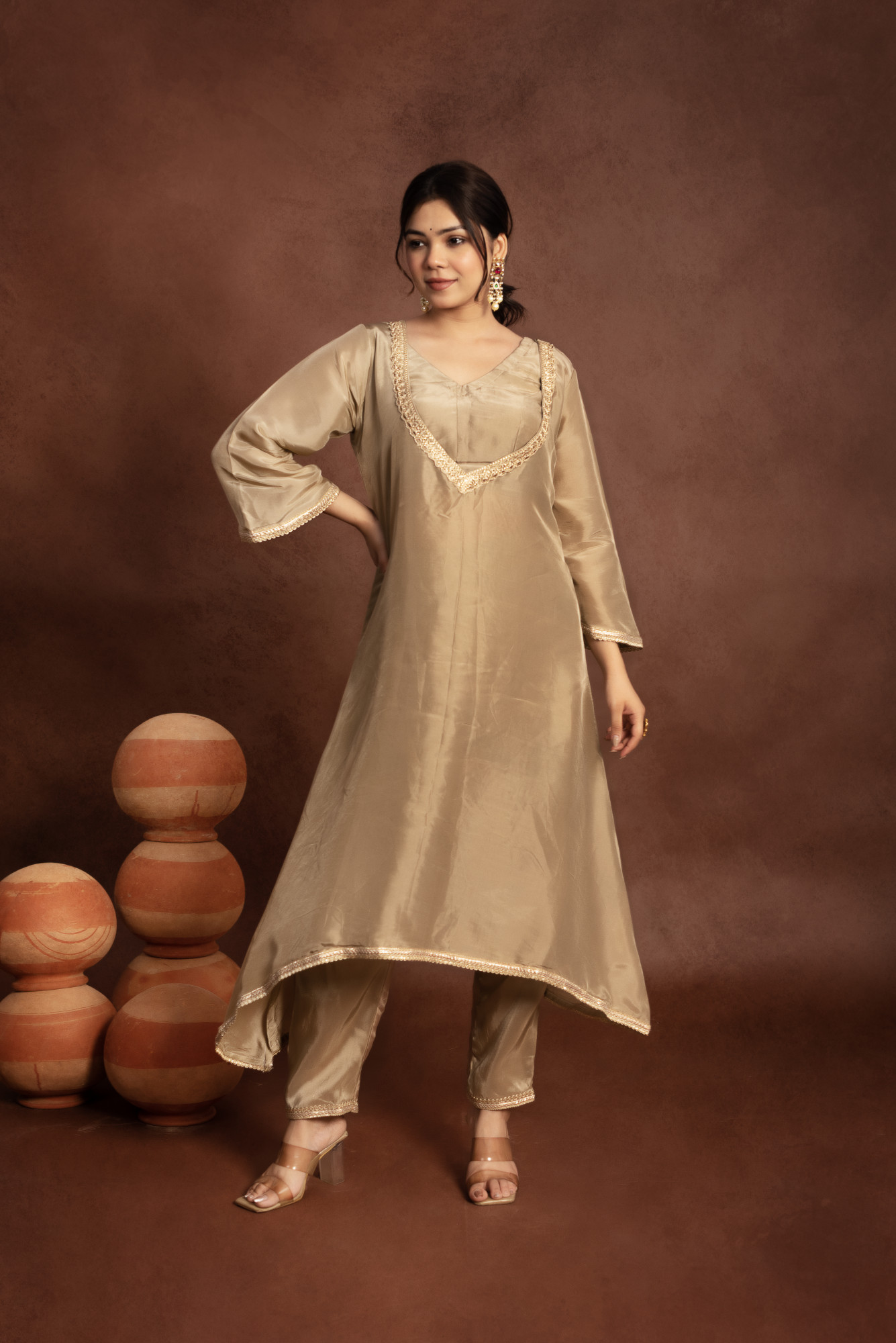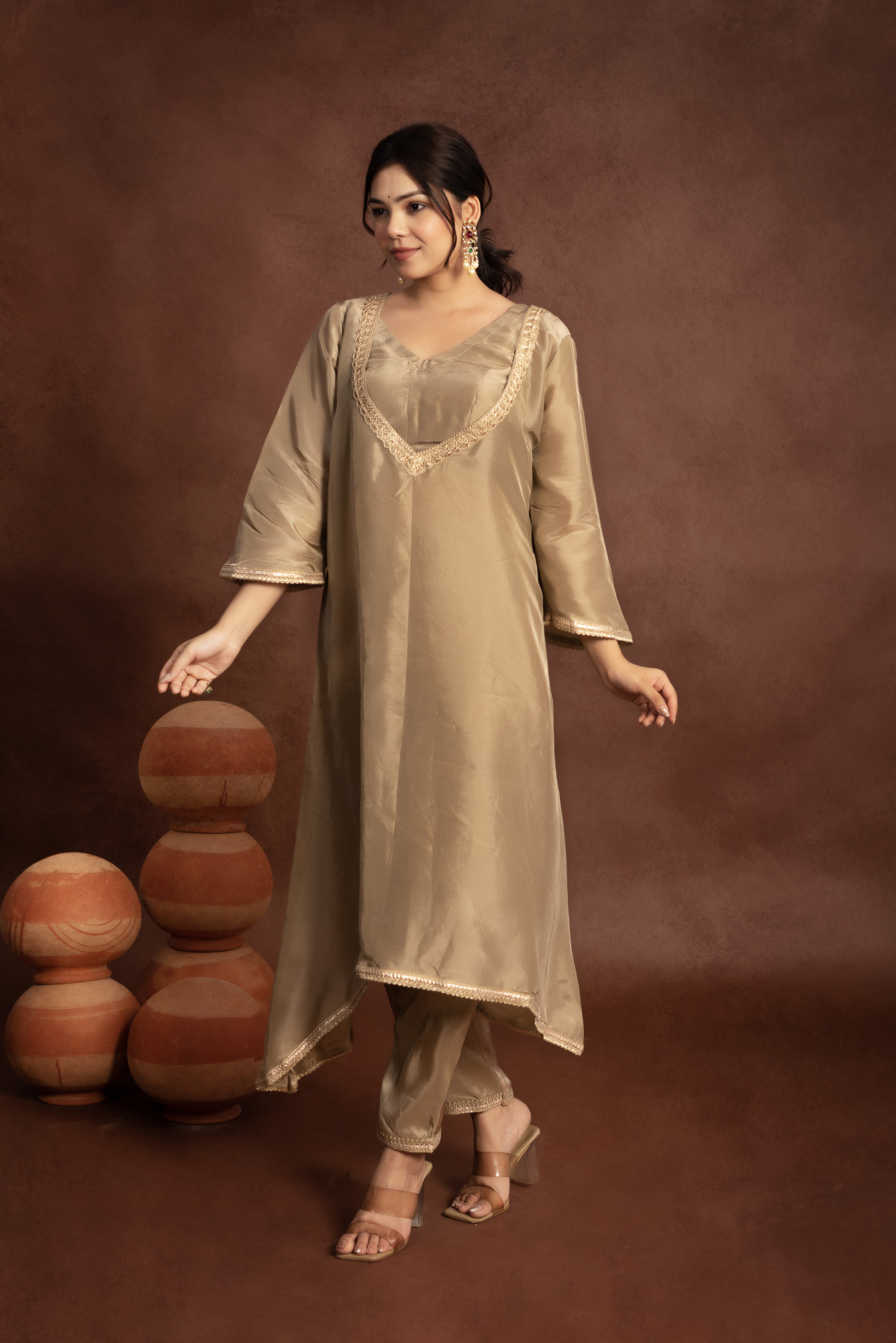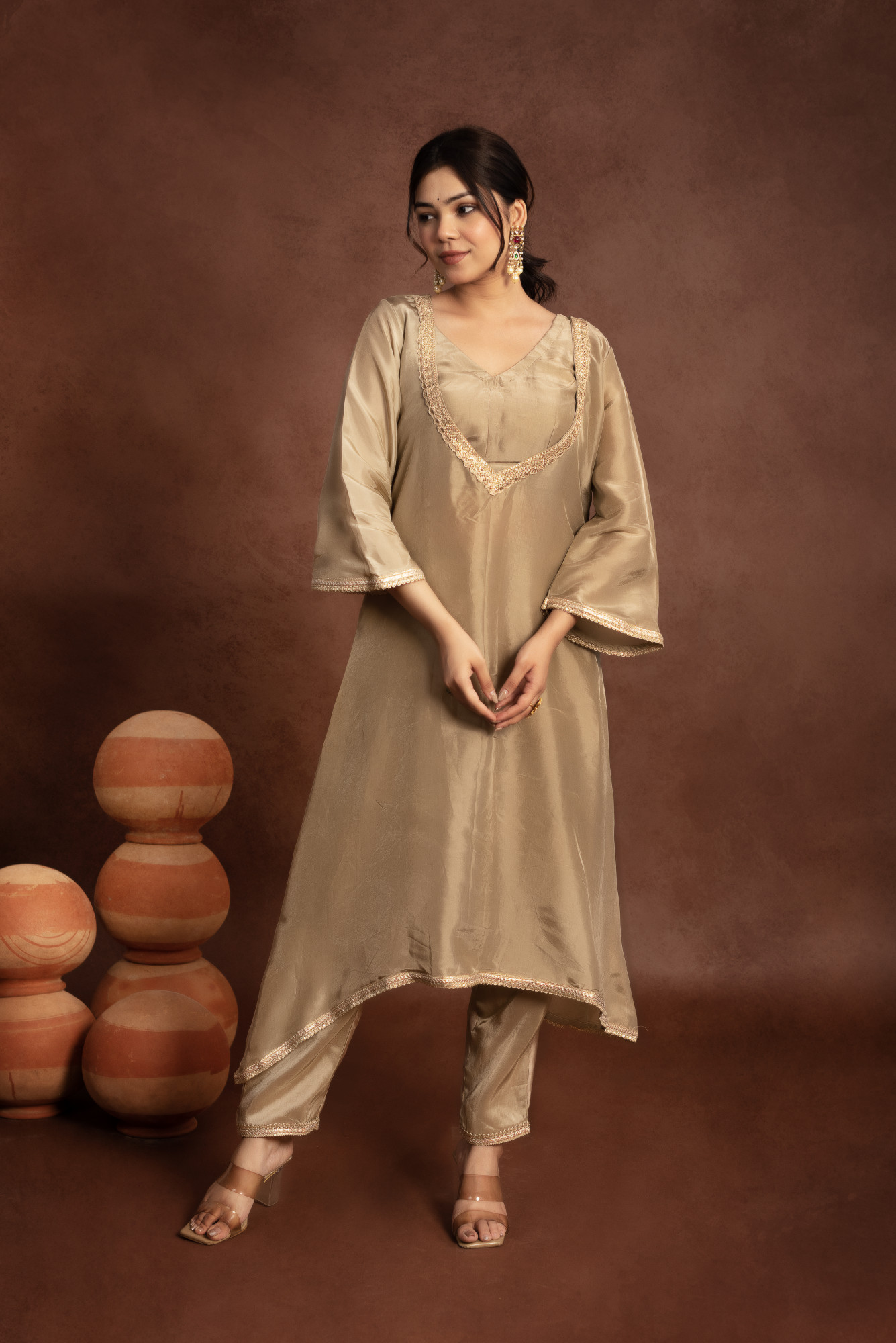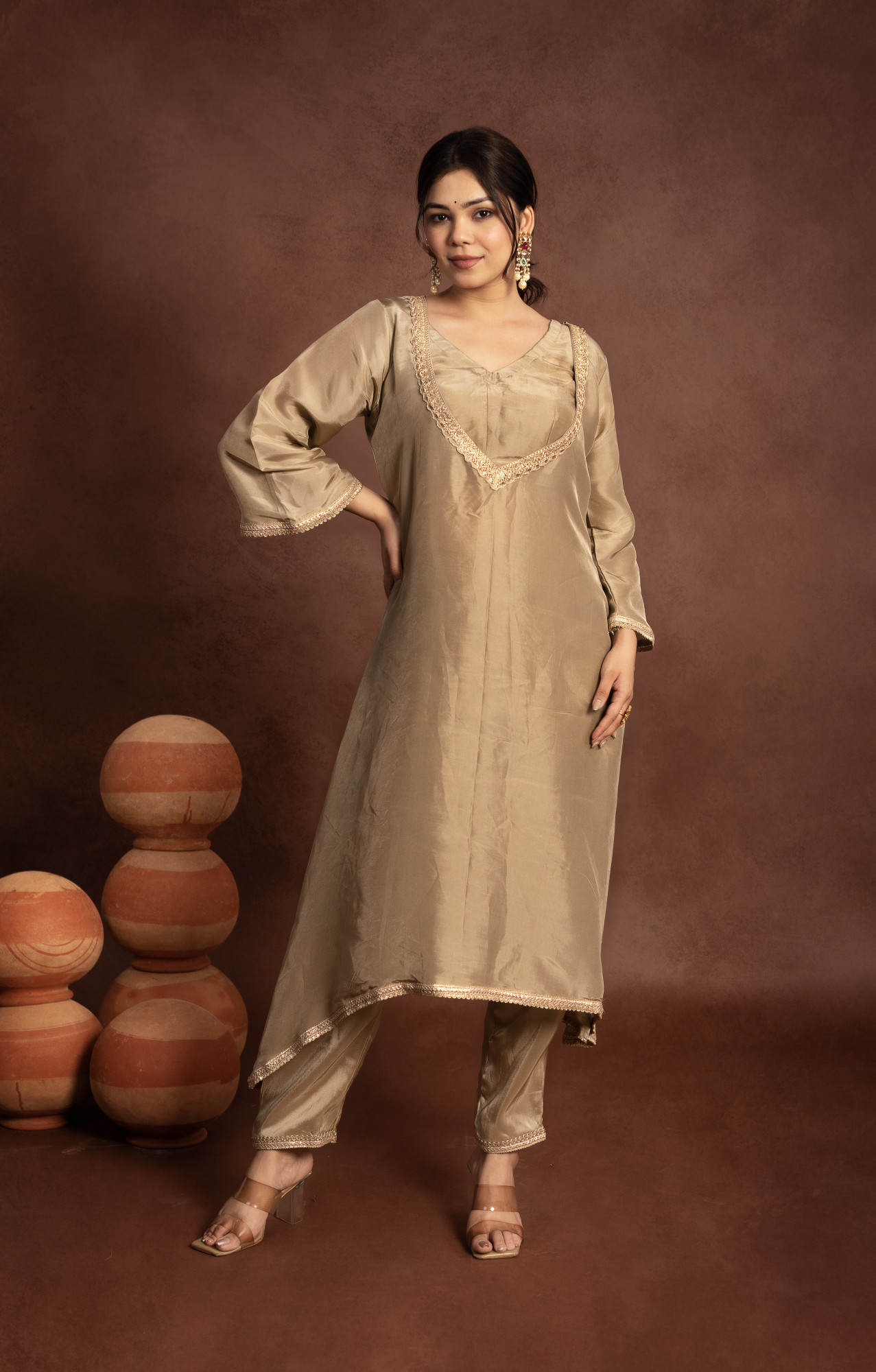 "Top – Pure Silk Bottom – Pure silk Blouse– Pure Silk Wash Care – Dry Clean Only Pattern – Solid with lace work Detailing Model – Model is wearing S size Model Height – 5*6 Disclaimer – Slight Colour Variation may occur due to different screen display resolution and lighting can also play some role ."