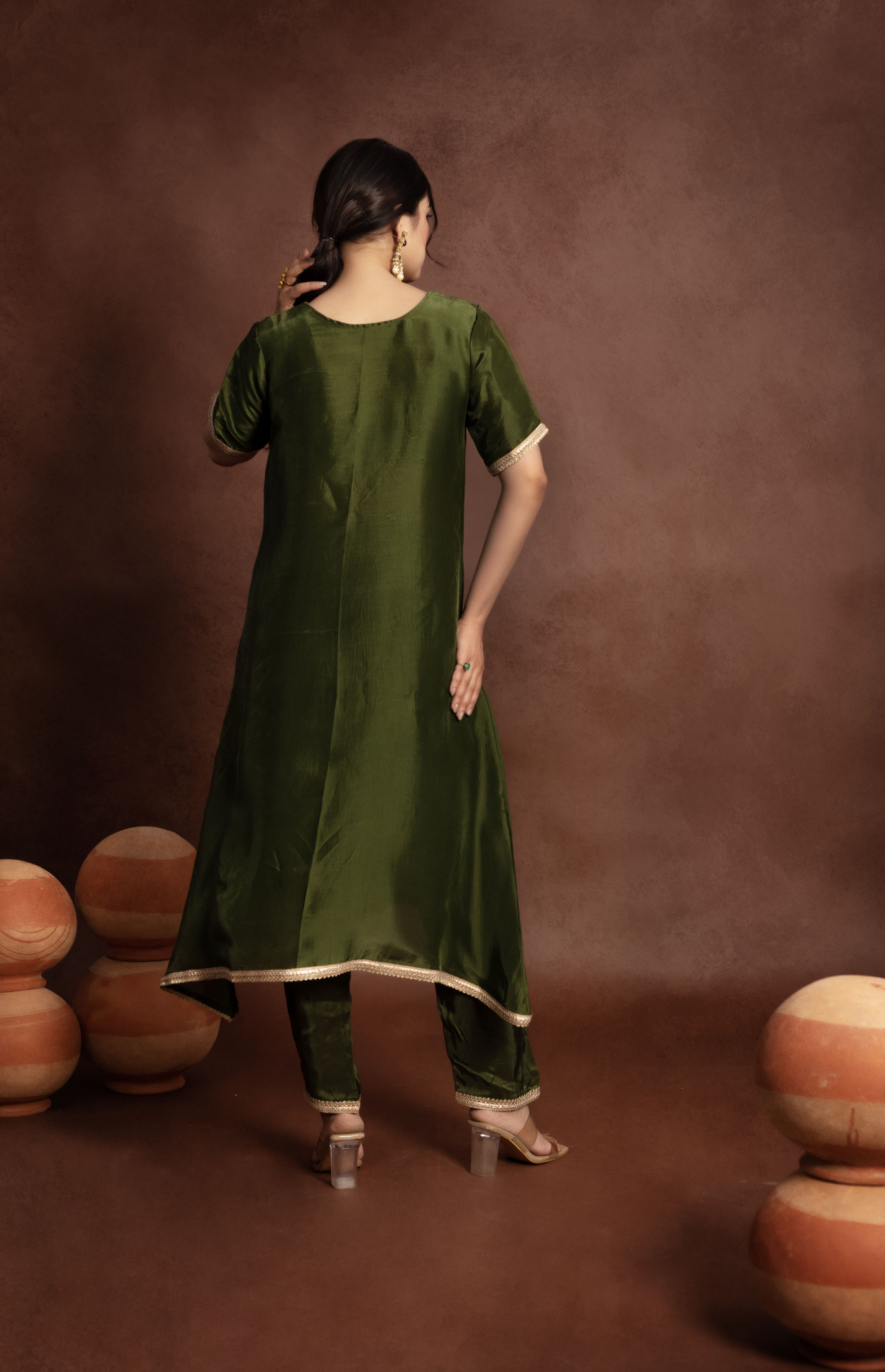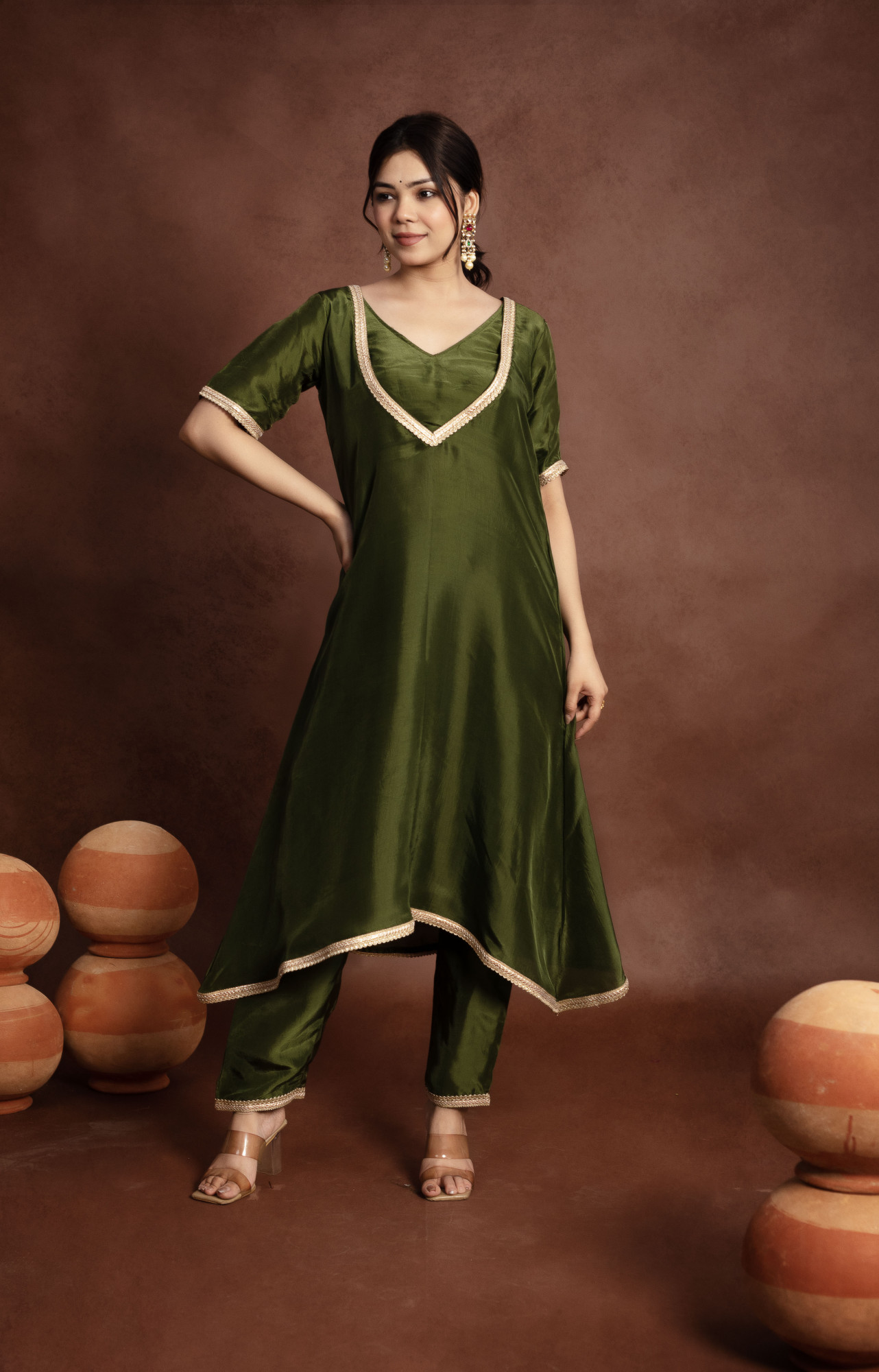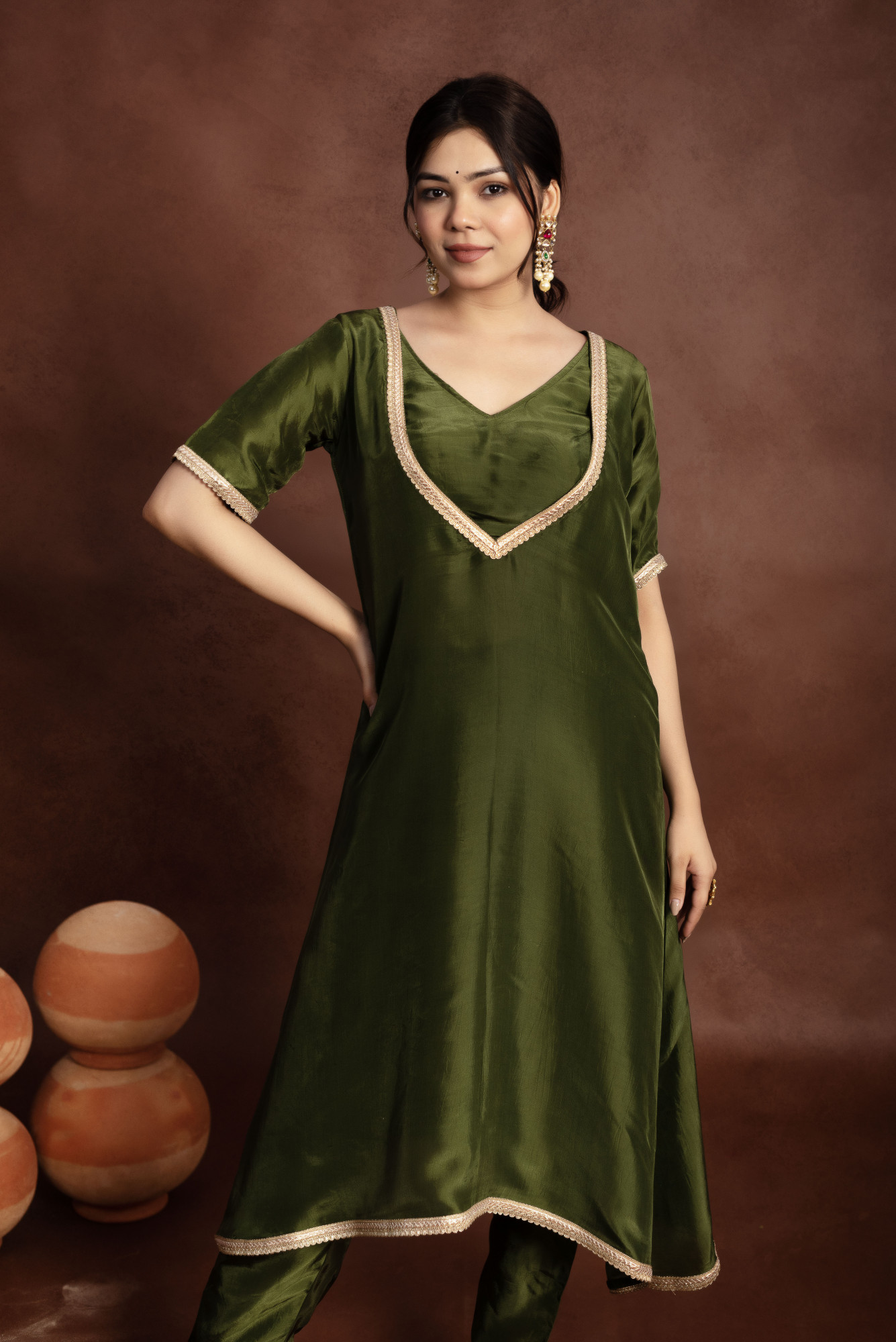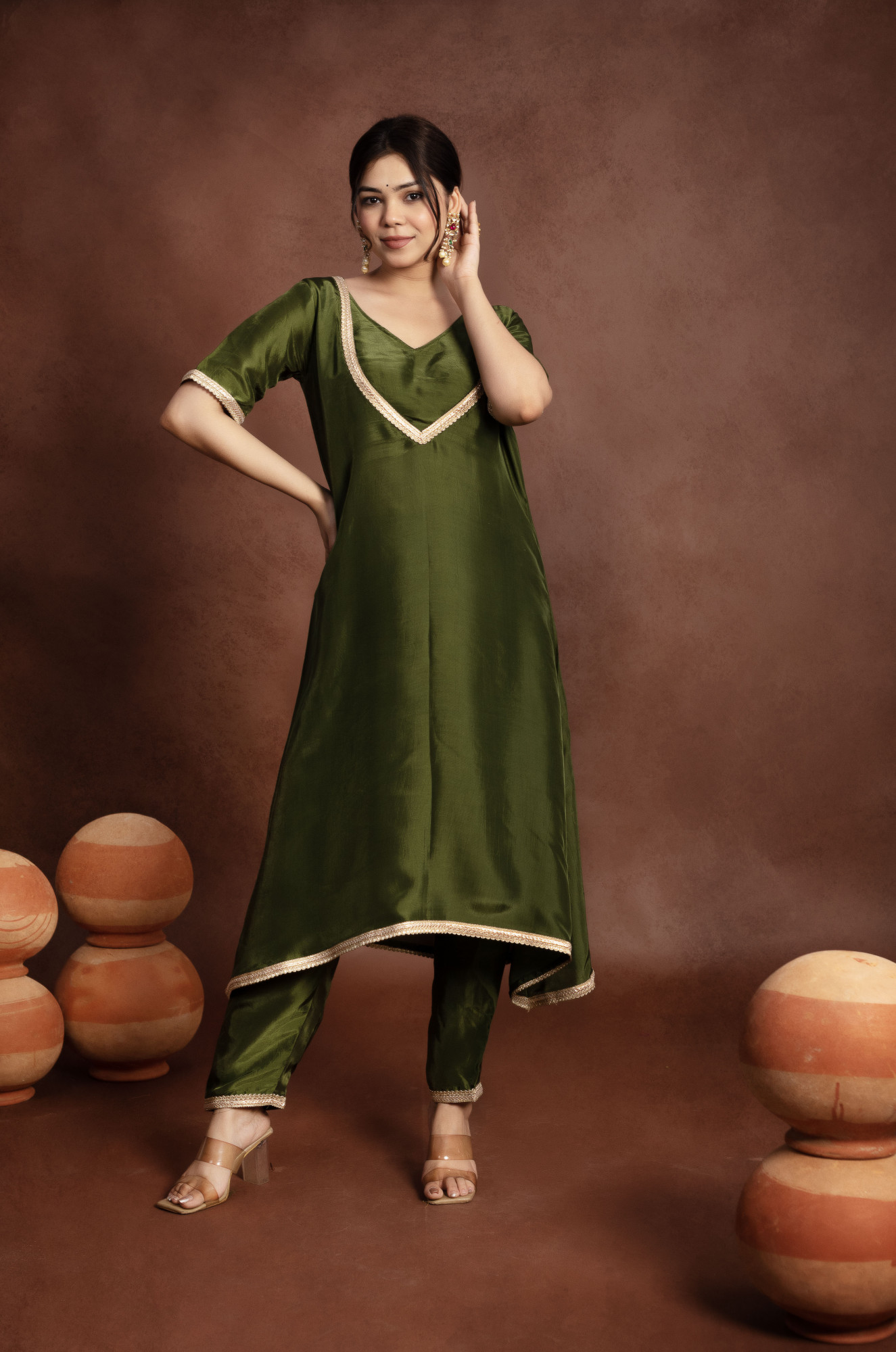 "Top – Pure Silk Bottom – Pure silk Blouse– Pure Silk Wash Care – Dry Clean Only Pattern – Solid with lace work Detailing Model – Model is wearing S size Model Height – 5*6 Disclaimer – Slight Colour Variation may occur due to different screen display resolution and lighting can also play some role ."