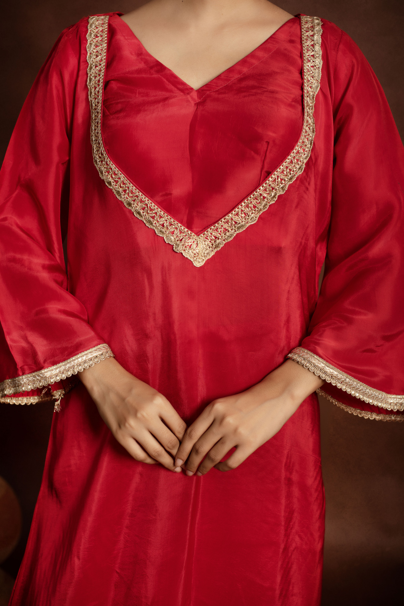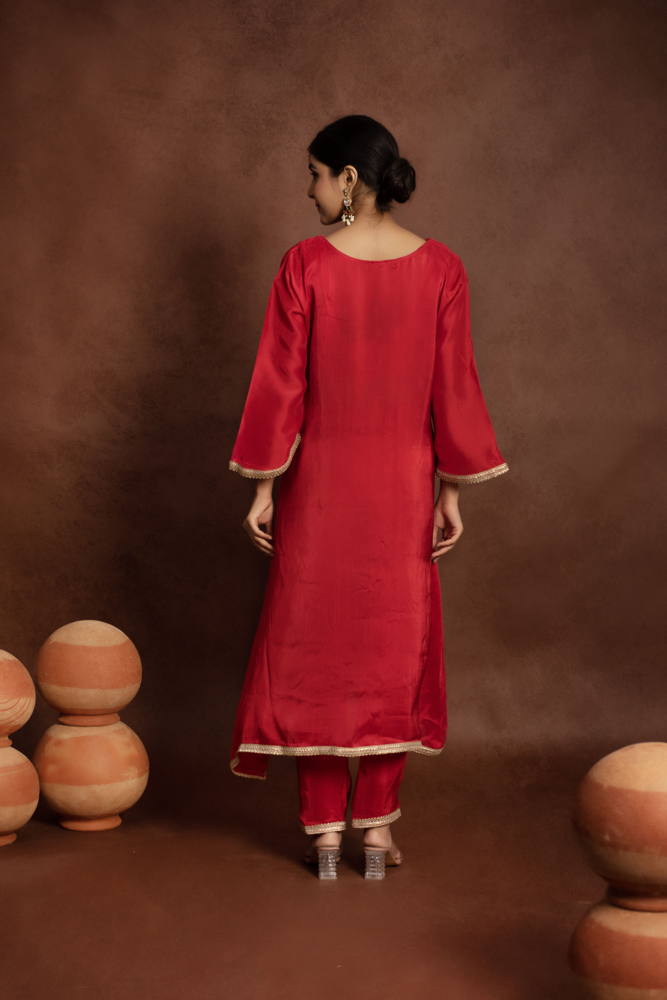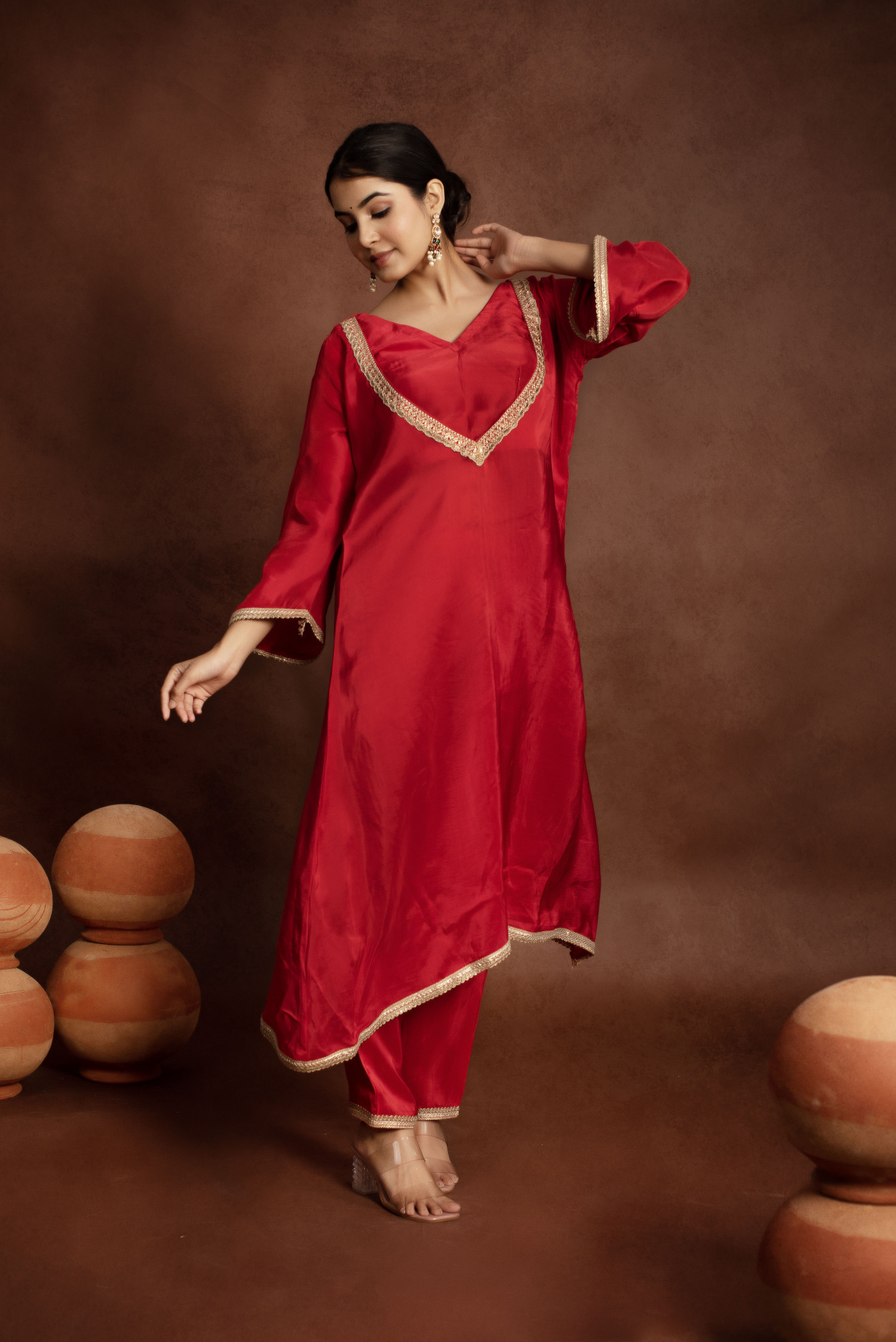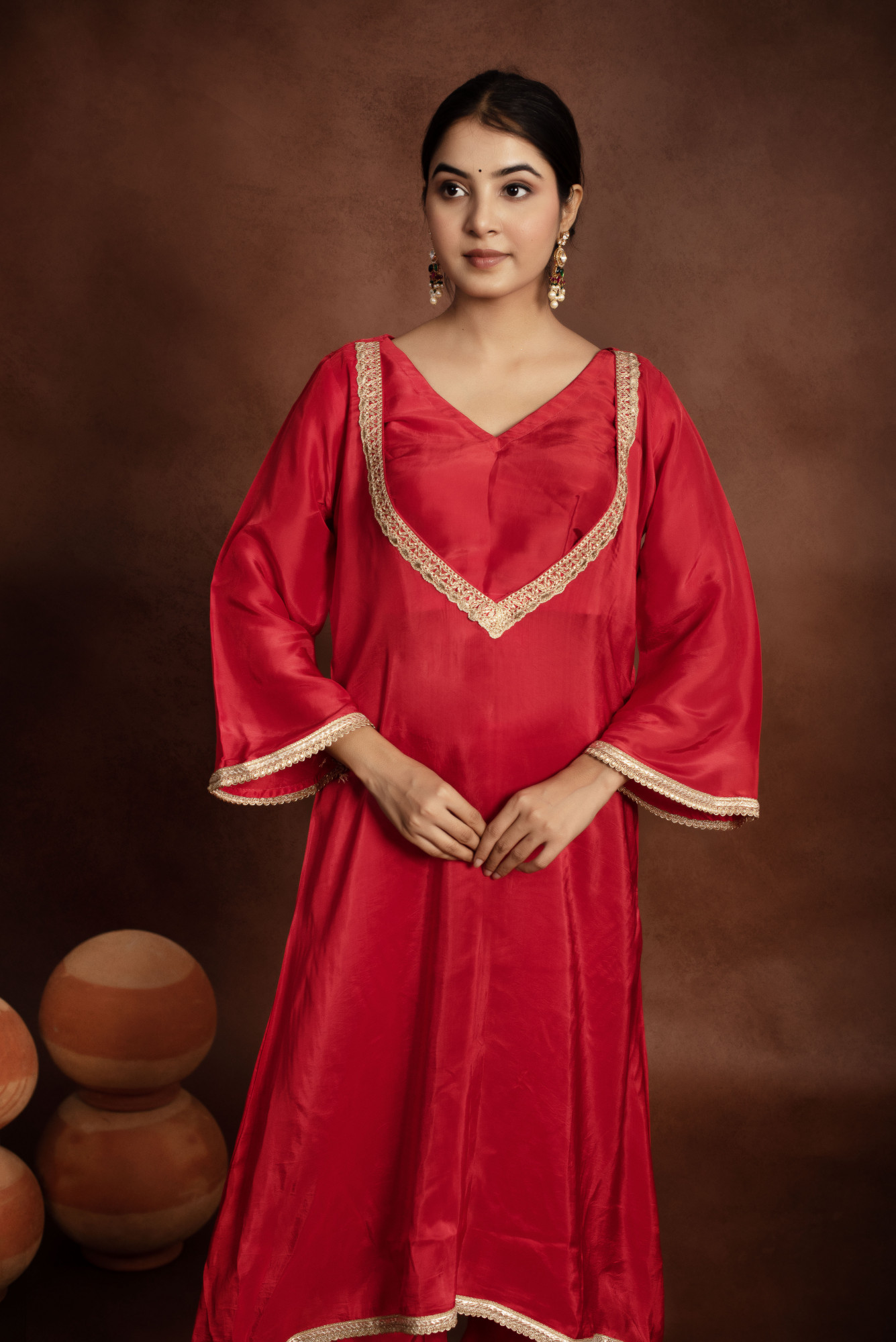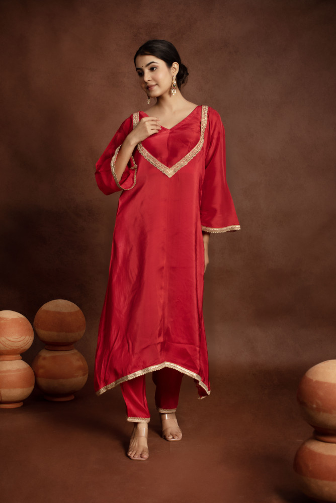 "Top – Pure Silk Bottom – Pure silk Blouse– Pure Silk Wash Care – Dry Clean Only Pattern – Solid with lace work Detailing Model – Model is wearing S size Model Height – 5*6 Disclaimer – Slight Colour Variation may occur due to different screen display resolution and lighting can also play some role ."
