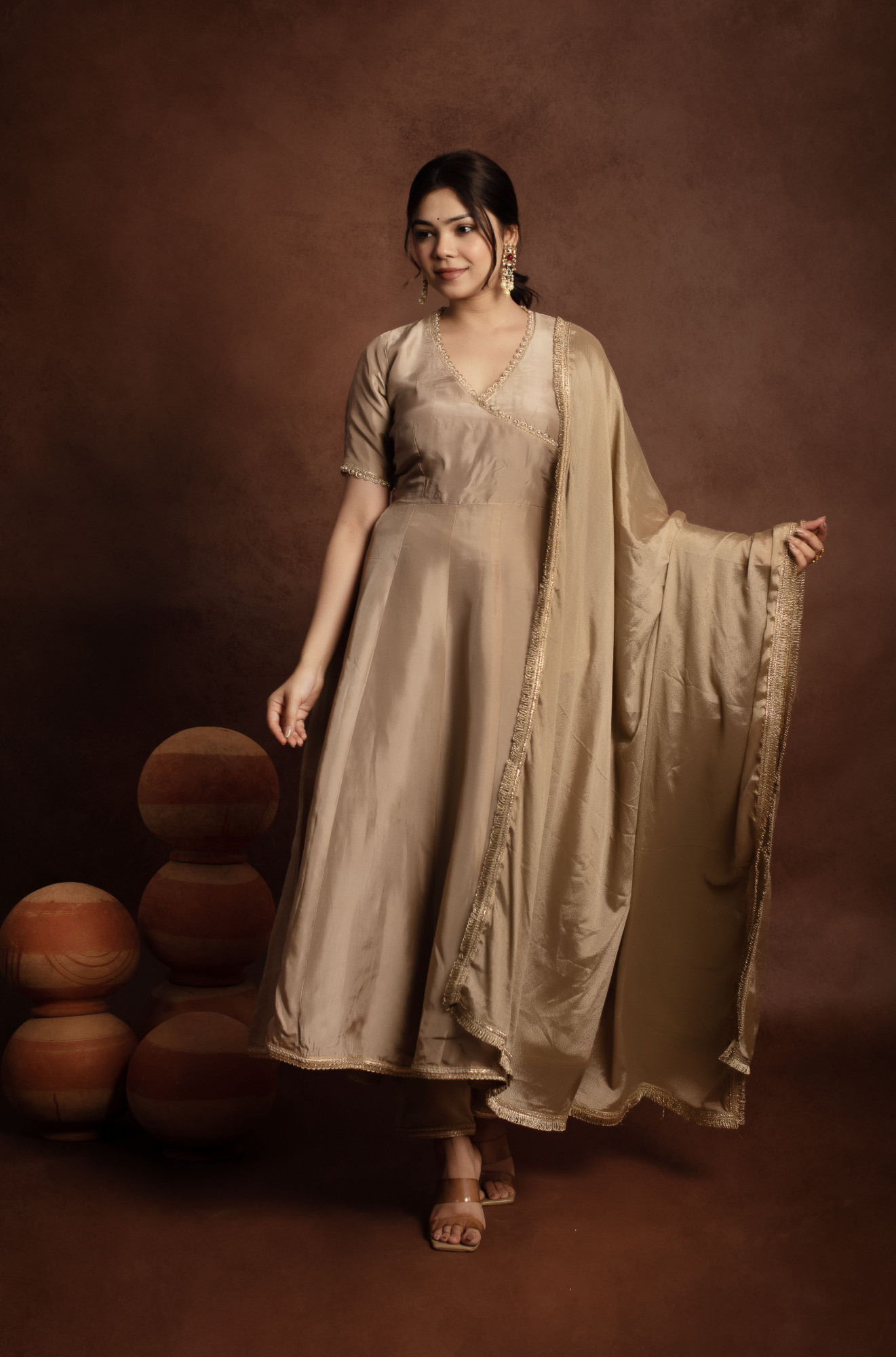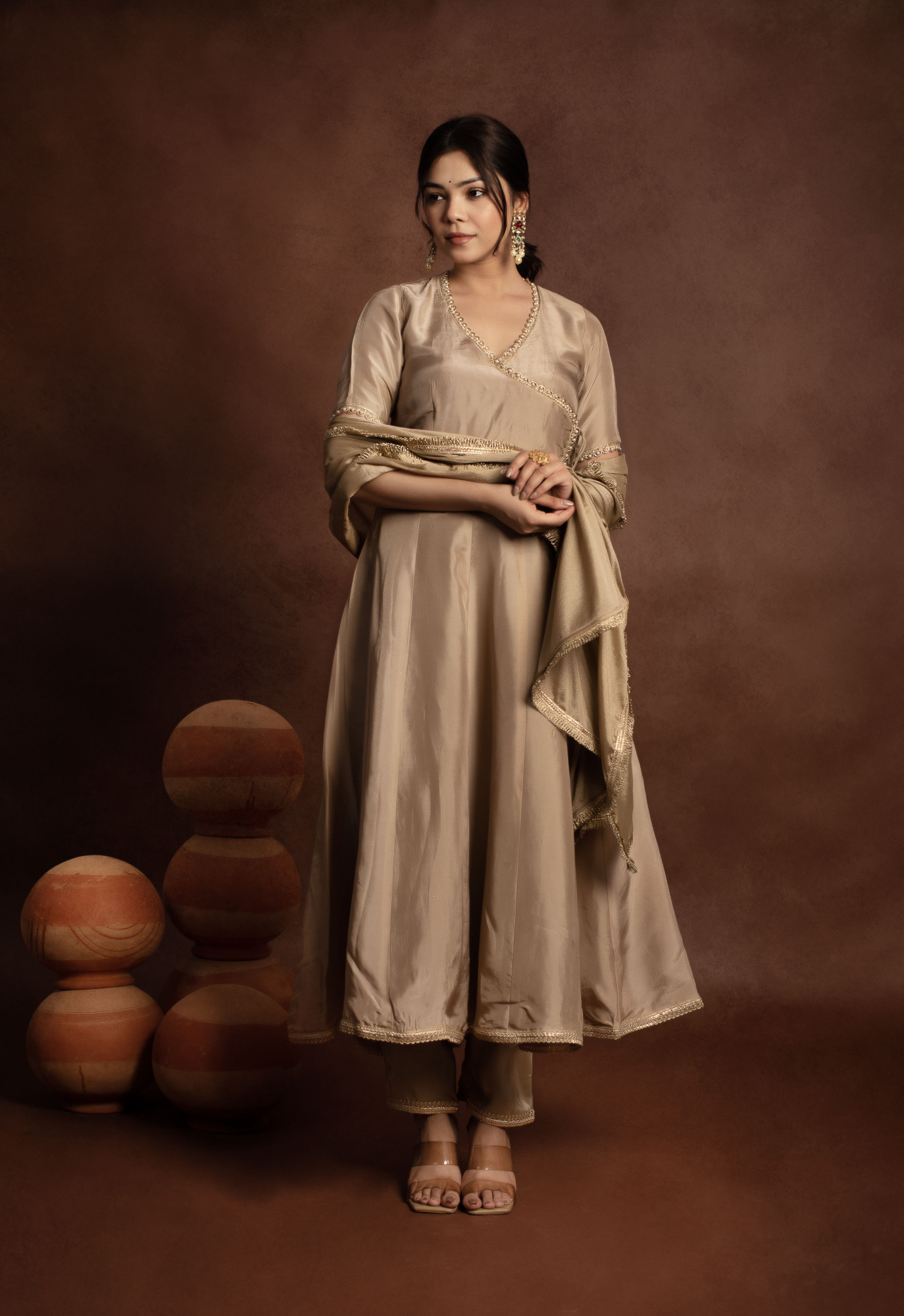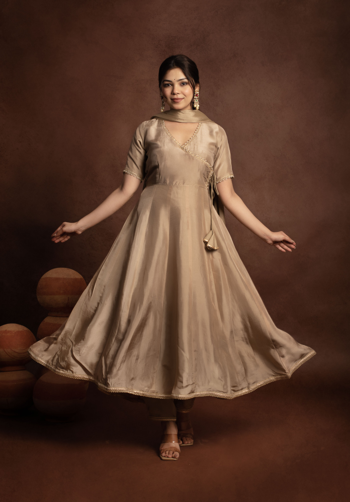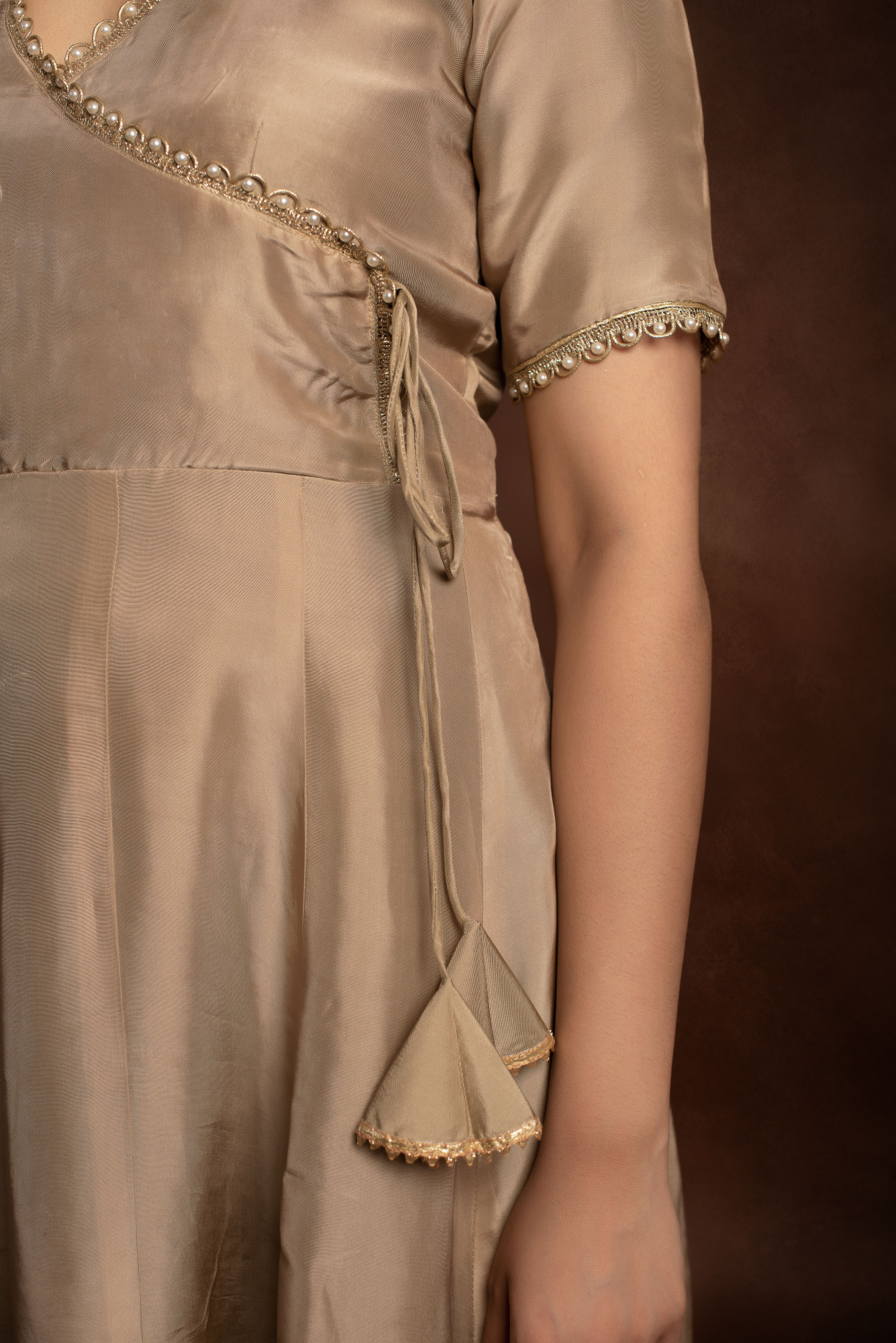 Tyohaar Beige Angrakha Pure Silk Anarkali set