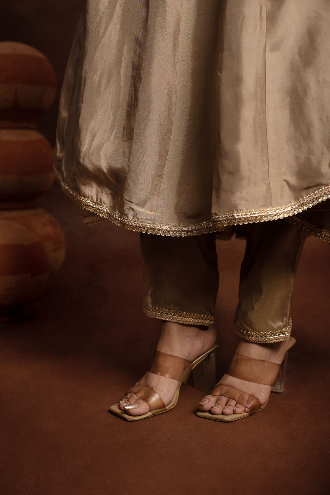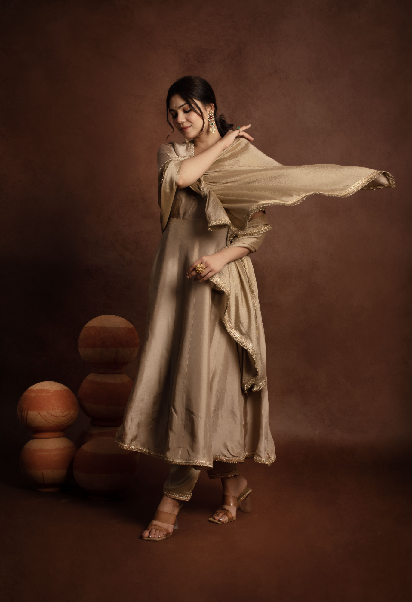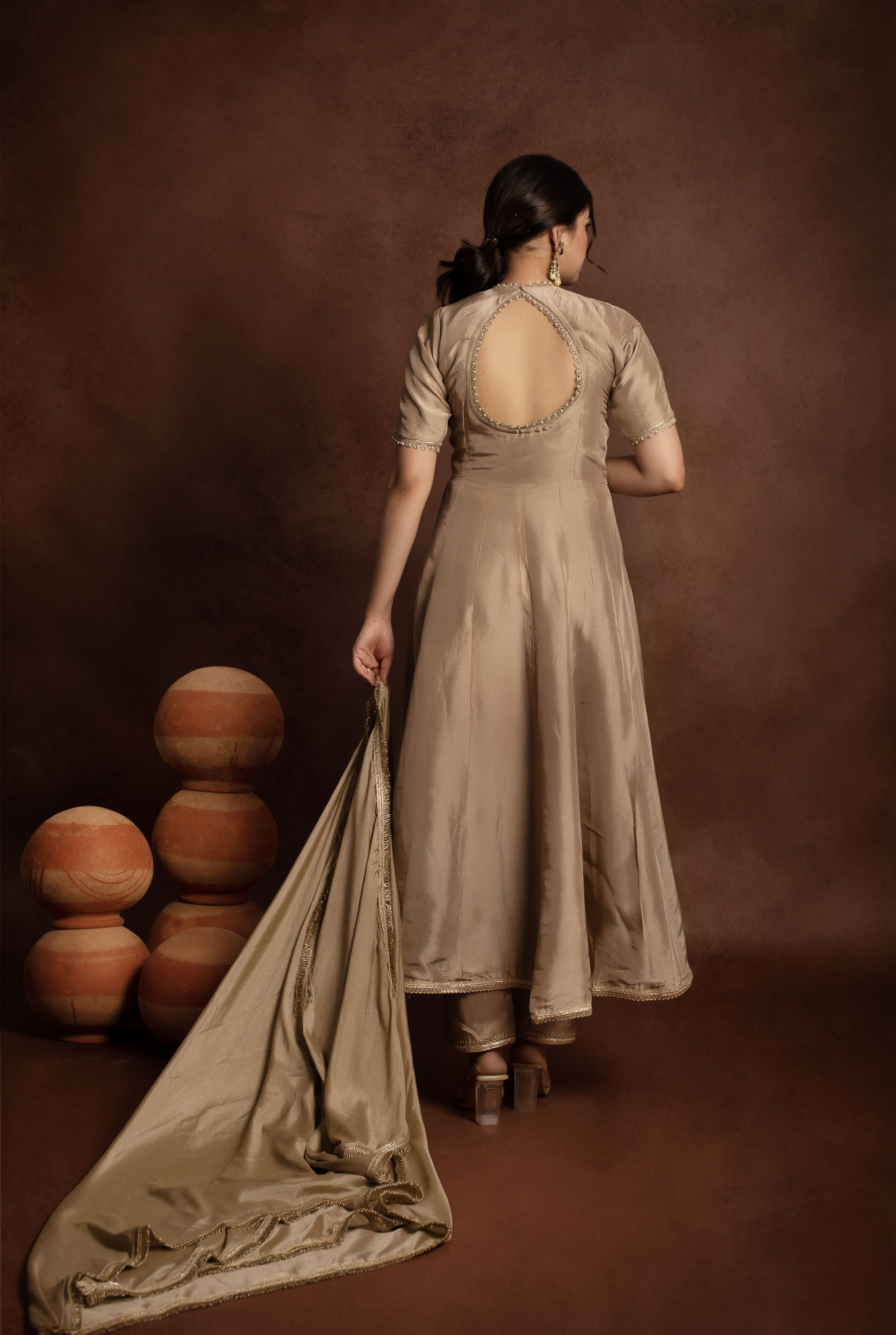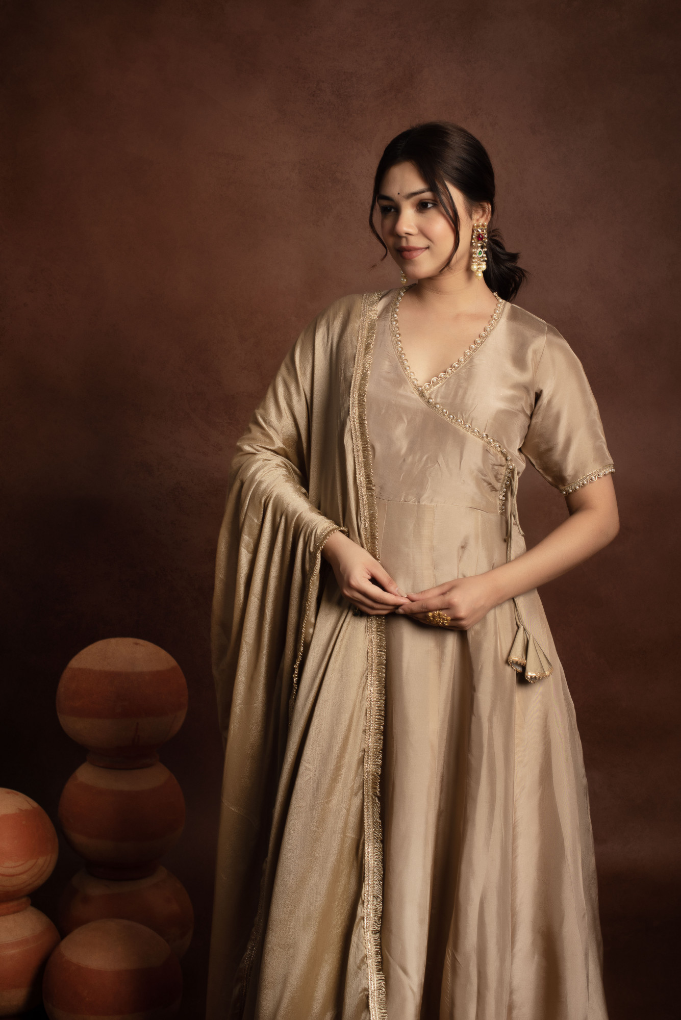 Tyohaar Beige Angrakha Pure Silk Anarkali set