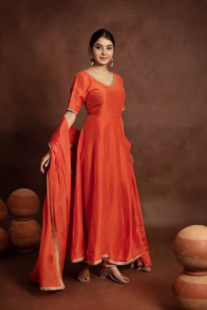 "Top – Pure Silk Bottom – Pure silk Dupatta – Pure chinnon dupatta with lace work on border( 2.25 – 2.5 meter) Wash Care – Dry Clean Only Pattern – Solid with lace work Detailing Model – Model is wearing S size Model Height – 5*6 Disclaimer – Slight Colour Variation may occur due to different screen display resolution and lighting can also play some role ."