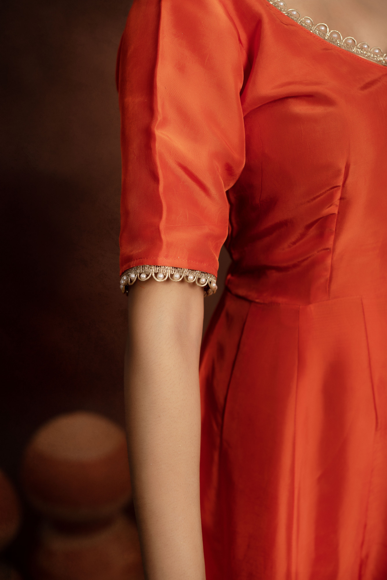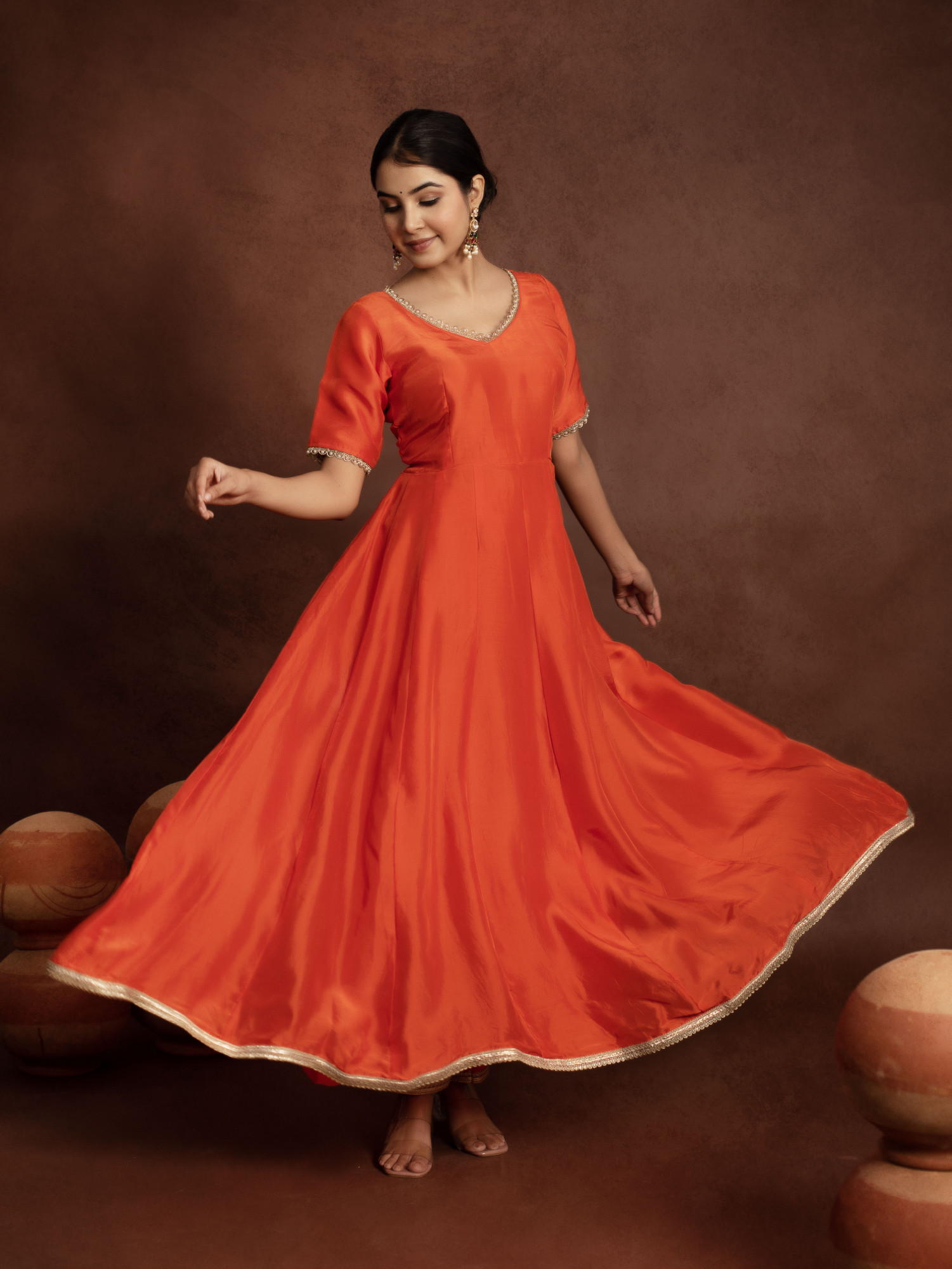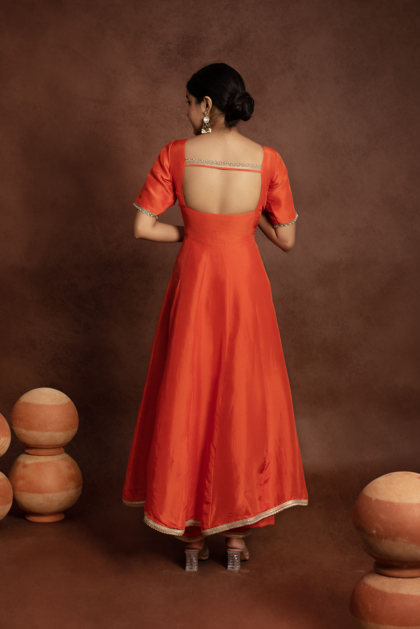Pure Silk Anarkali with straight pants and chinon dupatta with lace work